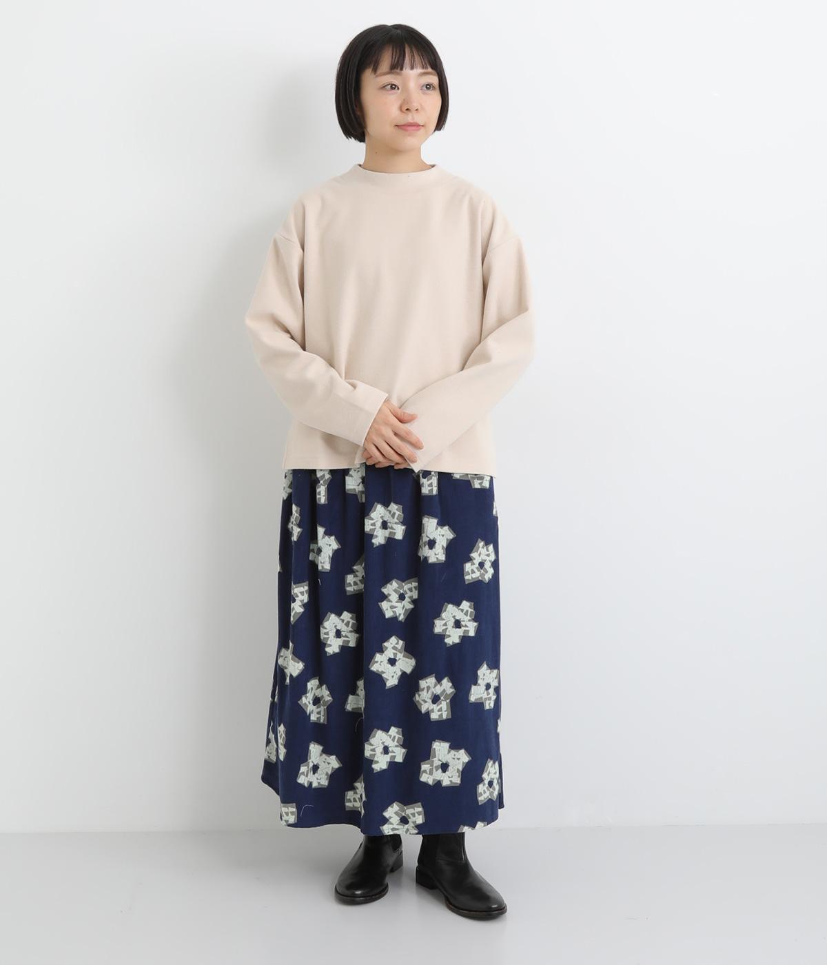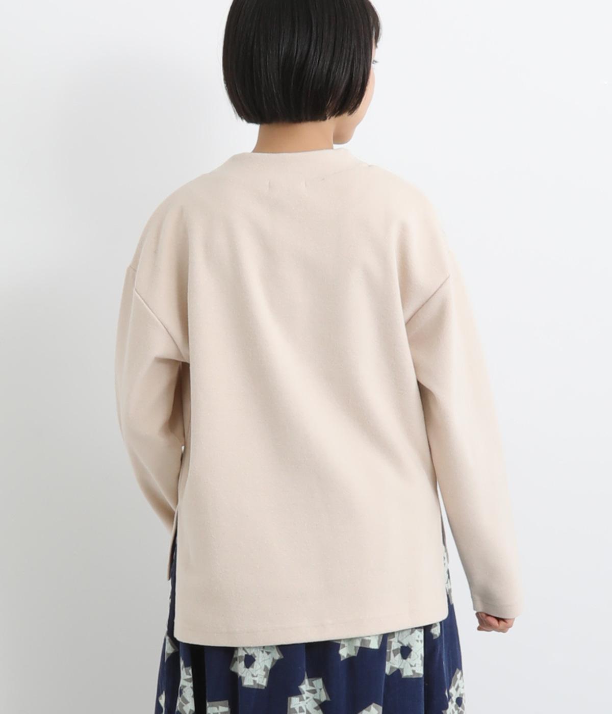 素材の持つあたたかみと表情を活かした、シンプルな長袖プルオーバーです。モックネックで防寒性と顔まわりのニュアンスを追加。裾は前後差をつけたスリット入りでボトム合わせしやすく、横姿もすっきりきれいに見えます。