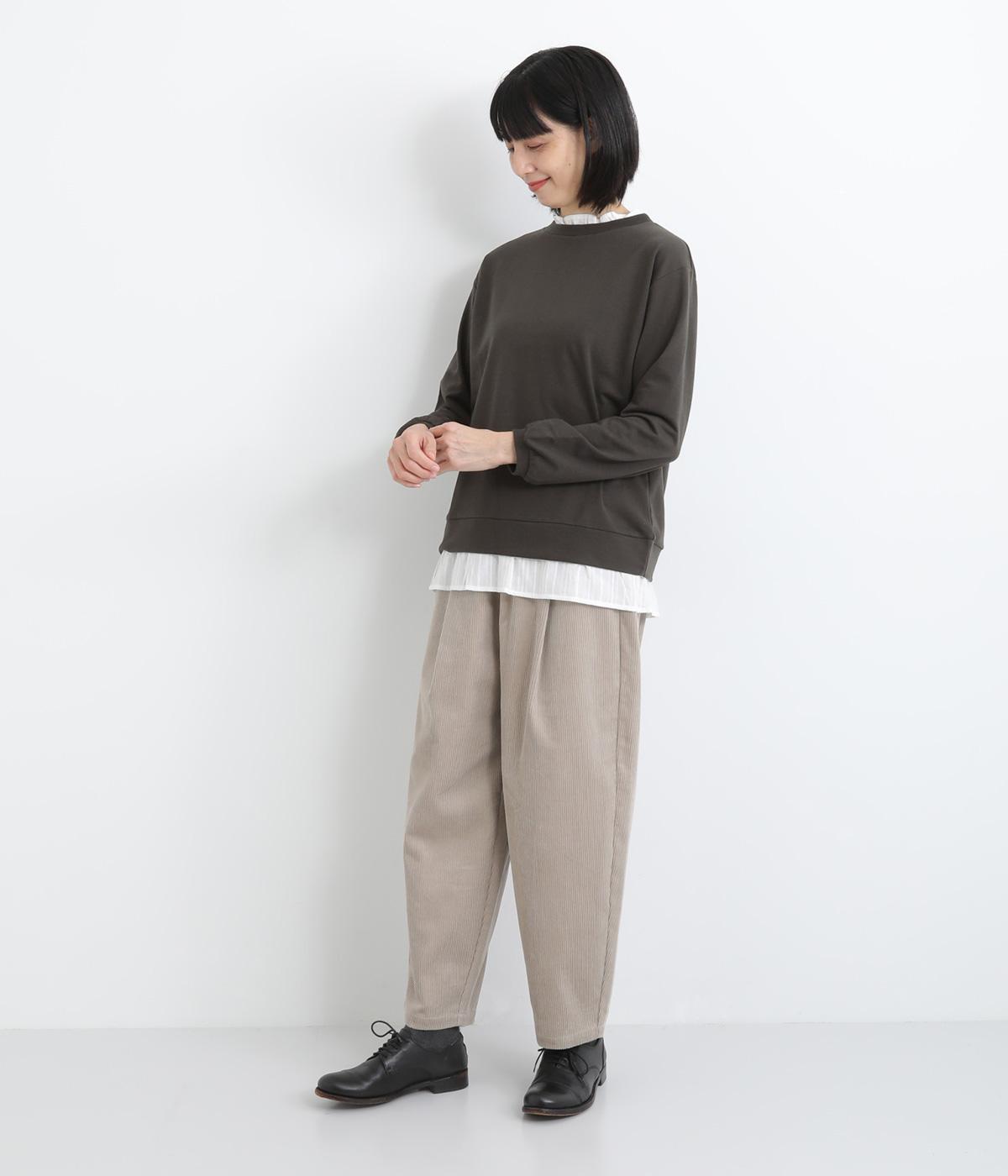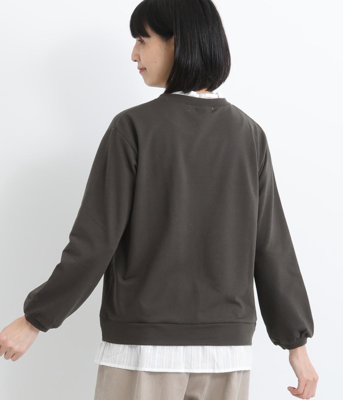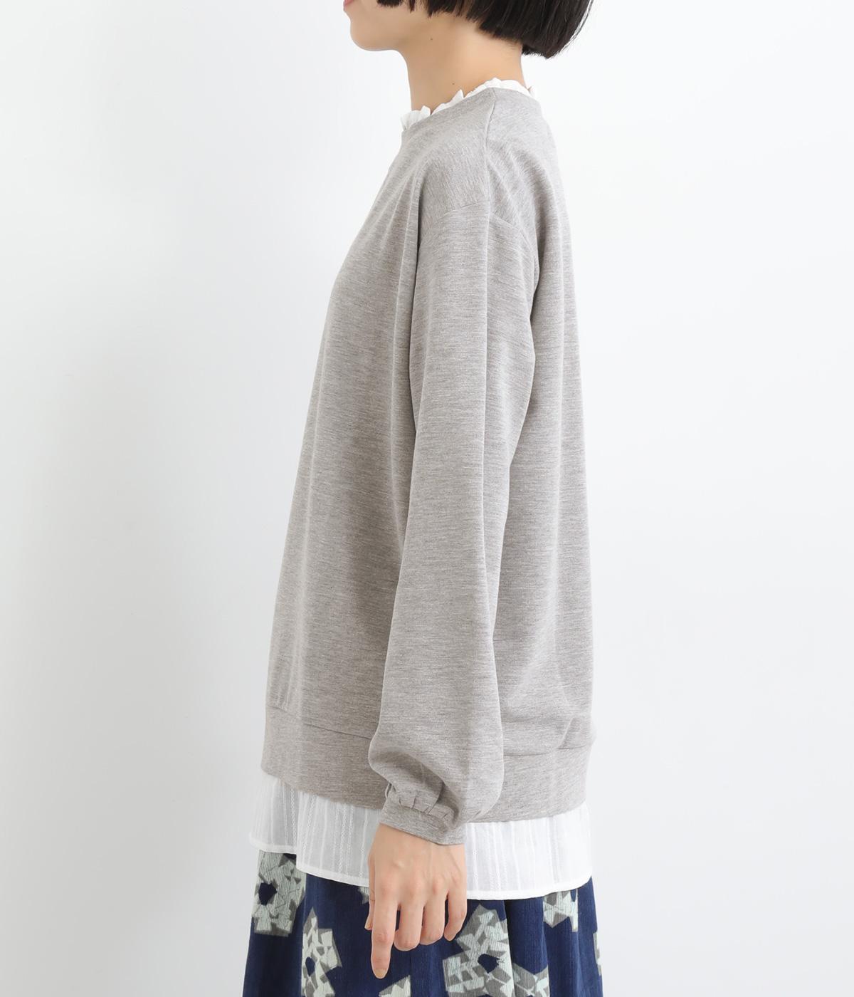 フリルシャツをレイヤードしているようなフェイクデザインのプルオーバー。カジュアルさとフェミニンなディテールのバランスが絶妙で、さっと被るだけでお洒落スタイルが叶います。適度にゆとりのあるシルエットも◎。