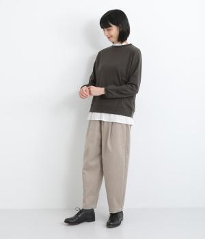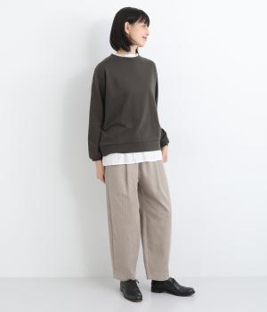ミニ裏毛で軽く仕上げた混紡生地と、さらりとした綿生地を組み合わせました。薄めの中厚手生地で着こなしやすく、ロングシーズン着まわせます。