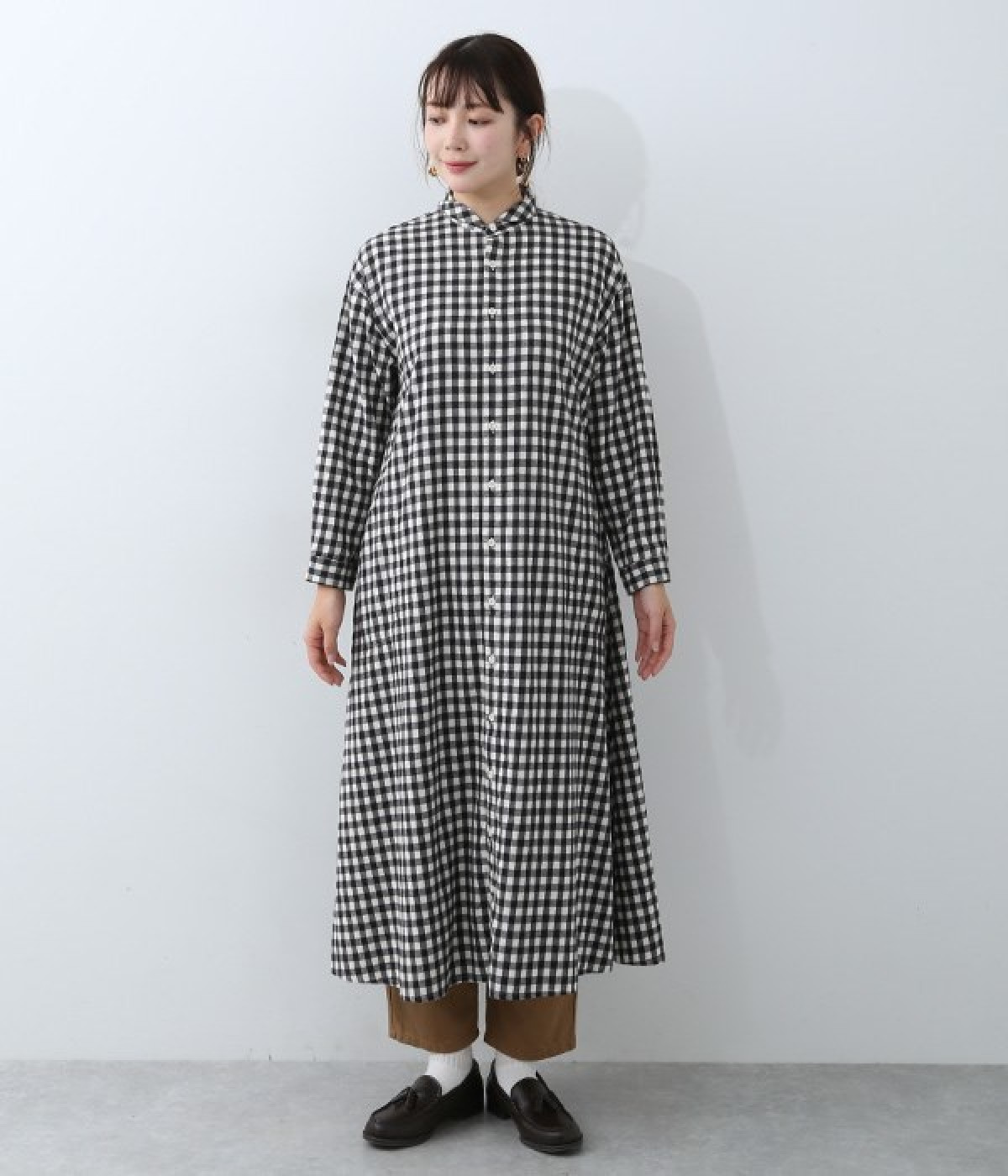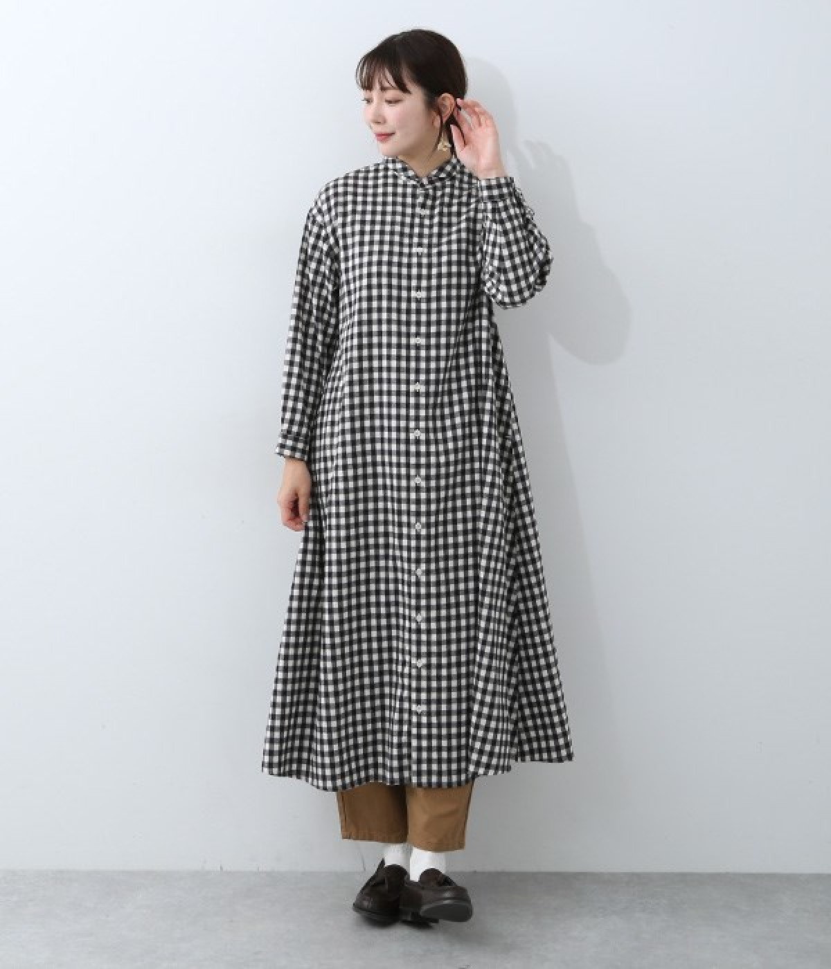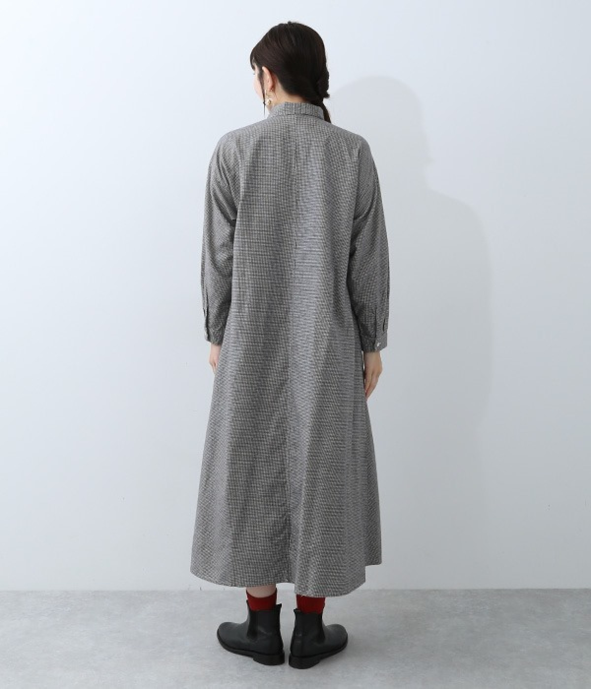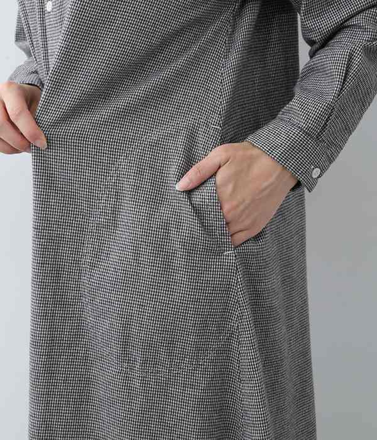 コットン起毛生地を使用した、柔らかく肌触りが良いシャツワンピースです。切り替えによってフレアに広がる、ほどよいボリューム感の美しいシルエットを表現。一枚でもしっかりとコーディネートが決まり、パンツやスカートとのレイヤードスタイルも相性抜群です。前を開けてロング丈の羽織りとして、季節の変わり目のスタイリングに取り入れるのもおすすめ。