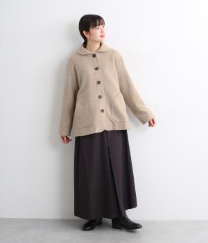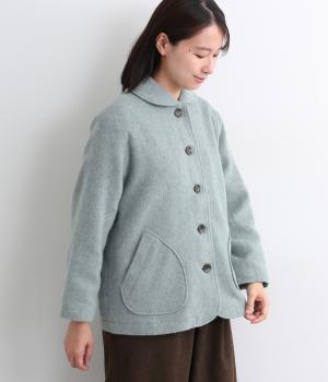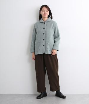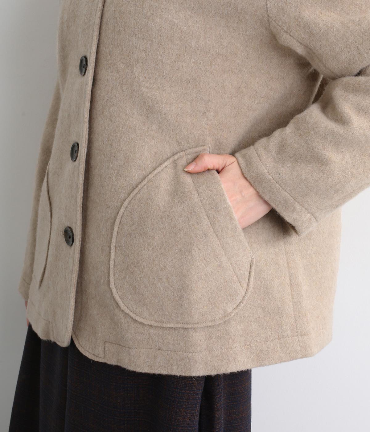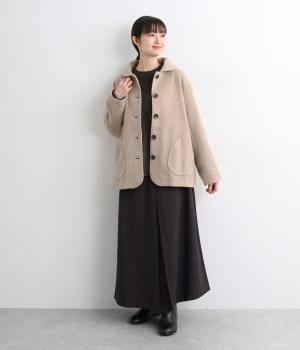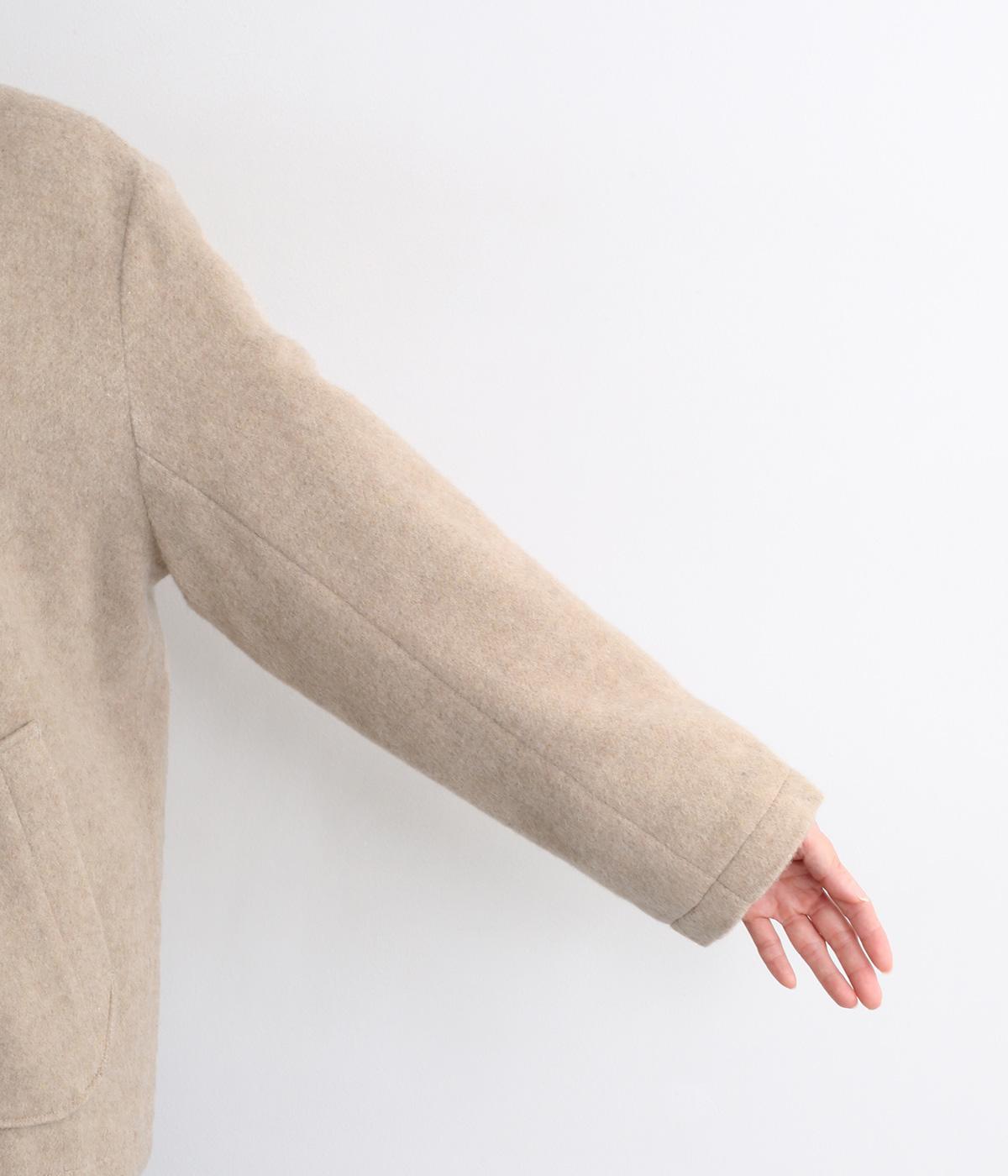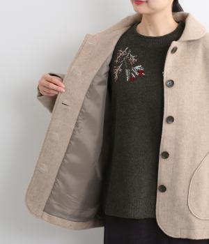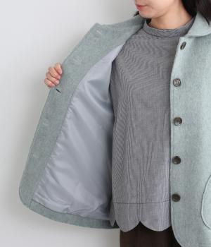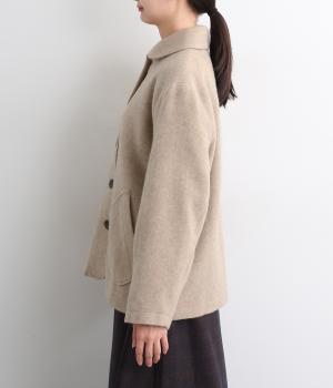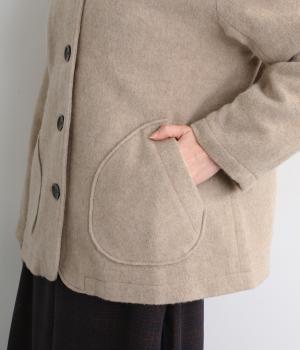 リサイクルウールを用いたビーバー素材を使用。ふんわりなめらかな肌ざわりで、起毛感と光沢感を備えたあたたかい生地です。すべりの良い裏地つきで袖通りも快適。