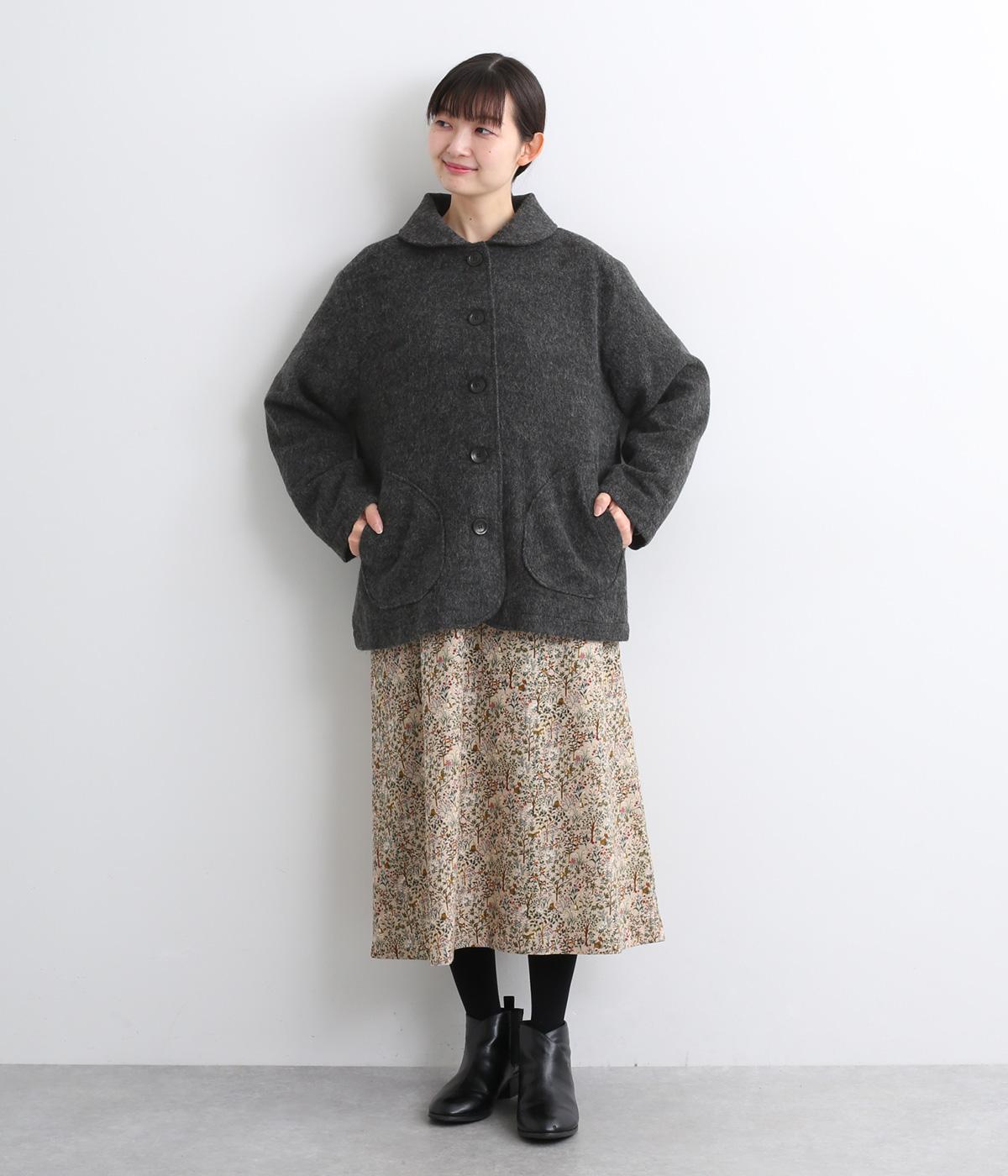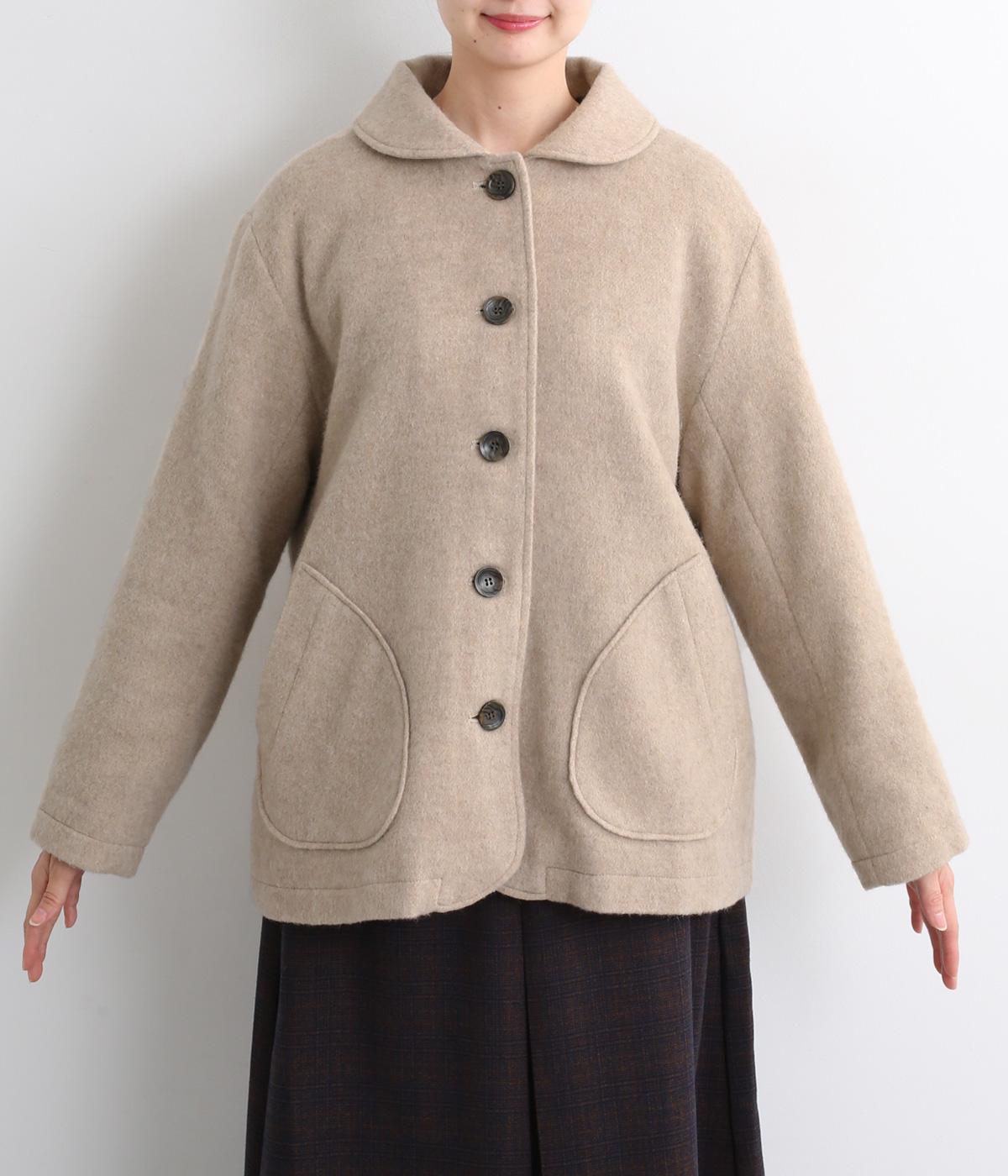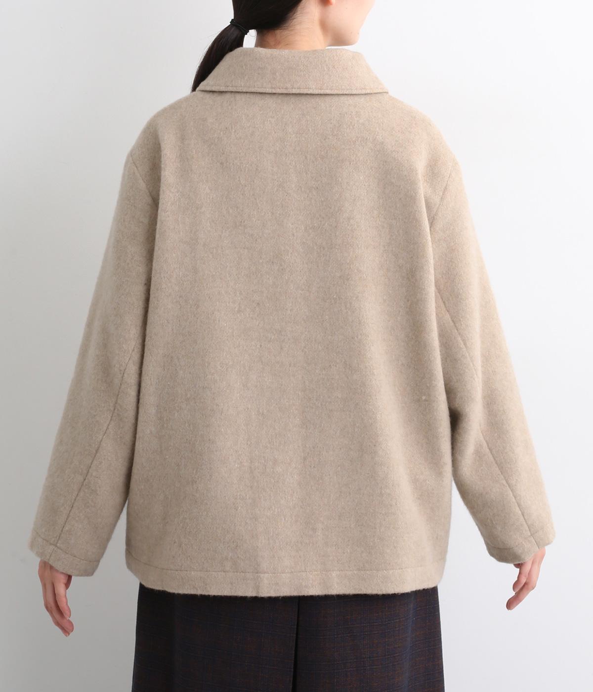 リサイクルウールを用いたビーバー素材を使用。ふんわりなめらかな肌ざわりで、起毛感と光沢感を備えたあたたかい生地です。すべりの良い裏地つきで袖通りも快適。