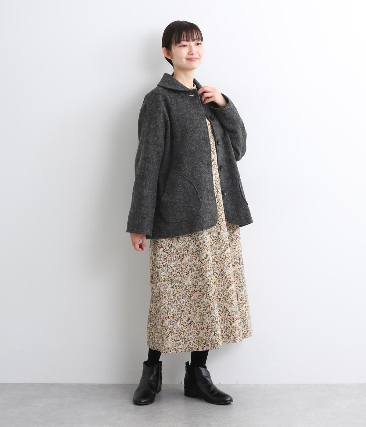 丸みのあるショールカラーと前ボタンがクラシカルなジャケット。身頃とアームホールにゆとりを持たせ、中に着込んでも動きやすく仕上げました。パンツでもスカートでも合わせやすい丈感で、デイリーに使えます。