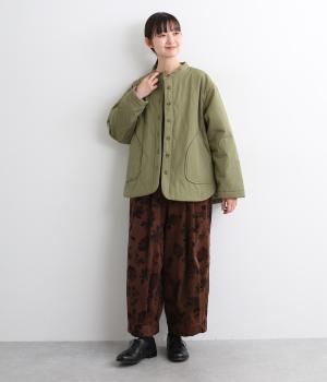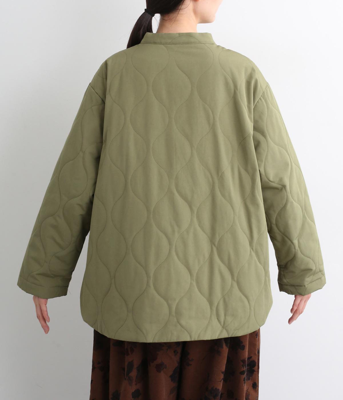 ほどよくしなやかで、しっとりとした質感のピーチ素材を使用。軽量で羽織りやすく、中綿入りなので保温性に優れています。