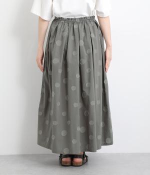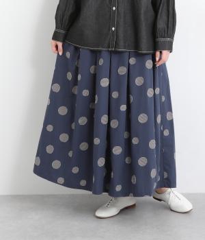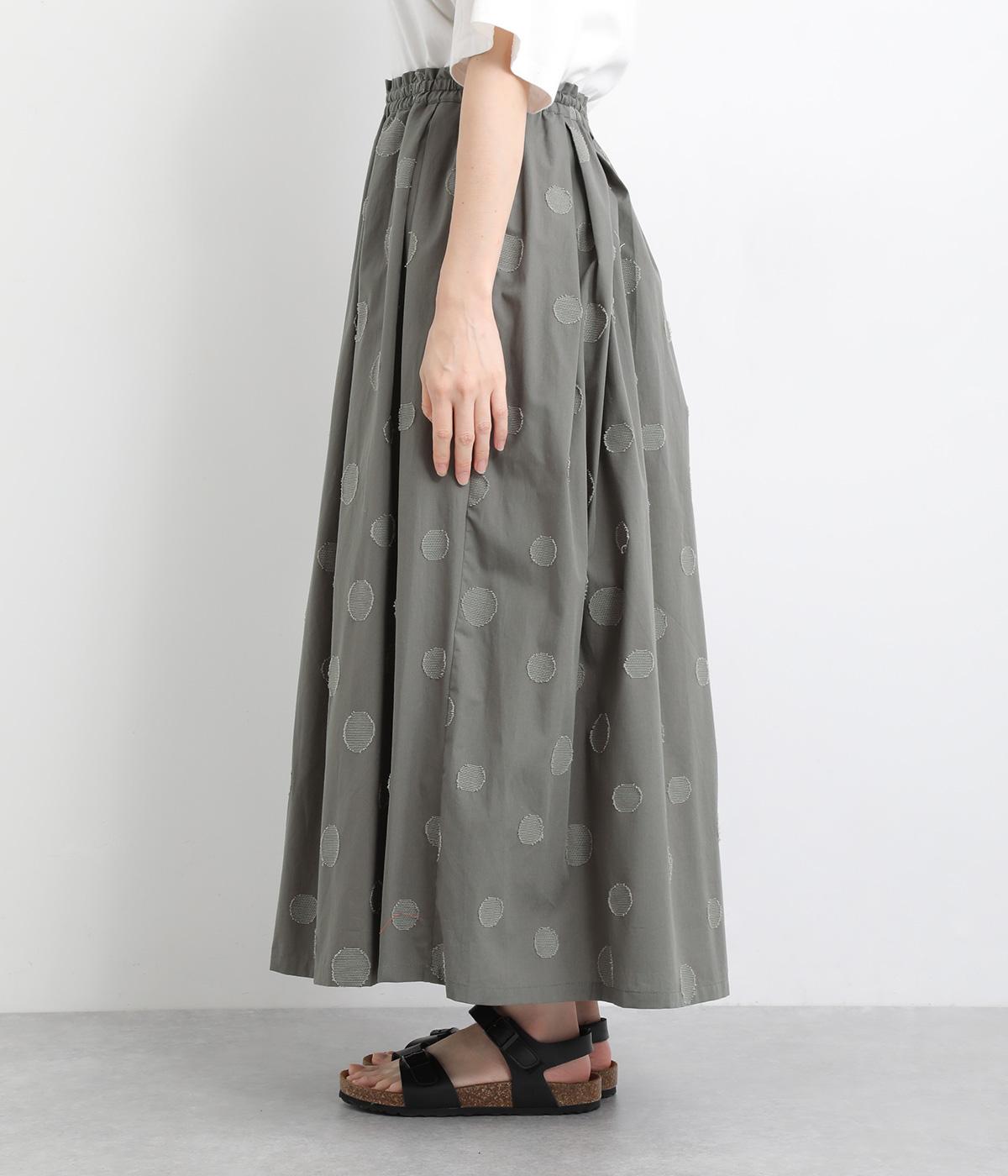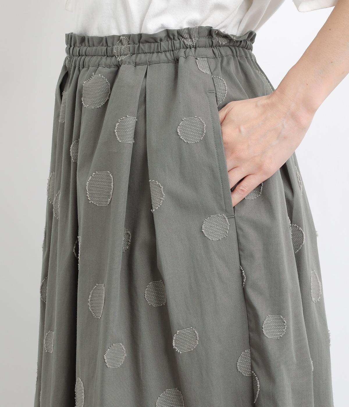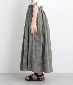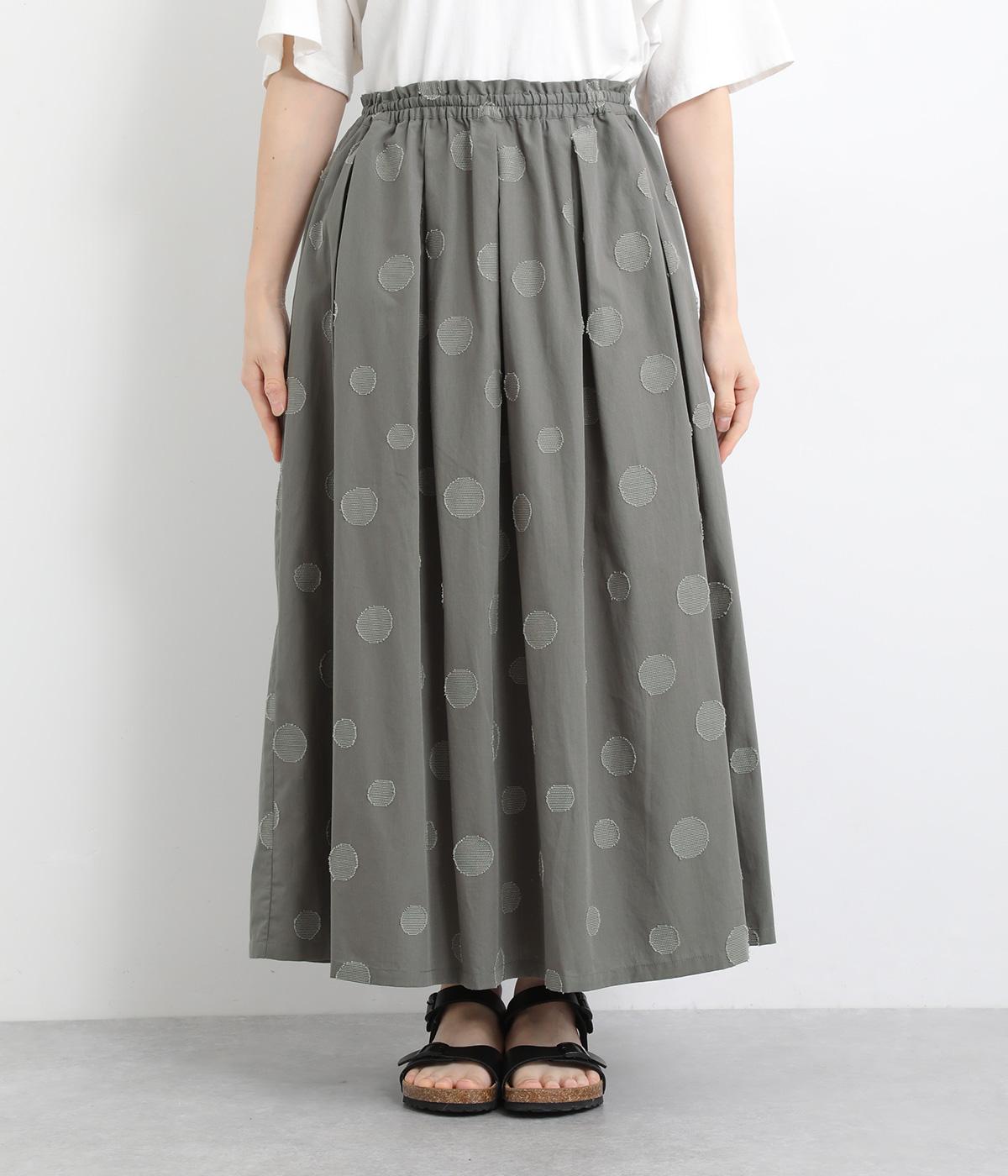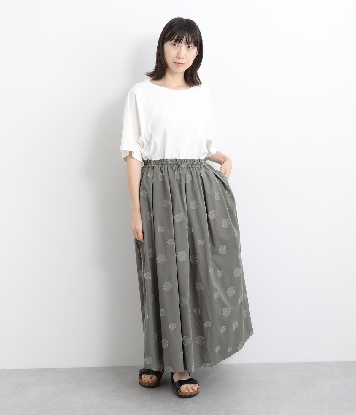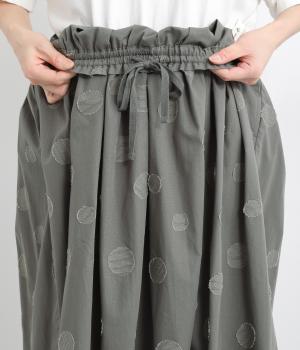 凹凸のあるドットは、シンプルなアイテムに合わせるだけでナチュラルな装いをつくります。ワンピースとコーディネートして、ペチスカートのように合わせるスタイルも◎。ウエストは総ゴムと、ウエスト紐なのでストレスフリーで着用できます。