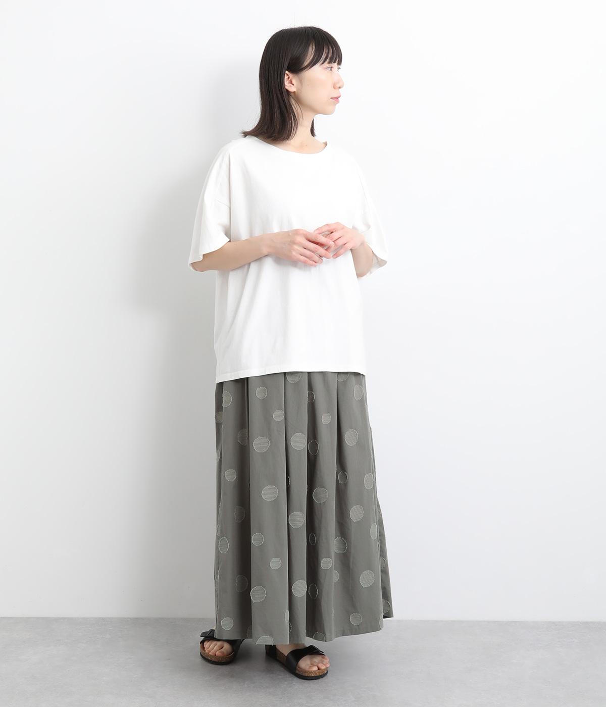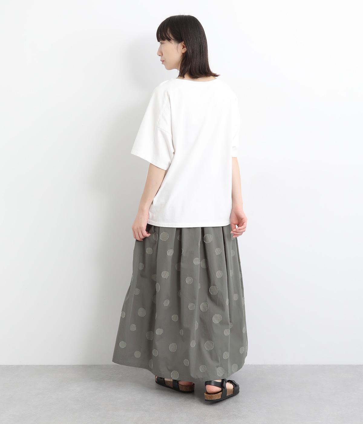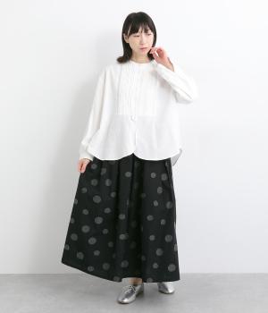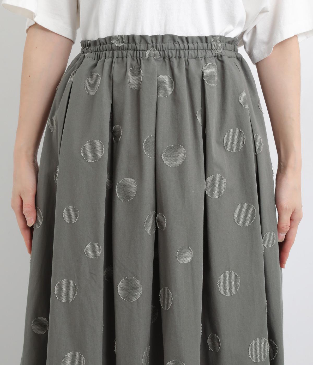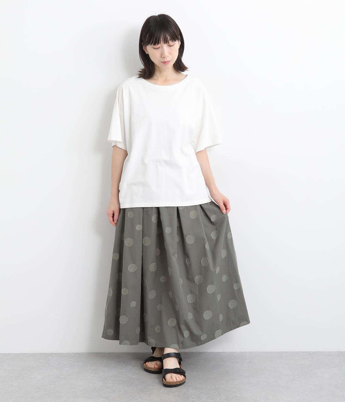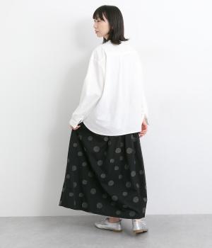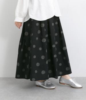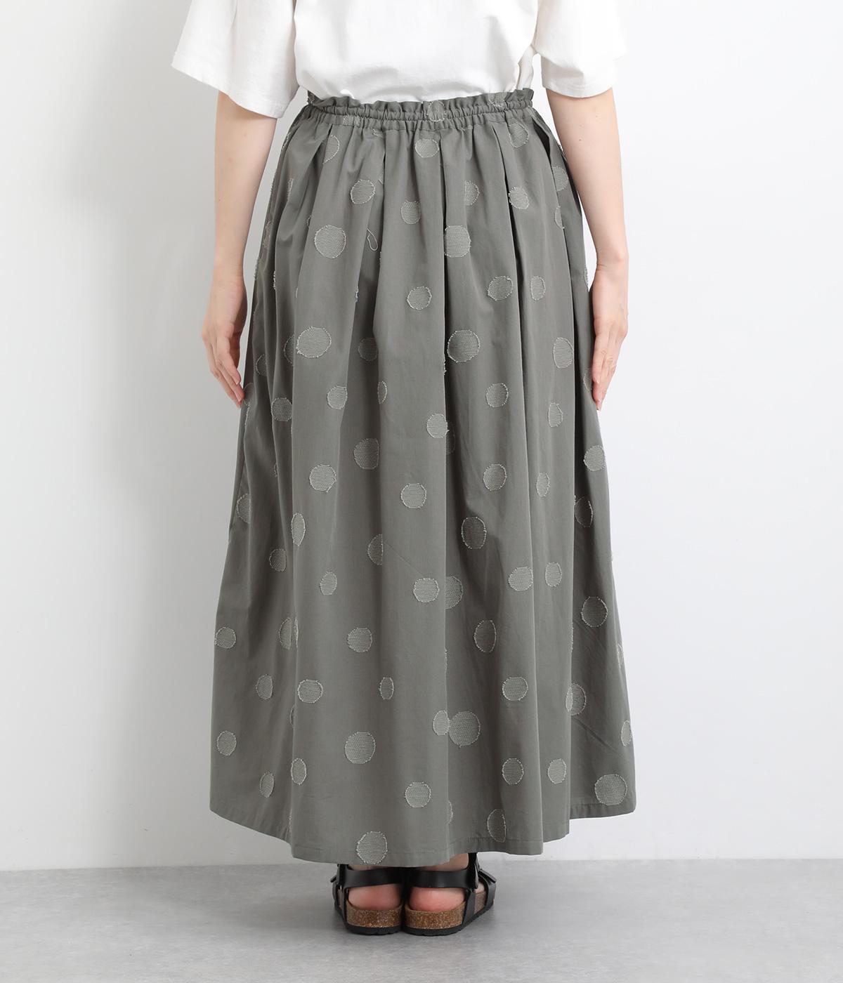 凹凸のあるドットは、シンプルなアイテムに合わせるだけでナチュラルな装いをつくります。ワンピースとコーディネートして、ペチスカートのように合わせるスタイルも◎。ウエストは総ゴムと、ウエスト紐なのでストレスフリーで着用できます。