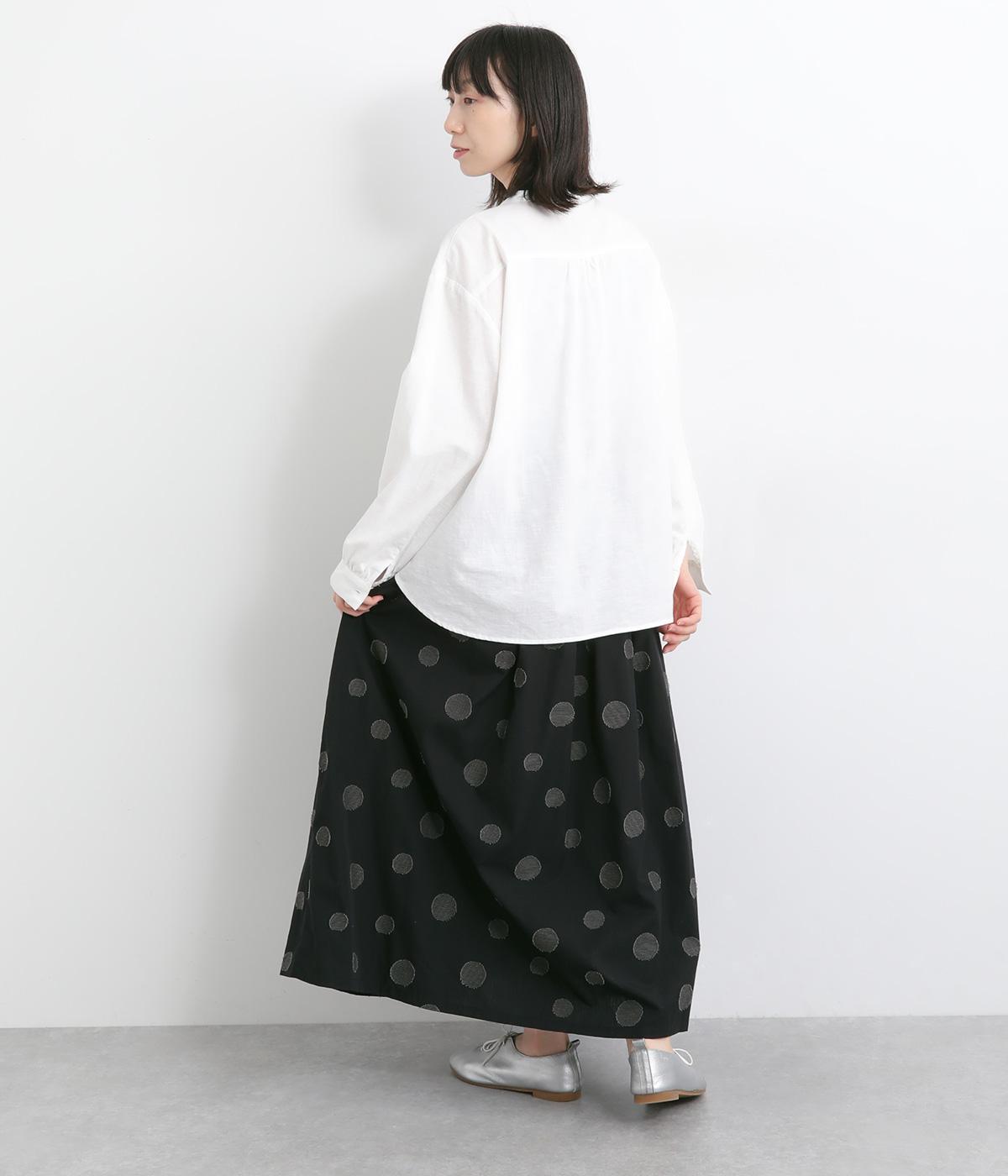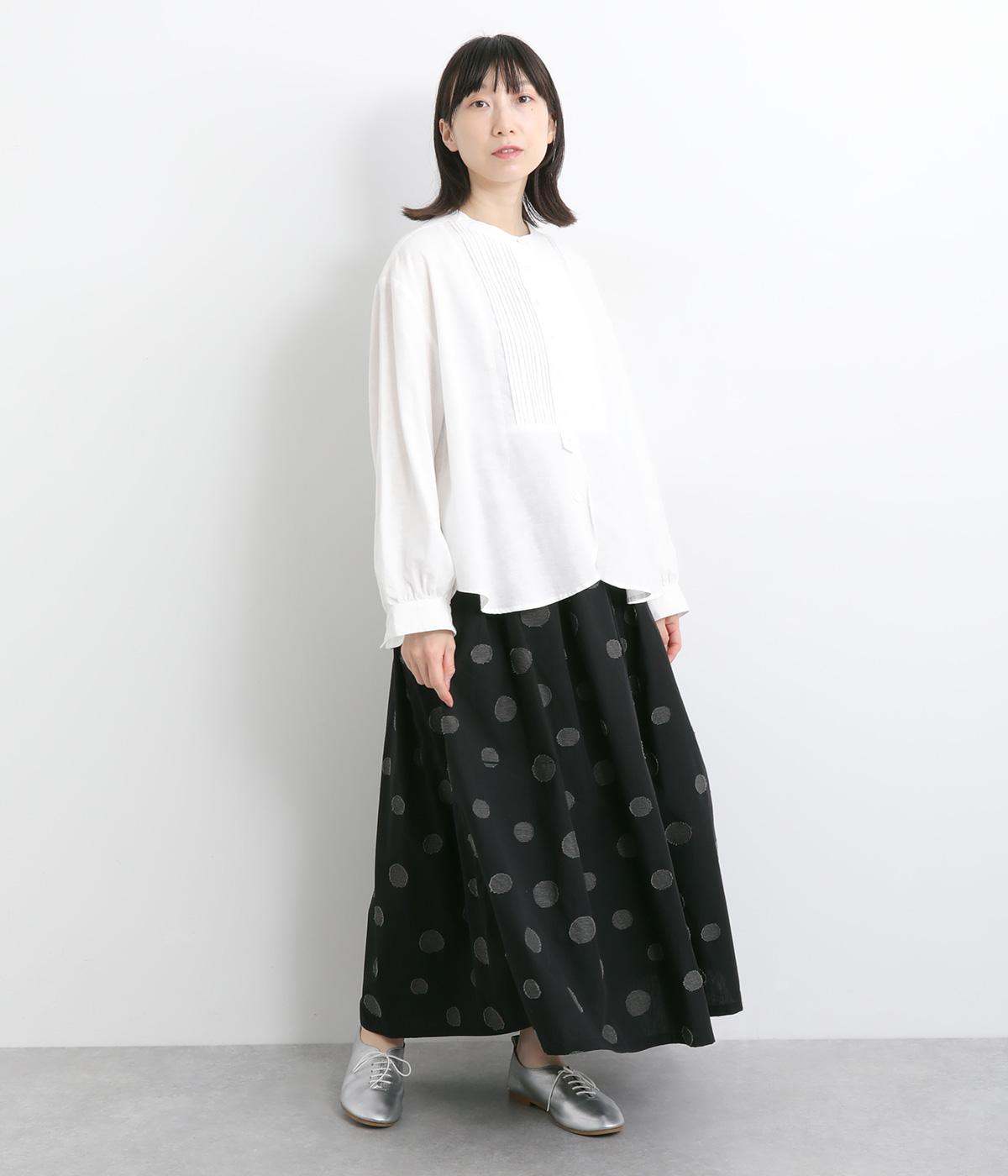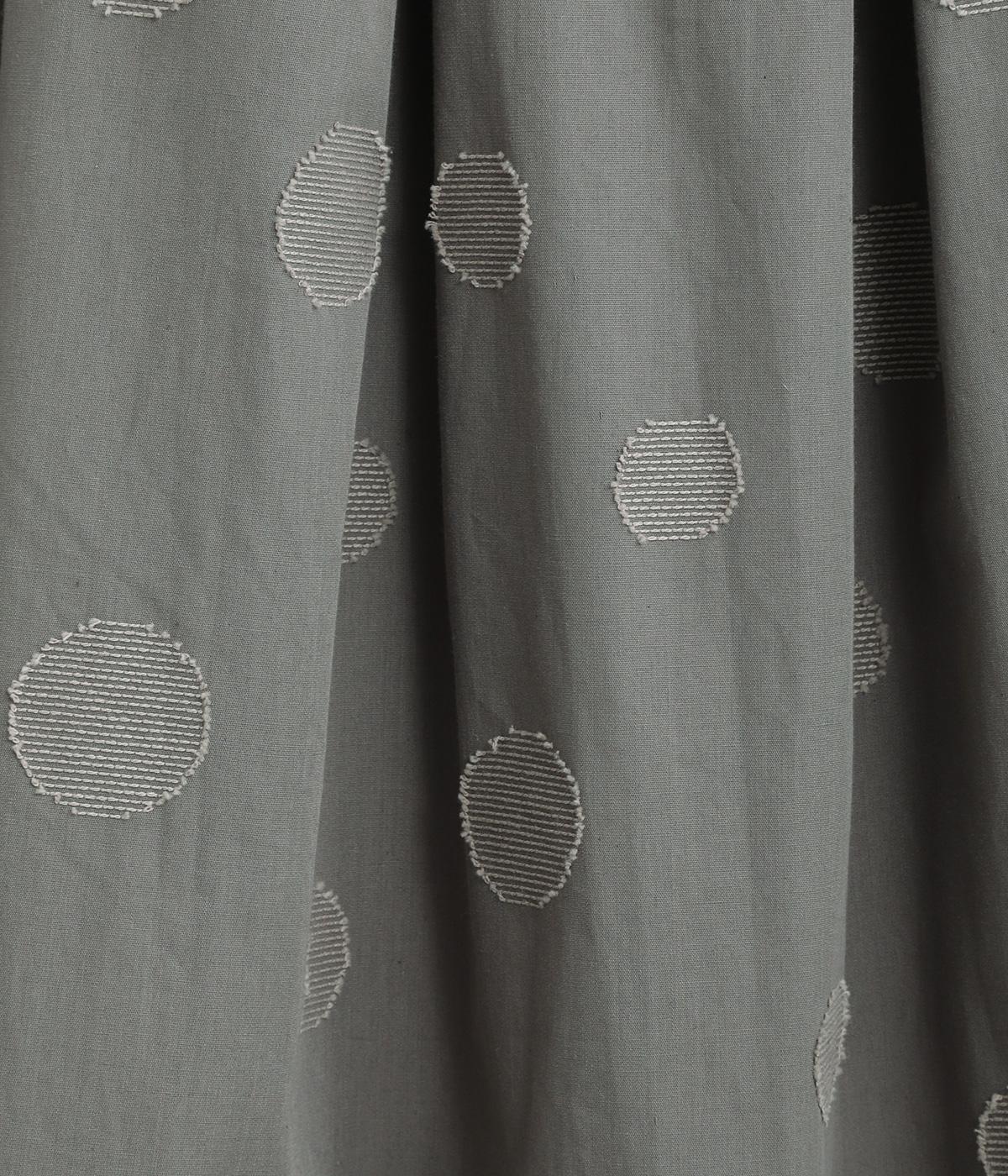 大小のドット柄をランダムに織り上げたジャカード生地を使用しました。ややハリがあり、さらりとしたしなやかな肌ざわりが特徴です。