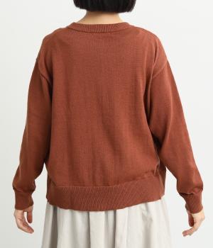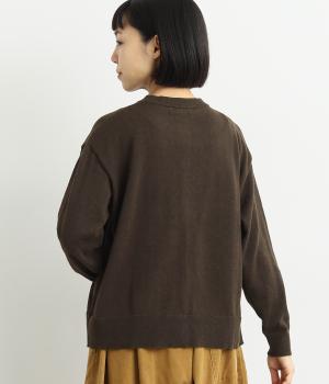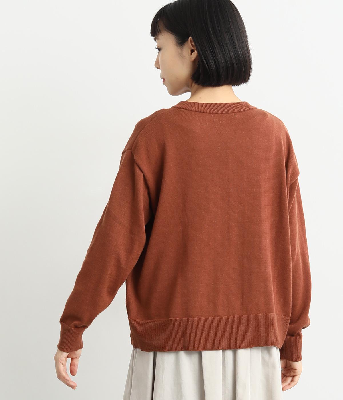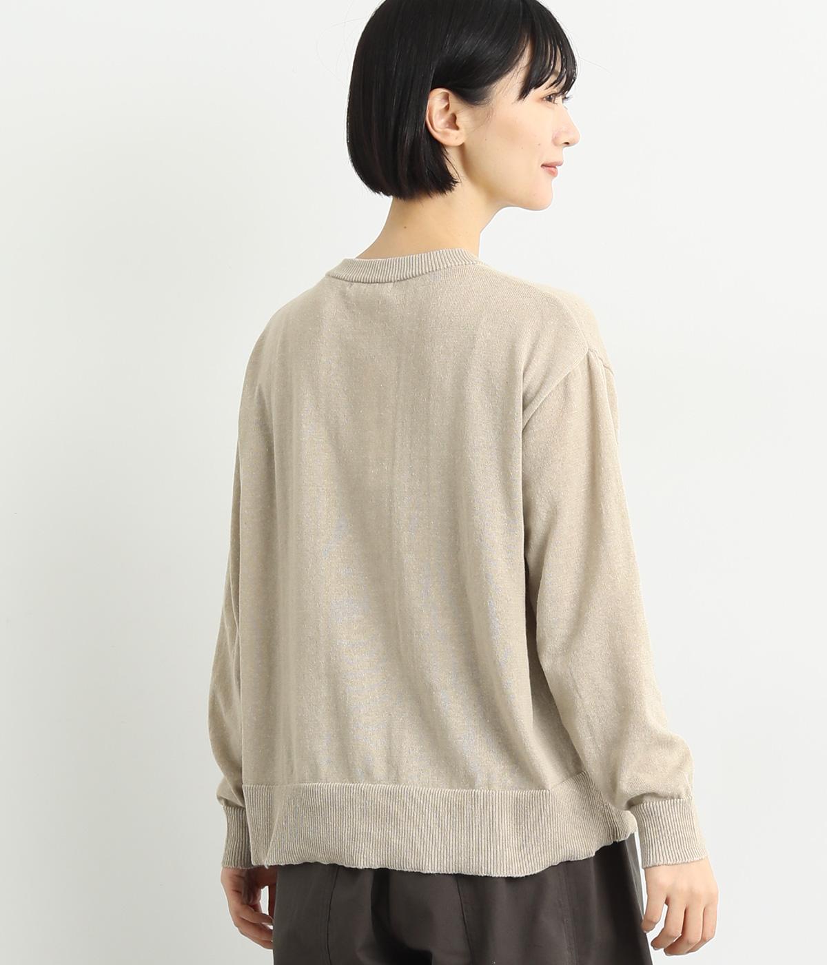 ポリエステルと麻で軽やかに仕上げたニットを使用。やわらかで伸びも良く着心地も抜群。さらっとした肌あたりで季節の変わり目にも重宝します。