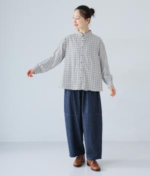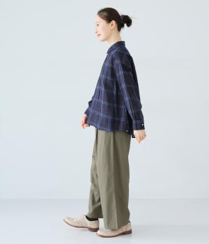 小さめの襟やラウンドさせたヘムライン、ふんわりとした袖がやさしい印象に仕上がっています。ジャケットとのレイヤードから、前をあけた羽織りまで、さまざまに活躍。特徴的なチェック柄ですが、スタイリングになじみやすい一枚。