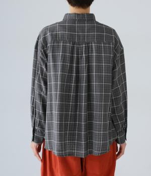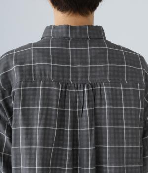 薄いコットンガーゼを二枚重ねることで、裏の柄が透けて交差して見えるチェック柄が印象的。ふっくらとしたボリュームとやわらかな肌触りで着心地よく、吸水性もいいので快適に着用できます。