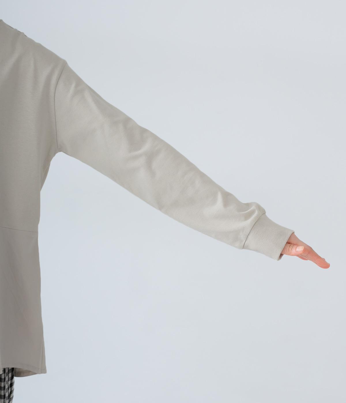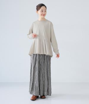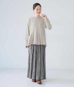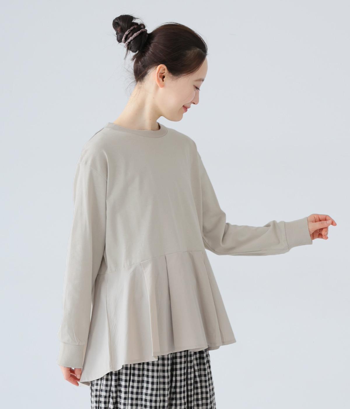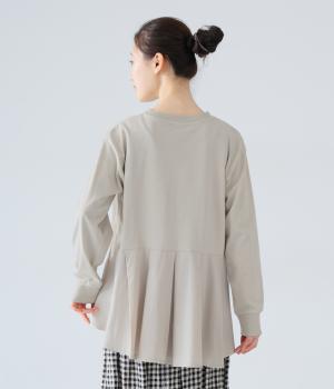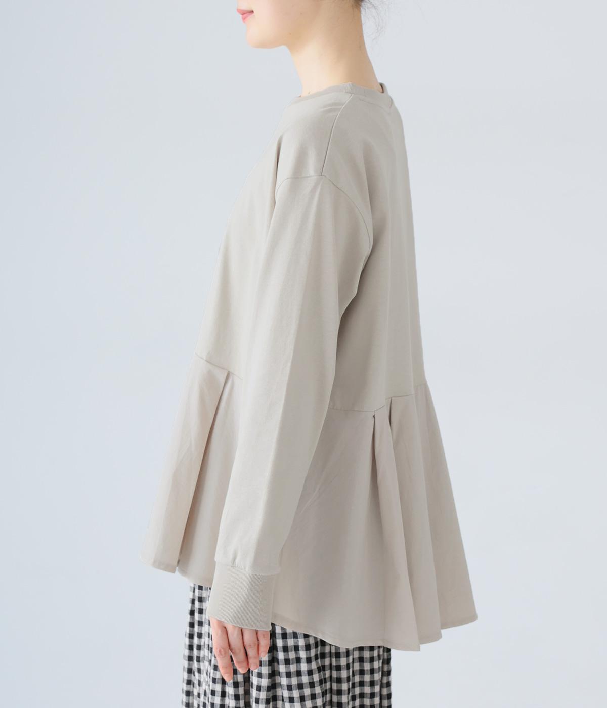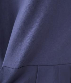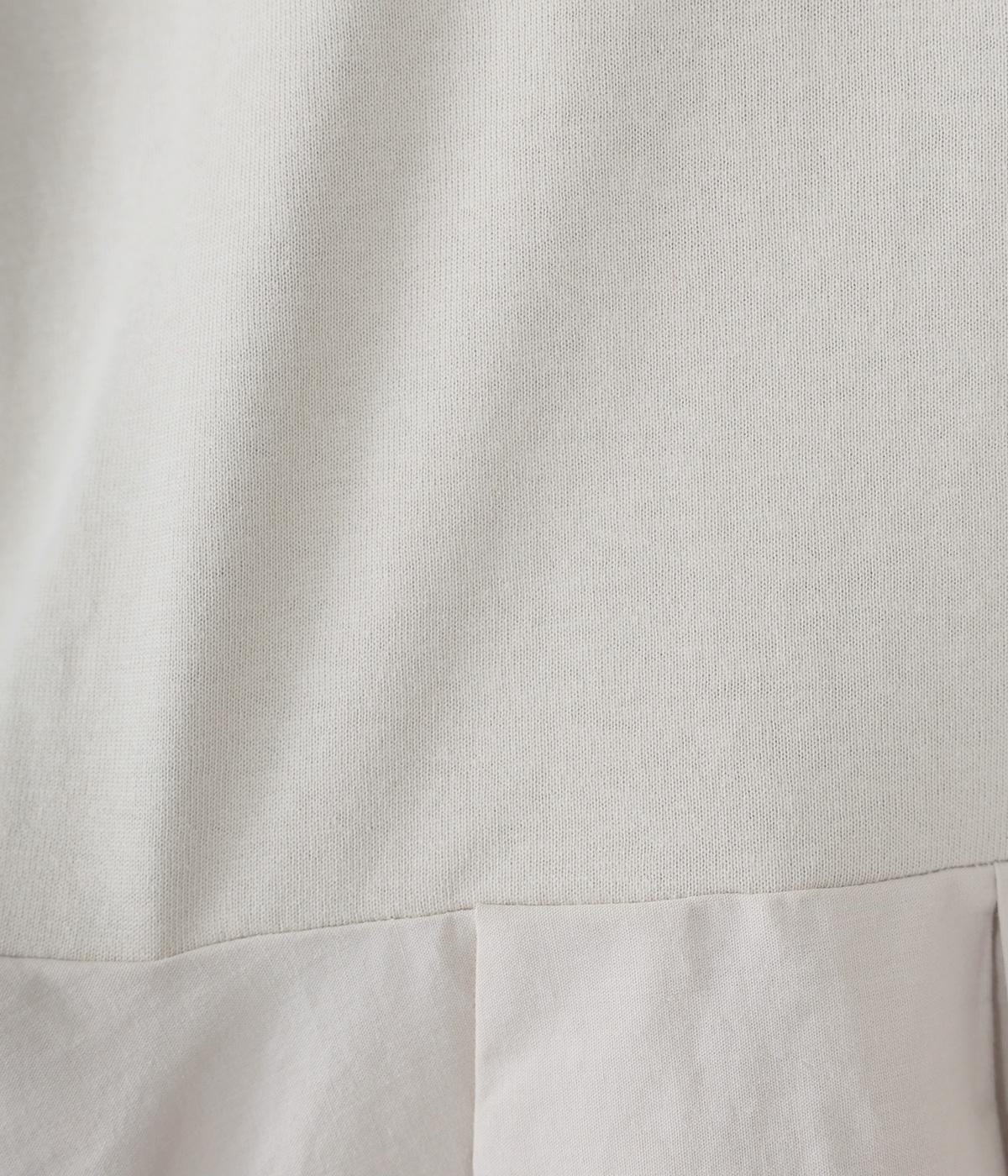さらりとしたコットン平織り素材と、ソフトで伸びのいいコットン天竺素材を組み合わせました。使い勝手のいい薄めの中厚手生地ながら、どちらも透け感が気にならないのでデイリーに着まわせます。