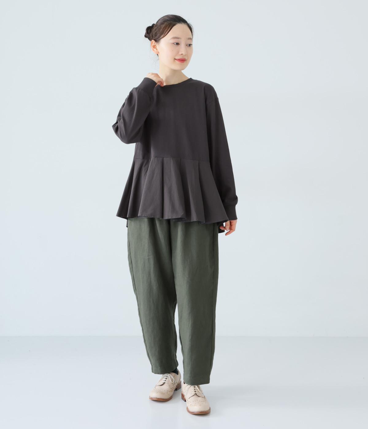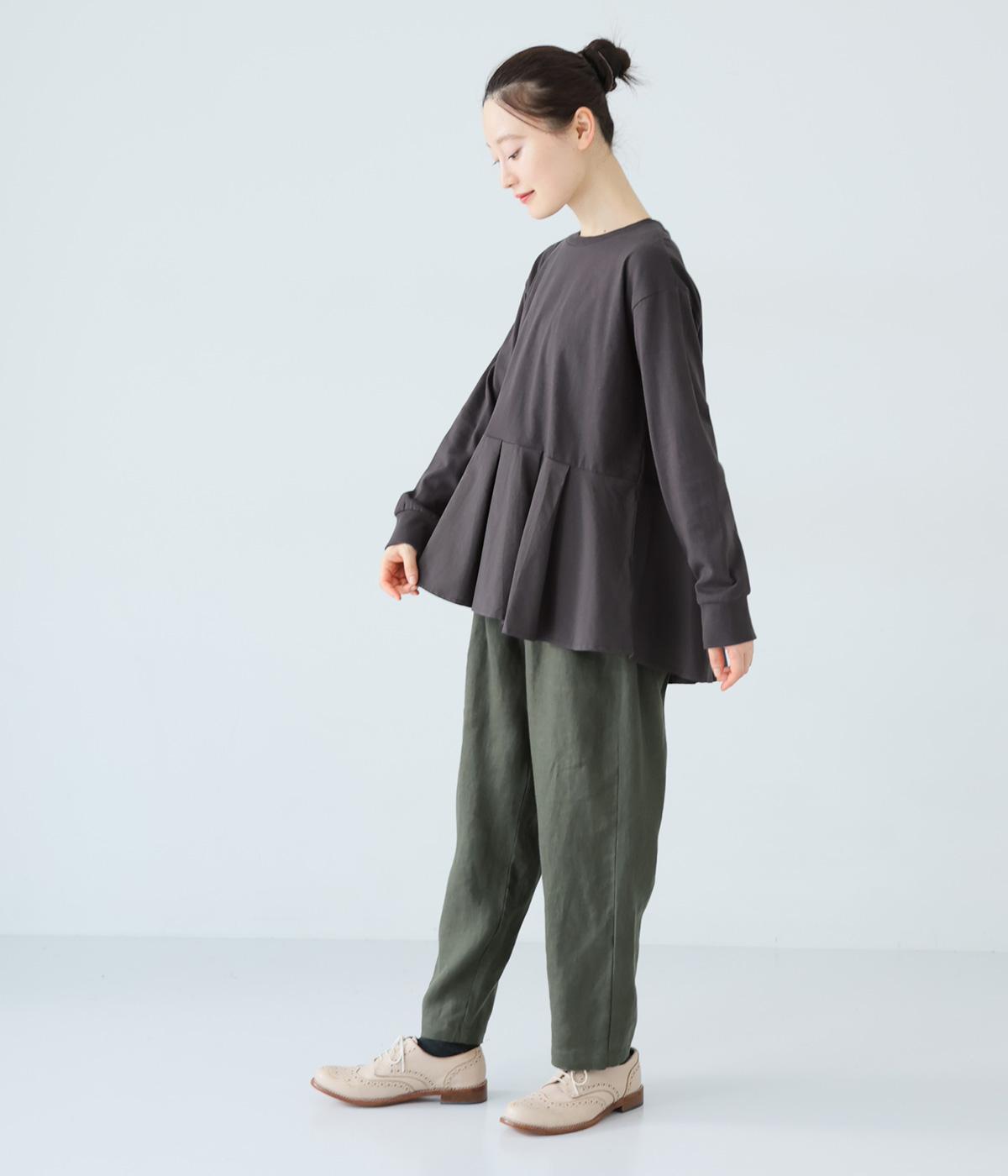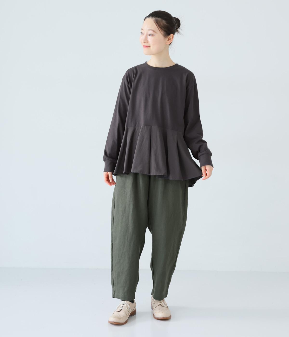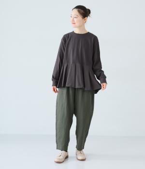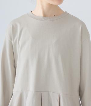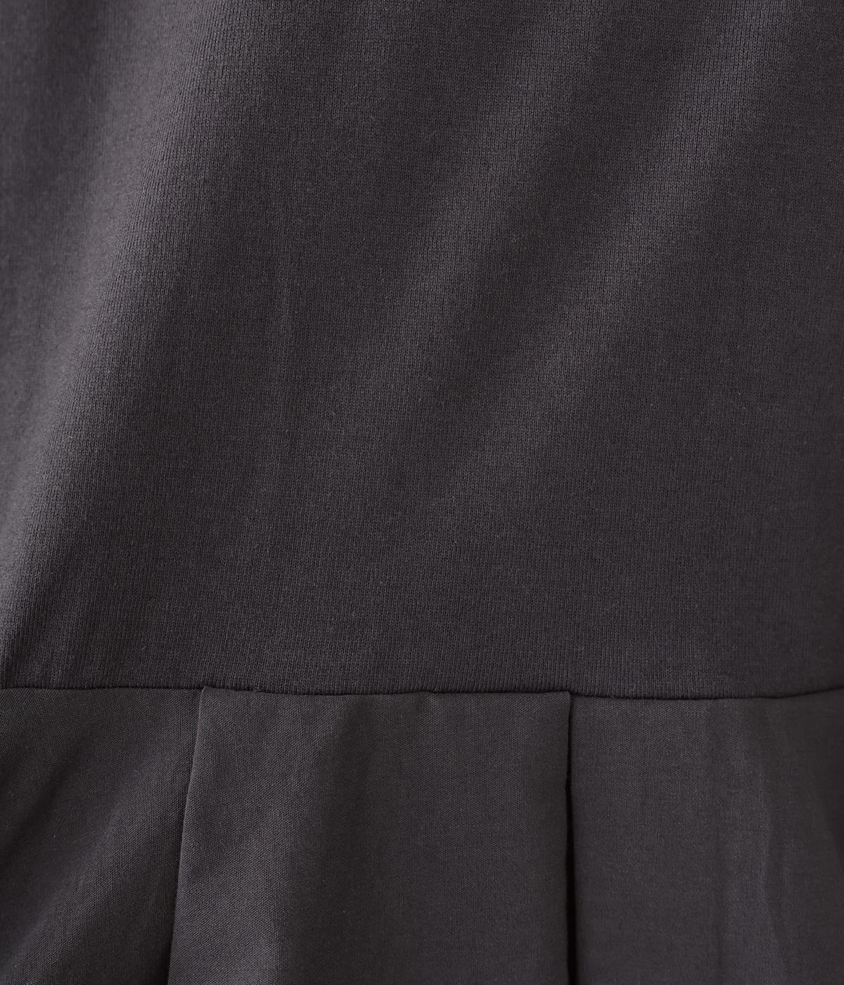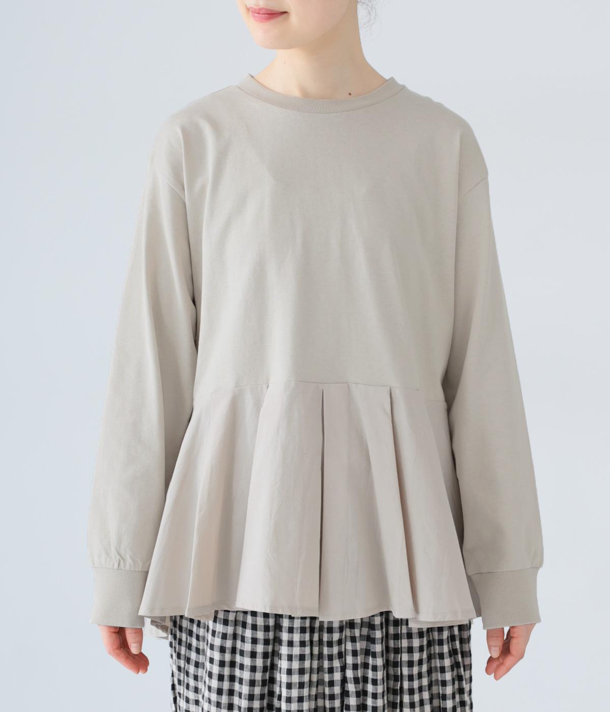 さらりとしたコットン平織り素材と、ソフトで伸びのいいコットン天竺素材を組み合わせました。使い勝手のいい薄めの中厚手生地ながら、どちらも透け感が気にならないのでデイリーに着まわせます。