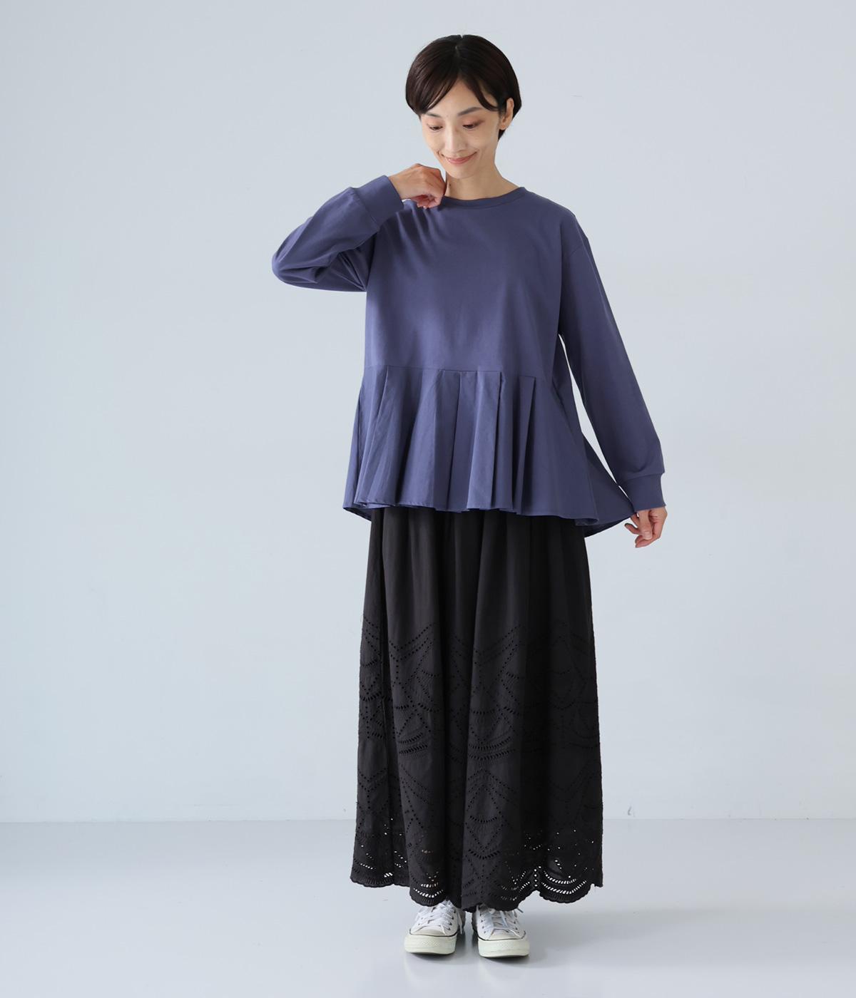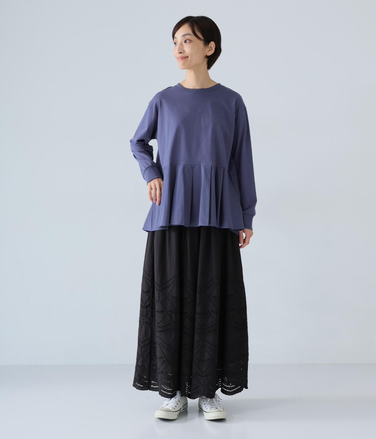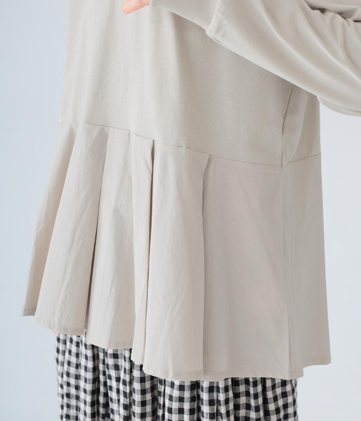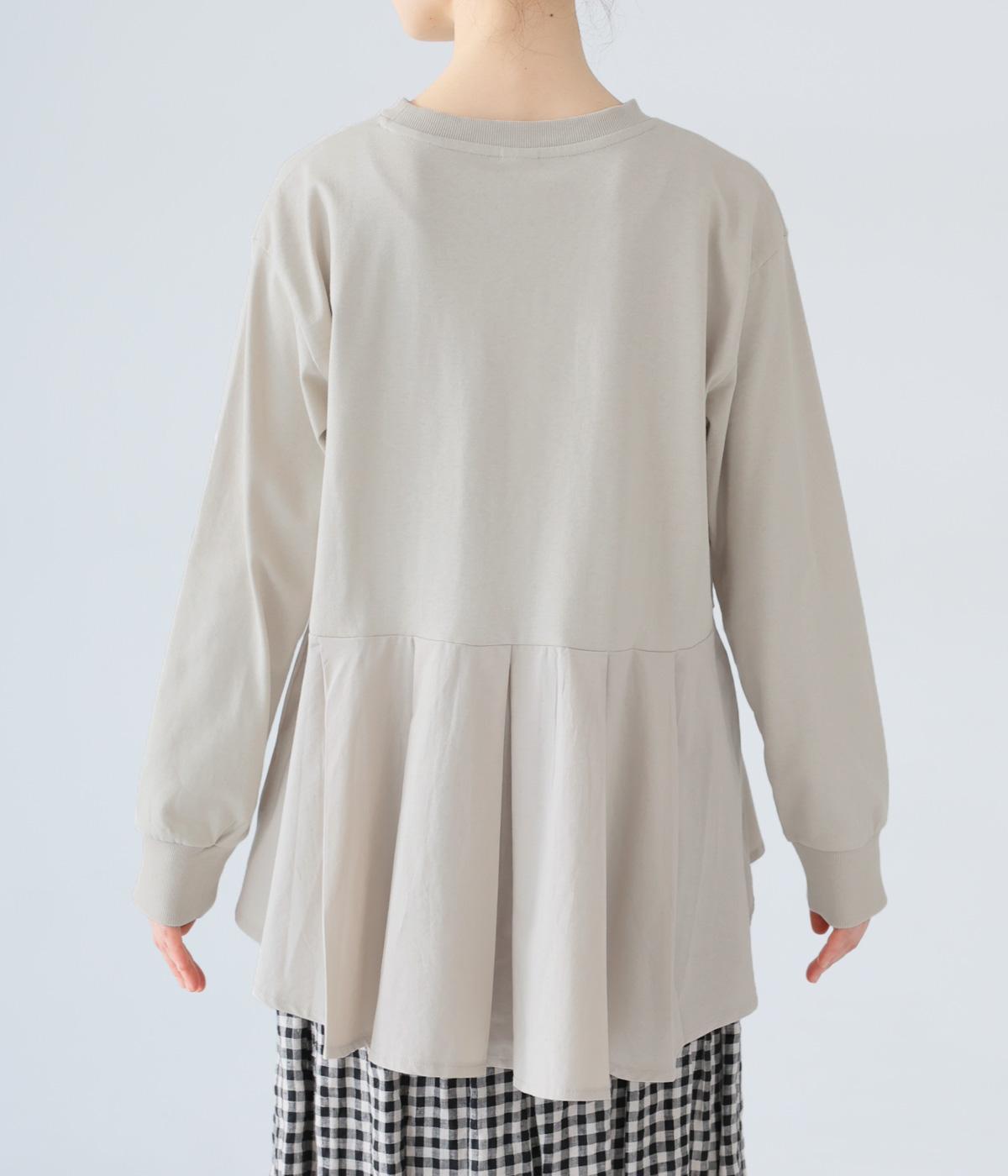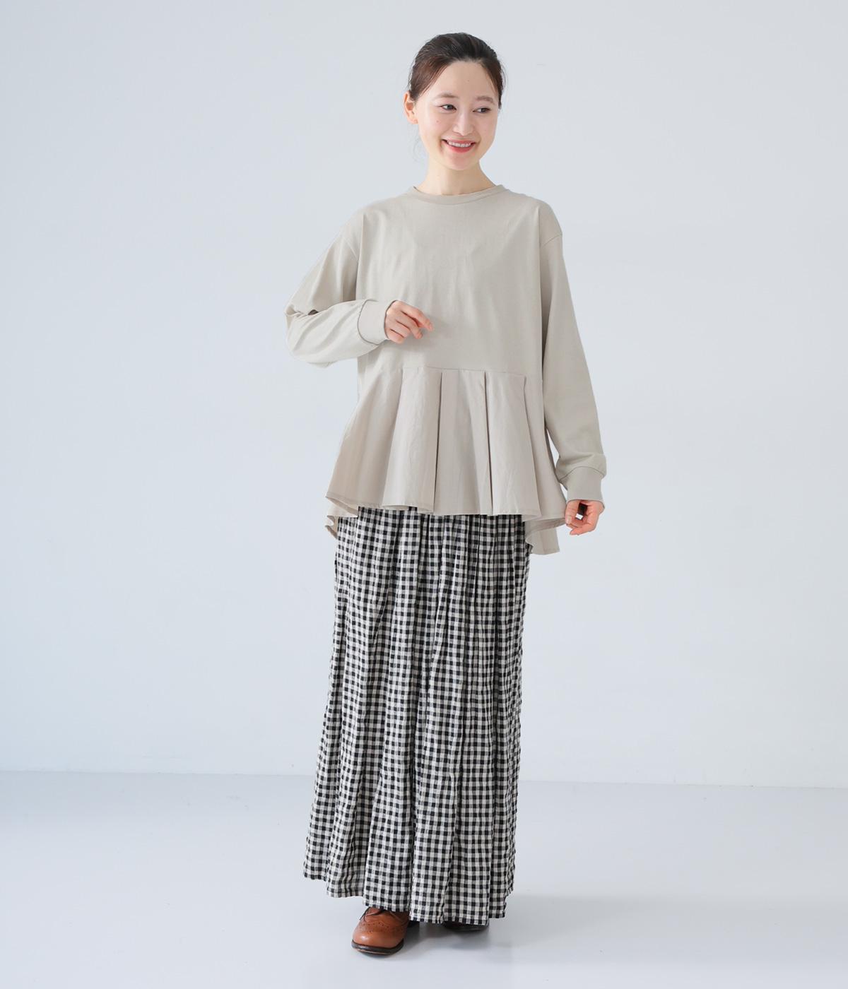 さらりとしたコットン平織り素材と、ソフトで伸びのいいコットン天竺素材を組み合わせました。使い勝手のいい薄めの中厚手生地ながら、どちらも透け感が気にならないのでデイリーに着まわせます。