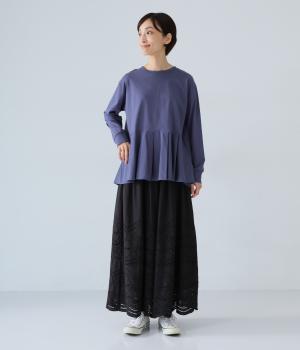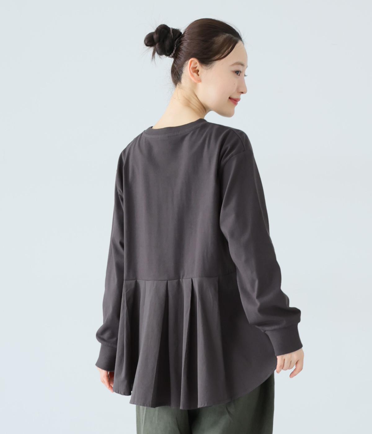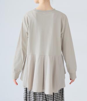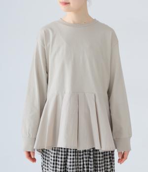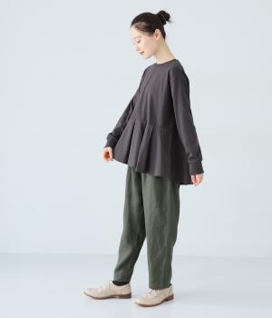切り替え部分にタックを入れたペプラムシルエットが華やかな一枚。コットン布帛を使用しているので、ボリュームを持たせながらも仕上がりは軽やか。シンプルなボトム合わせでもお洒落見えが叶う、着映え力のあるアイテムです。