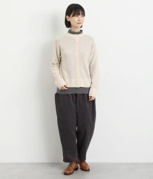 首元がすっきり詰まった品のいい印象のクルーネックカーディガン。羽織りにもプルオーバーにもなる前後2wayで着こなしの幅も広がります。袖まわりにほどよくゆとりを持たせているので重ね着しやすく、リラックス感のある着心地が魅力。