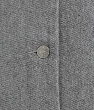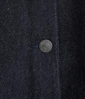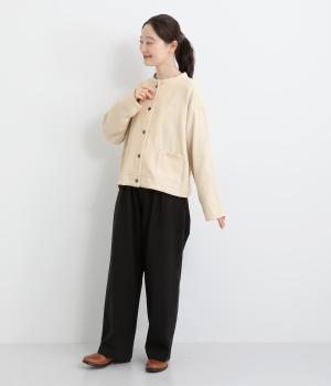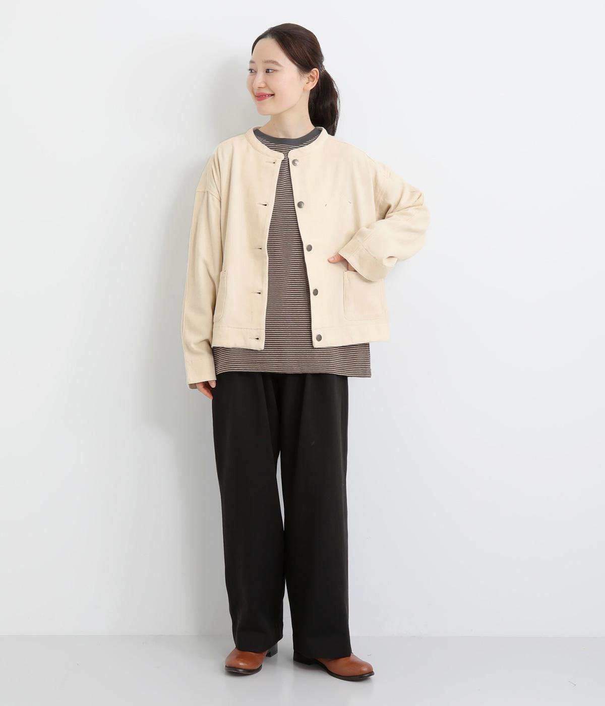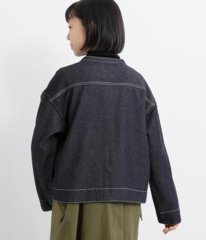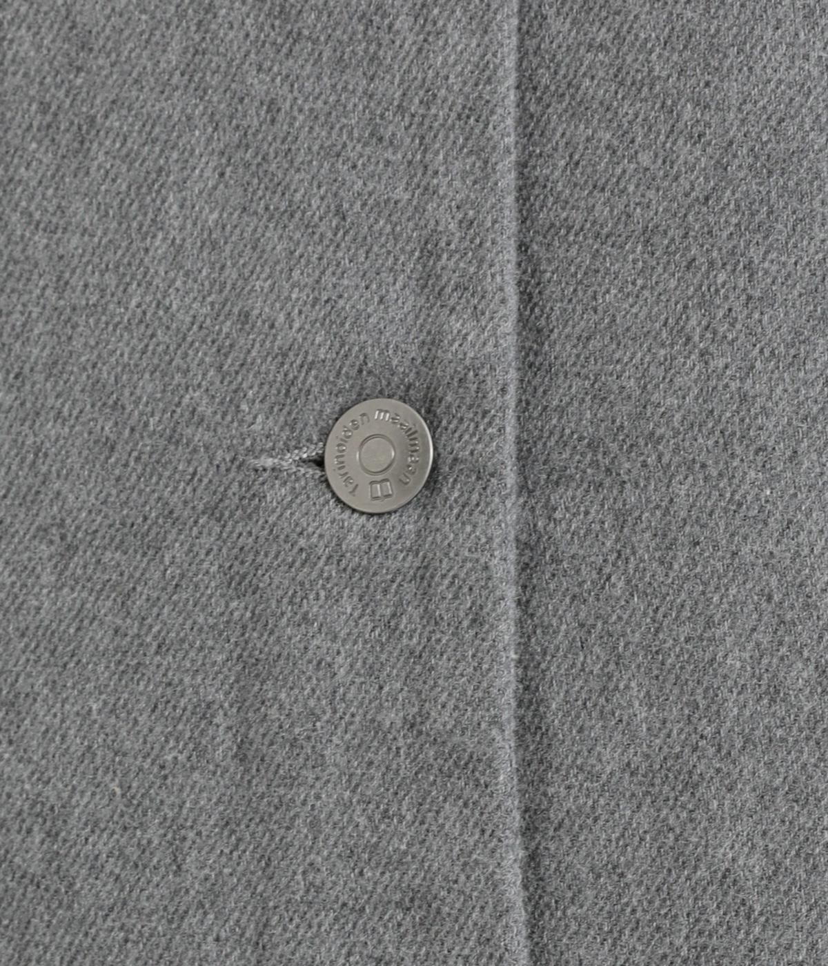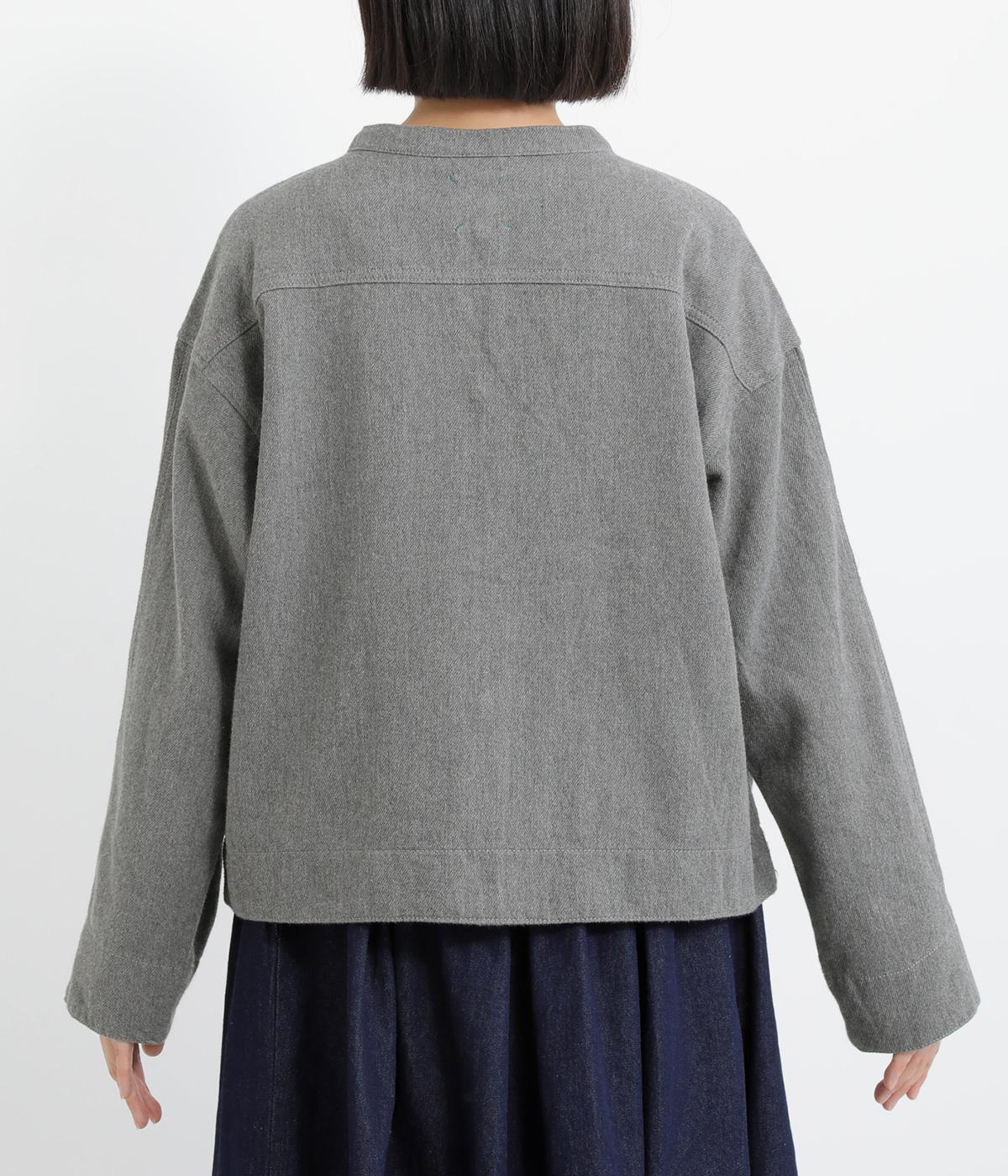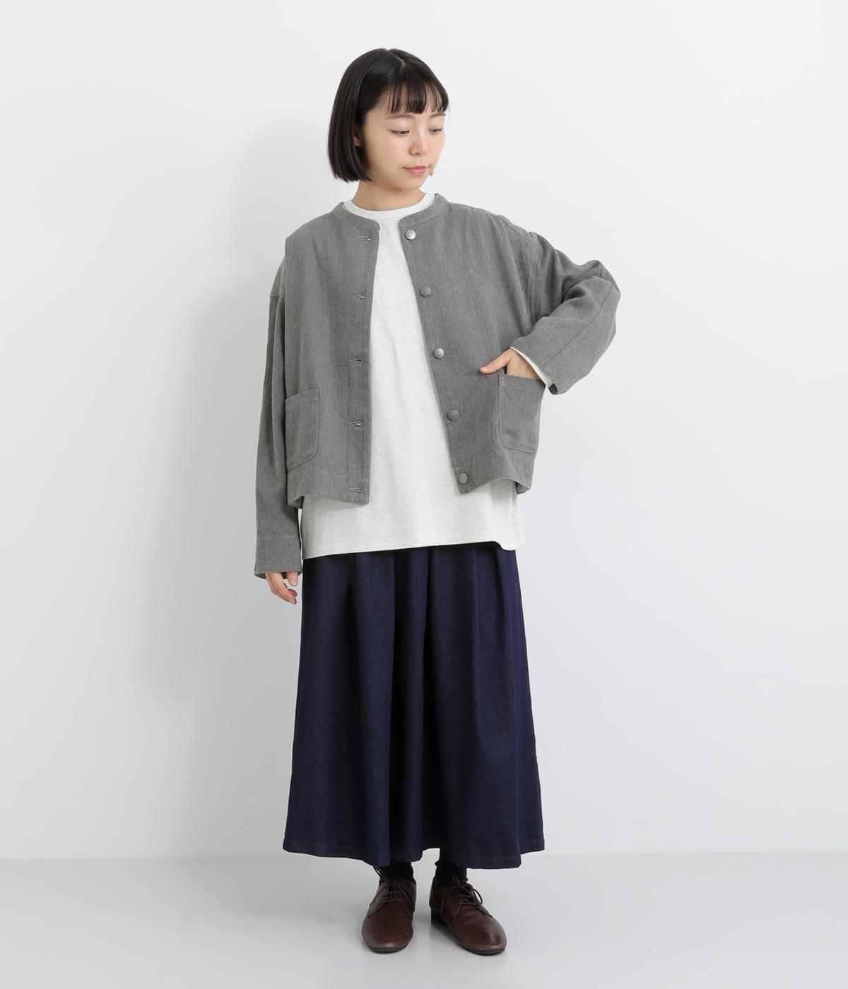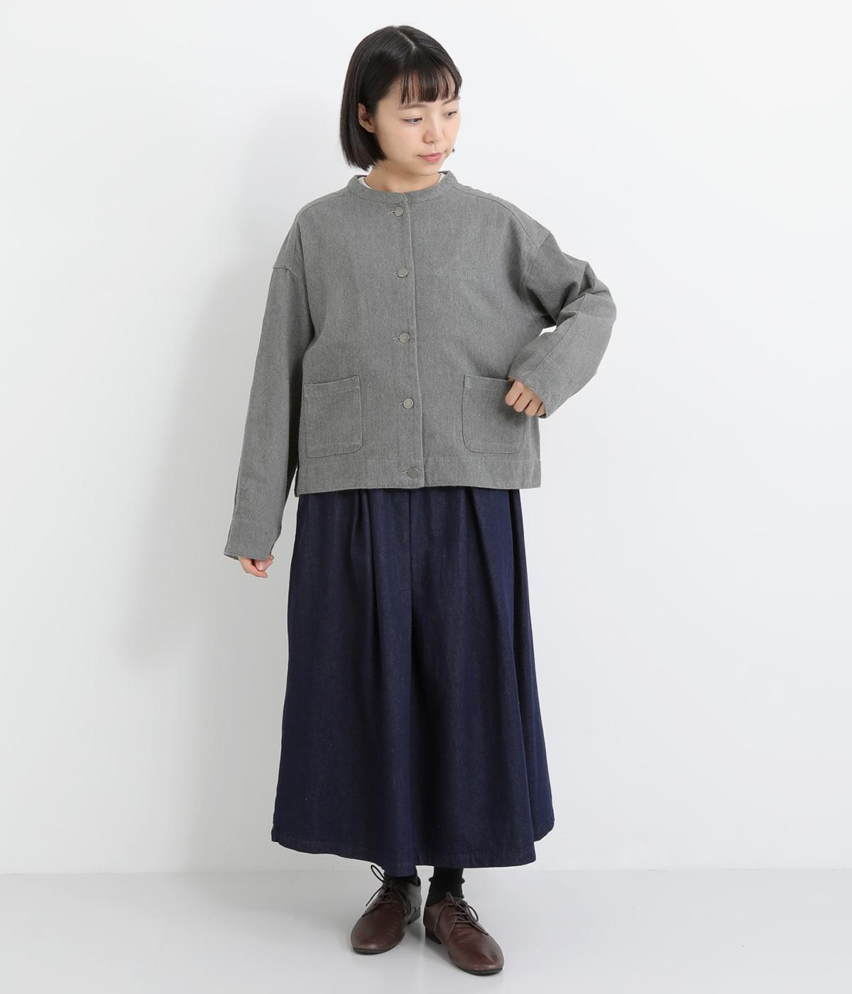 シンプルでゆとりのあるフォルムのジャケットです。ドロップショルダーとやや大きく広がる首元がやわらかさを印象付けます。スナップボタンをしっかり閉めてフォーマルに、いくつか開けてカジュアルにも着こなせます。胸元には小さな内ポケット付き。