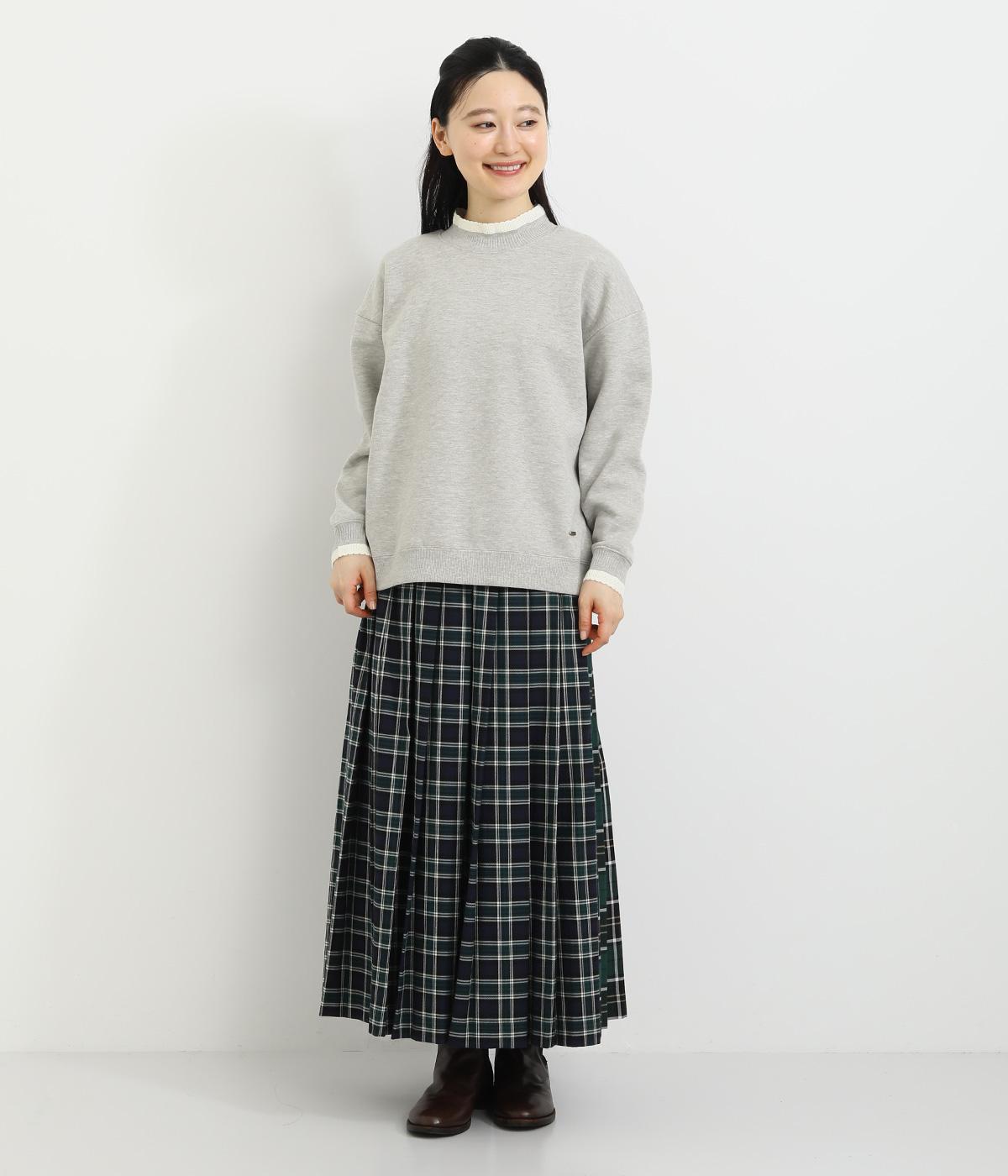 配色にした編み立てが目をひくプルオーバー。カジュアルなプルオーバーにきれいめなポイントをプラスしました。一枚でスタイリングが完成するアイテムです。扱いやすい素材でデイリーに着まわせます。