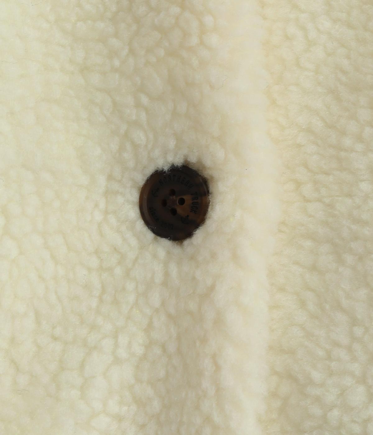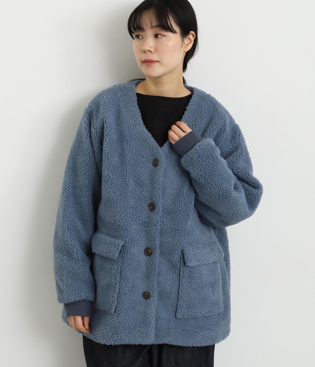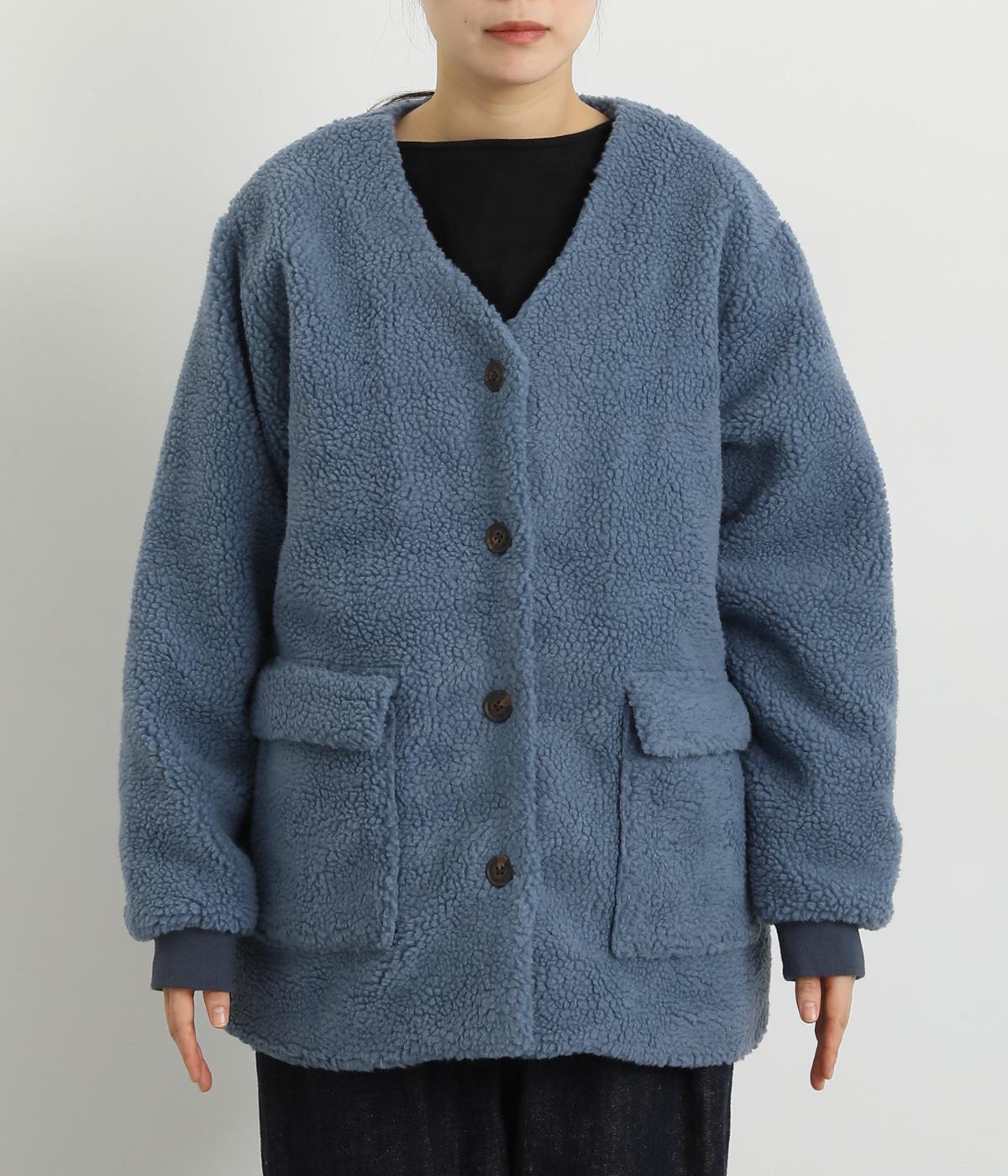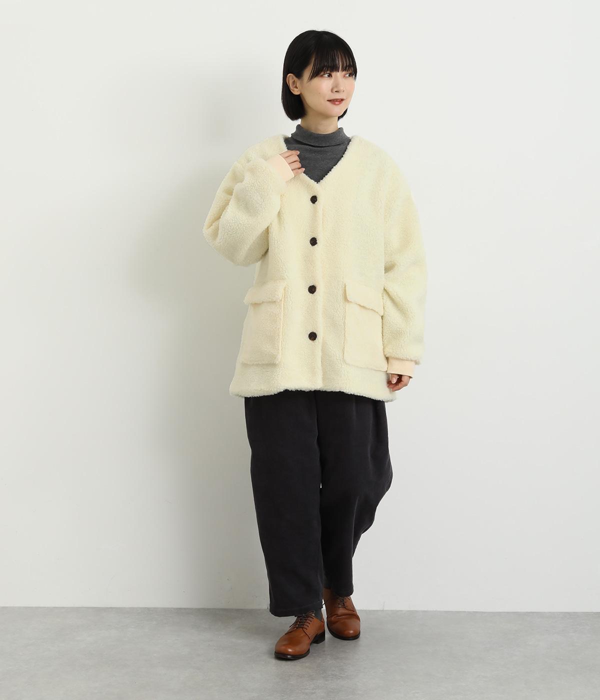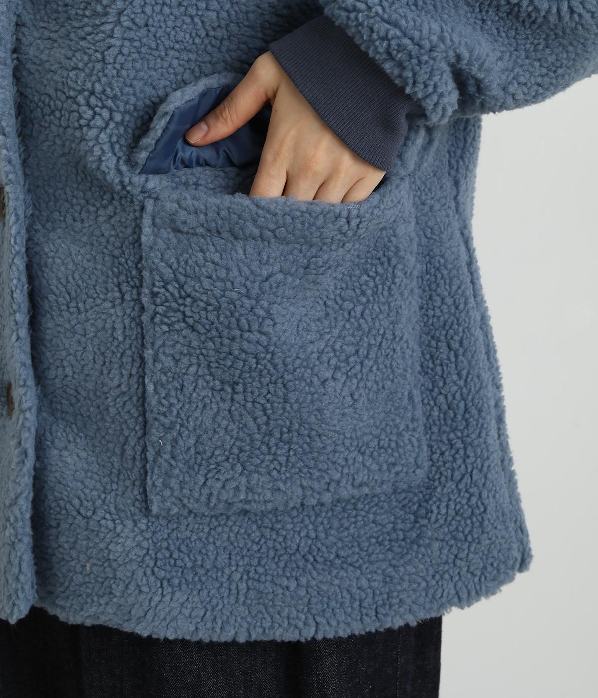 もこもことした表面感が可愛らしい印象を与える、やわらかくふっくらとしたボアフリース素材を使用しています。すべりのいい裏地つきで袖の通りもスムーズです。