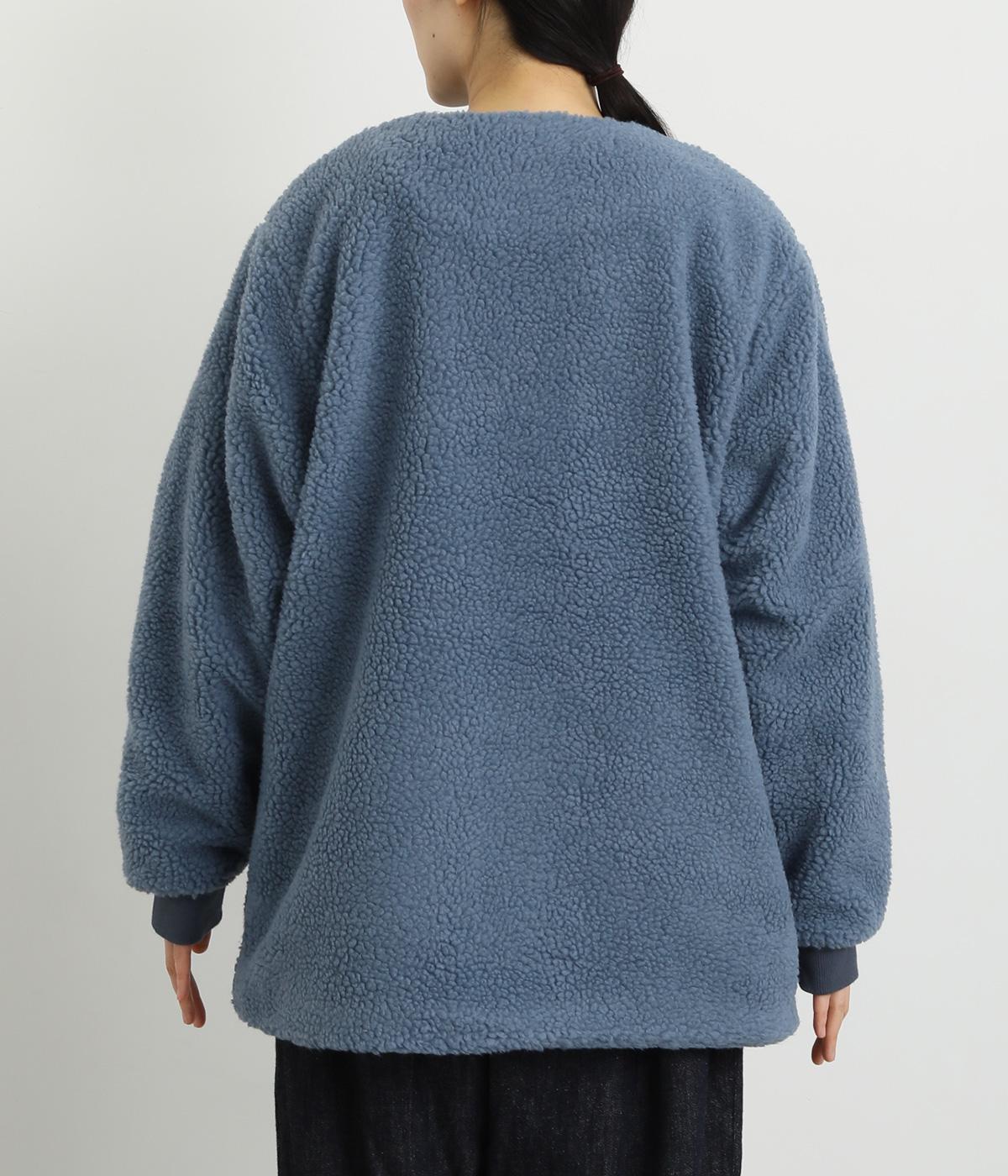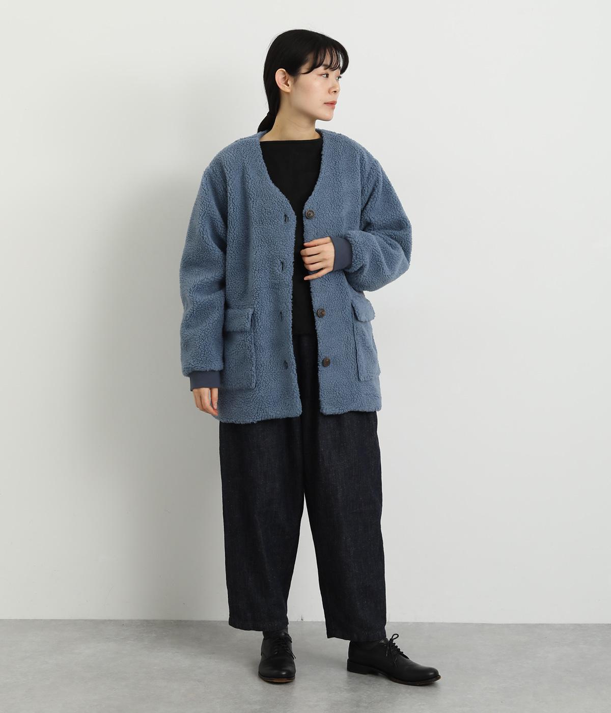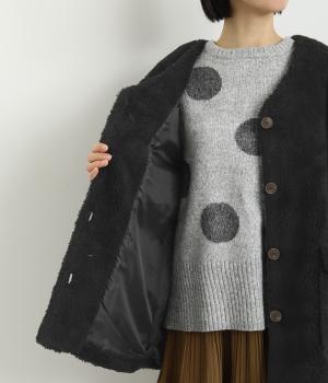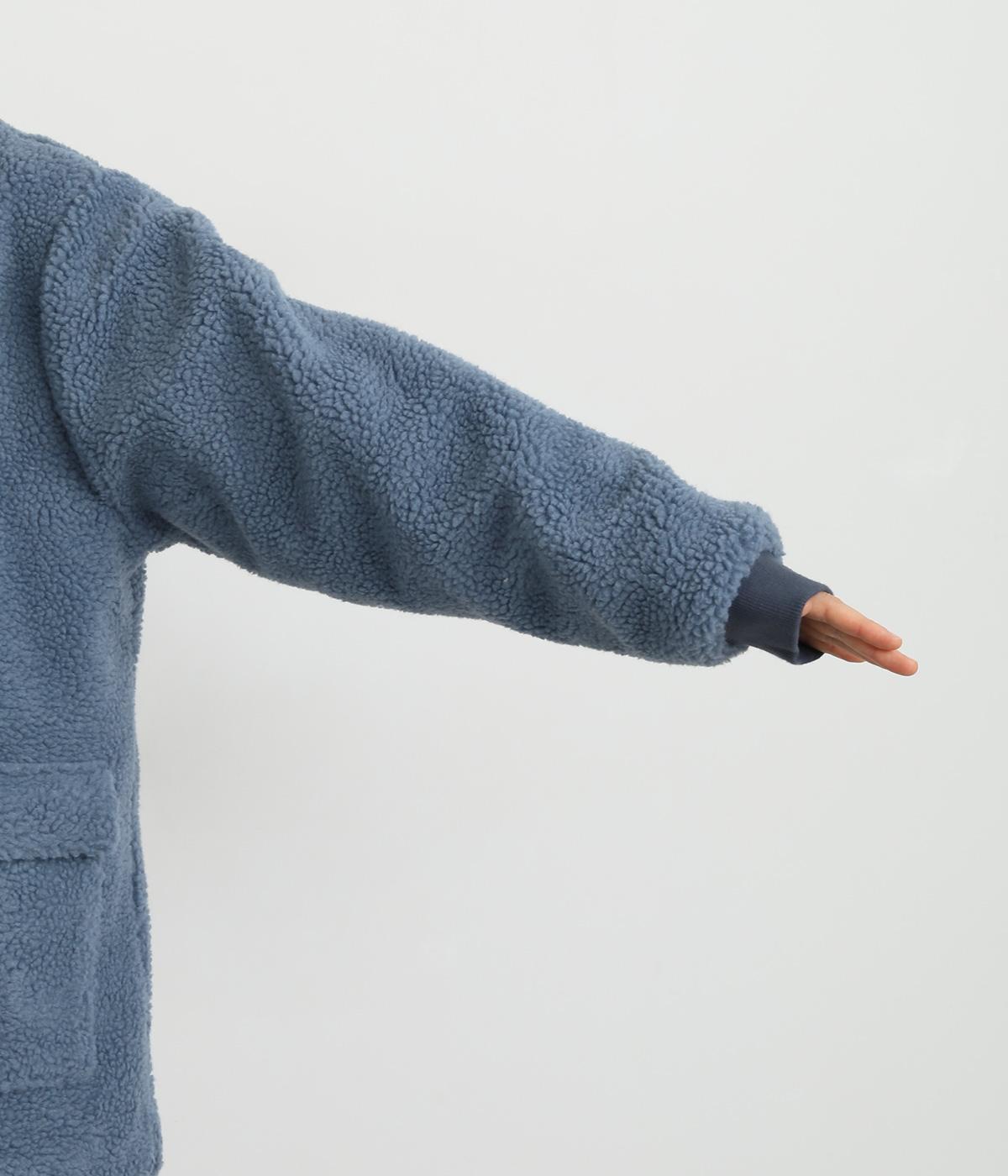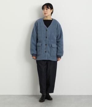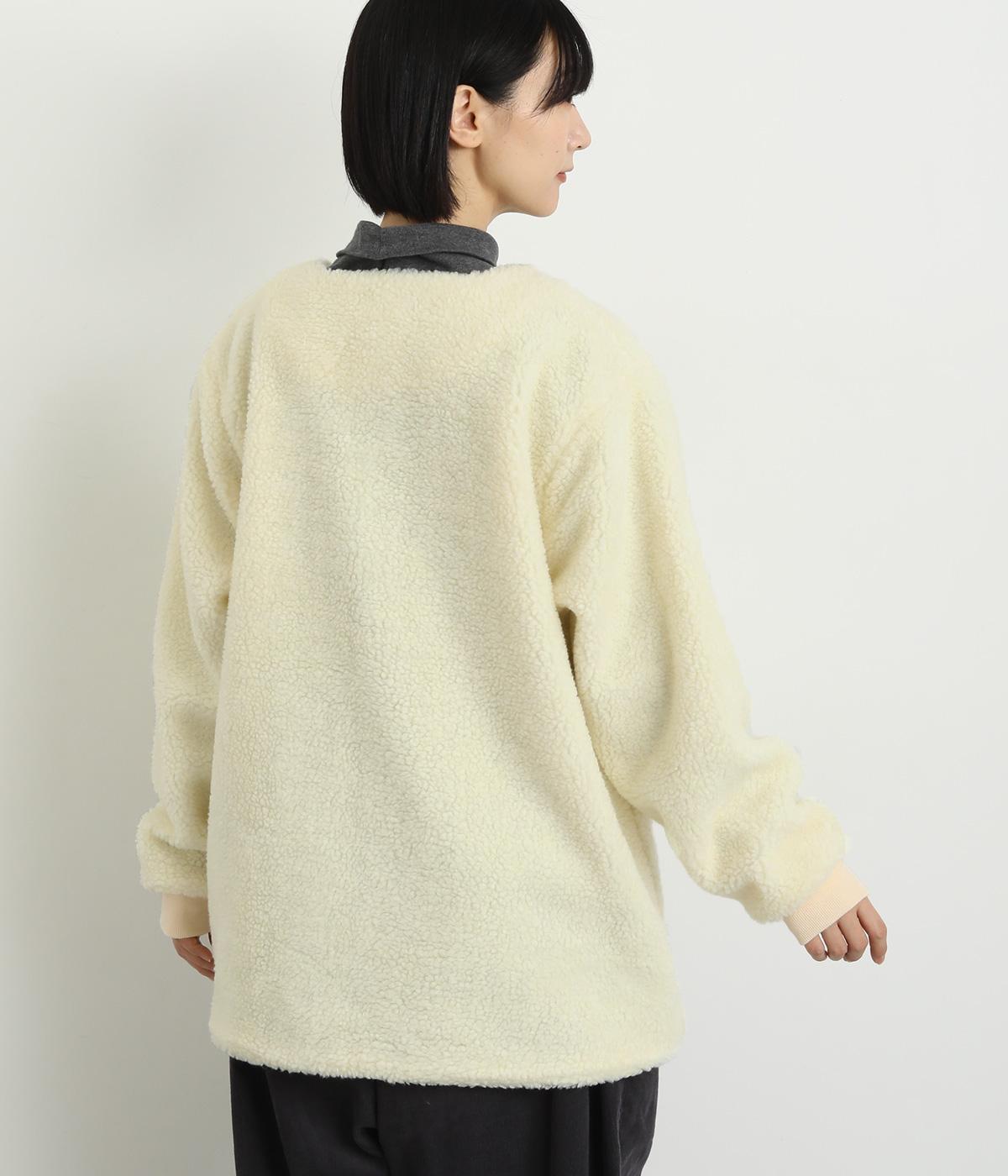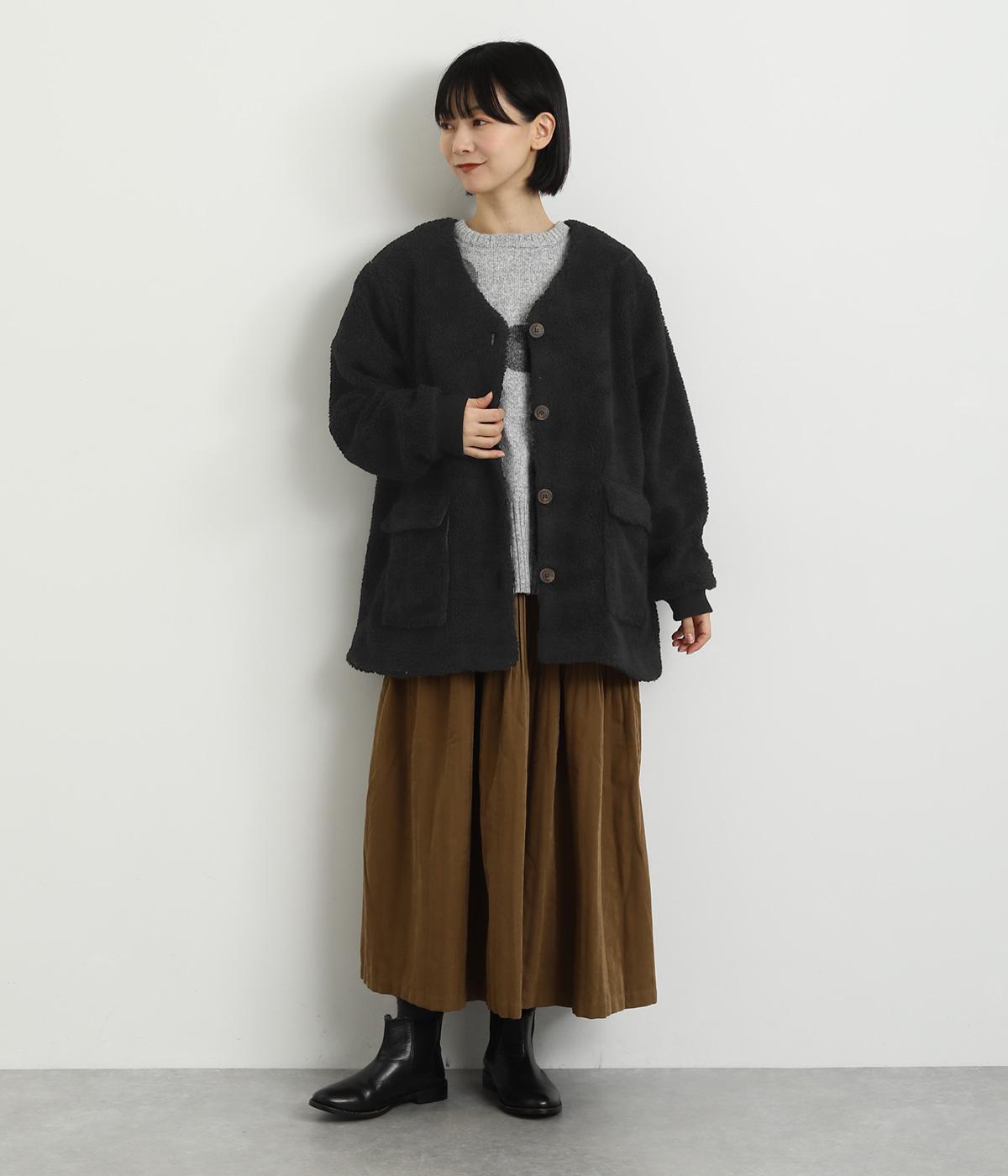 もこもことした表面感が可愛らしい印象を与える、やわらかくふっくらとしたボアフリース素材を使用しています。すべりのいい裏地つきで袖の通りもスムーズです。