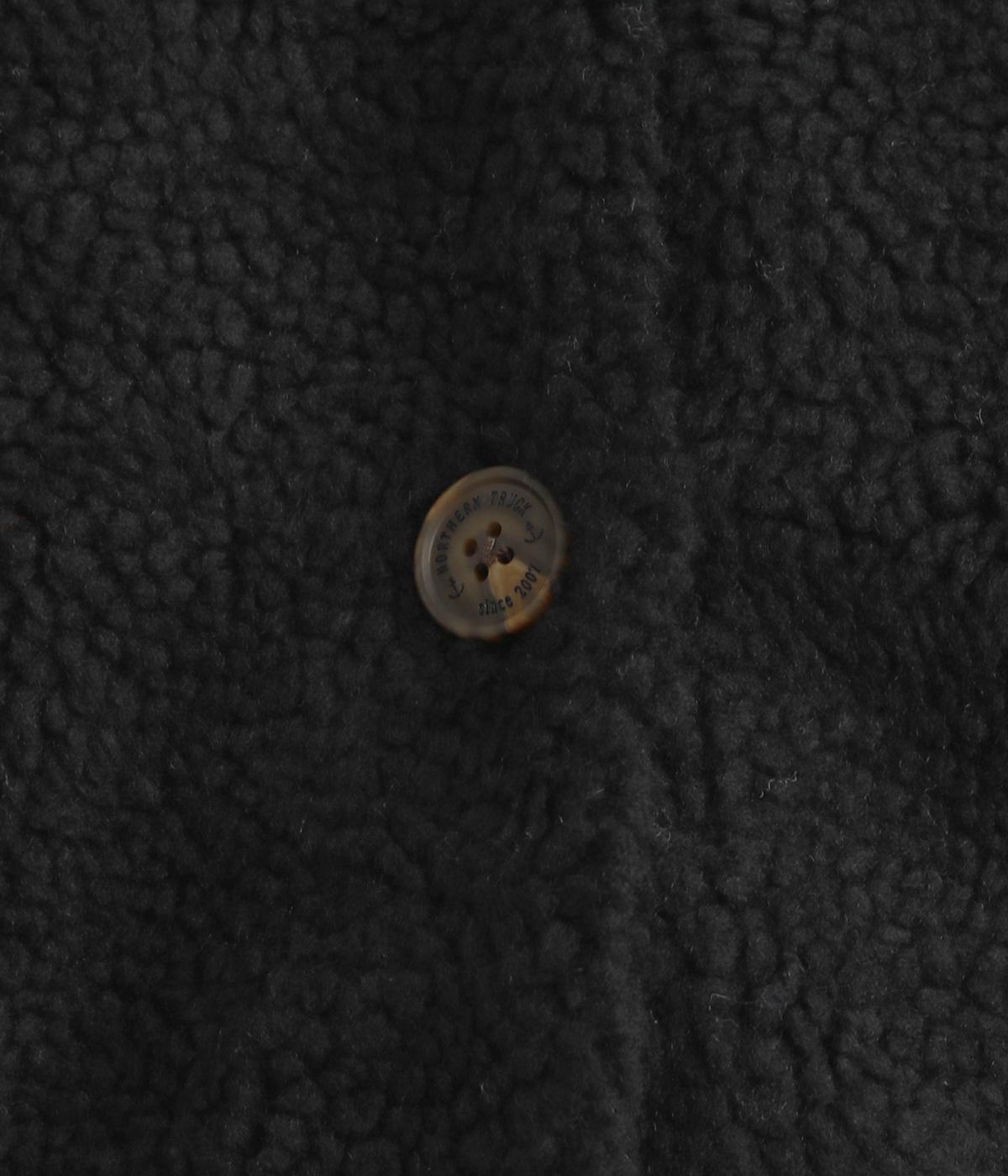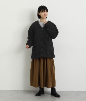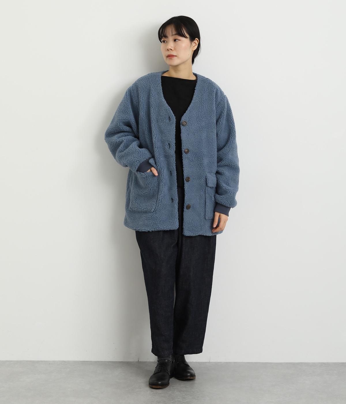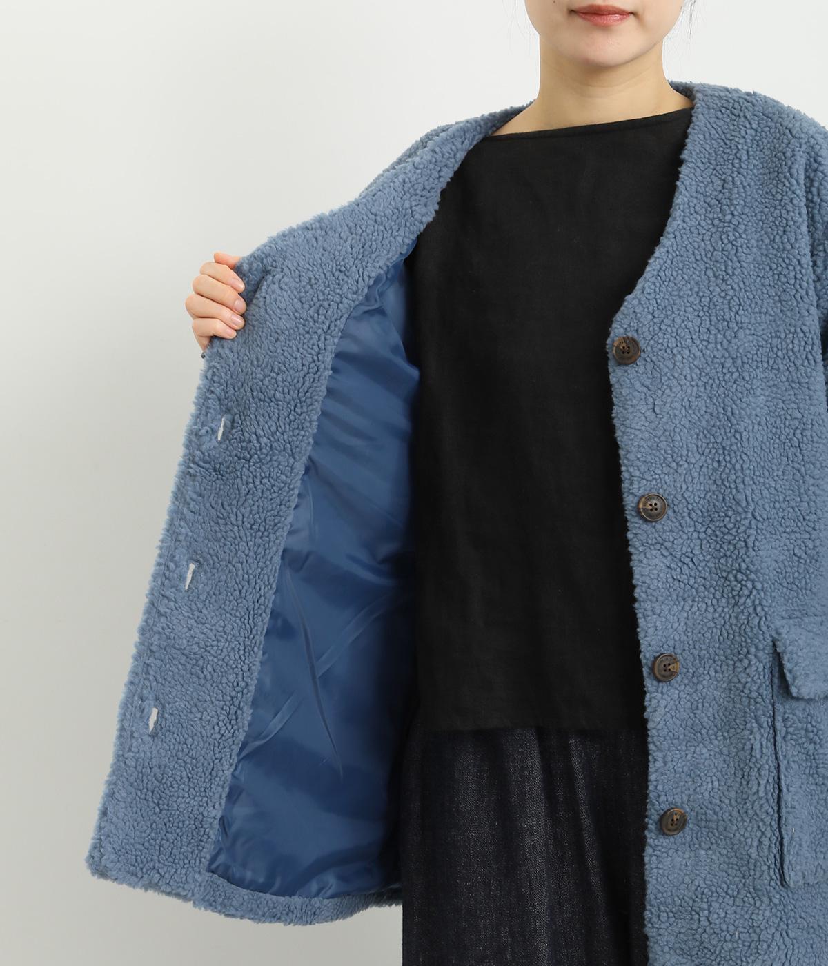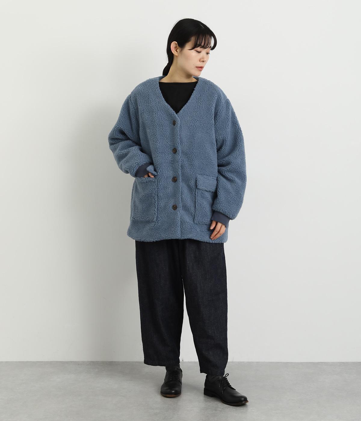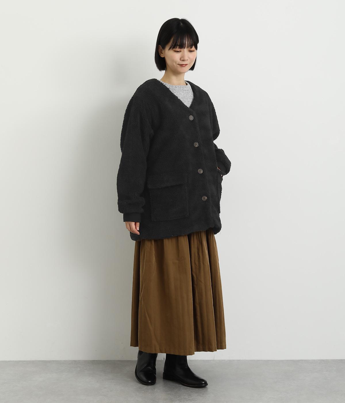 もこもことした表面感が可愛らしい印象を与える、やわらかくふっくらとしたボアフリース素材を使用しています。すべりのいい裏地つきで袖の通りもスムーズです。