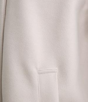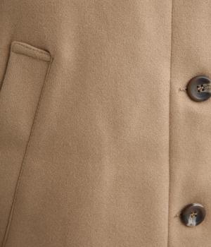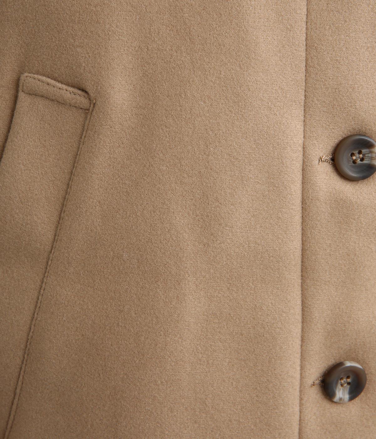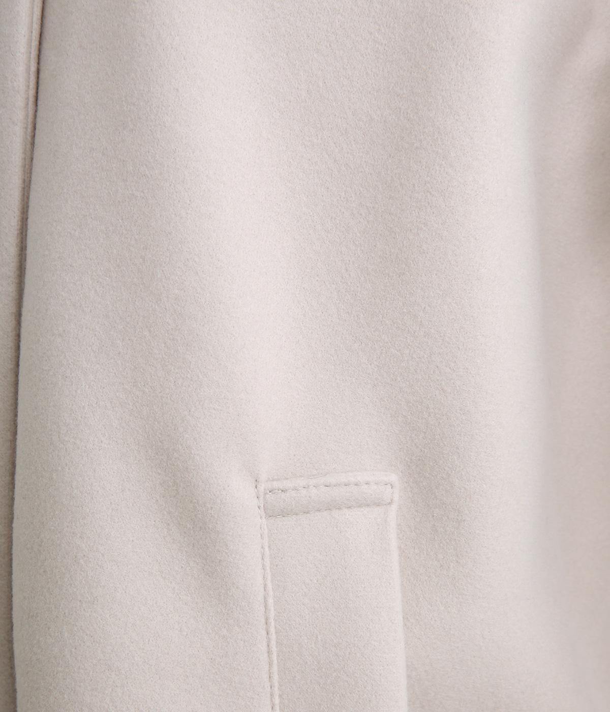 ソフトタッチで繊細な起毛をまとった適度な厚みのあるポリエステル生地を使用。着心地のよさと上品な見た目を両立させました。滑りのよい裏地をつけて、羽織りやすさをアップさせています。