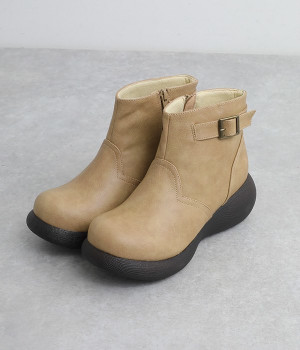サイドにあしらったベルトがアクセントになったエンジニアブーツです。歩きやすさを考慮したソール形状、低反発ウレタンを使用したふわふわなインソールではき心地◎。インソールには抗菌素材を用いたり、アウトソールに滑り止めラバーをつけて歩行をサポートしたりとこだわりを詰めこみました。丸みを帯びたフォルムで窮屈さも感じにくく、サイドジッパーで脱ぎはきも簡単。ボリュームあるソールは見た目以上に軽く、スタイリングバランスも取りやすくさり気なくスタイルアップを叶えてくれます。
