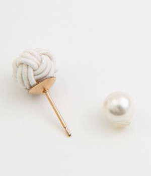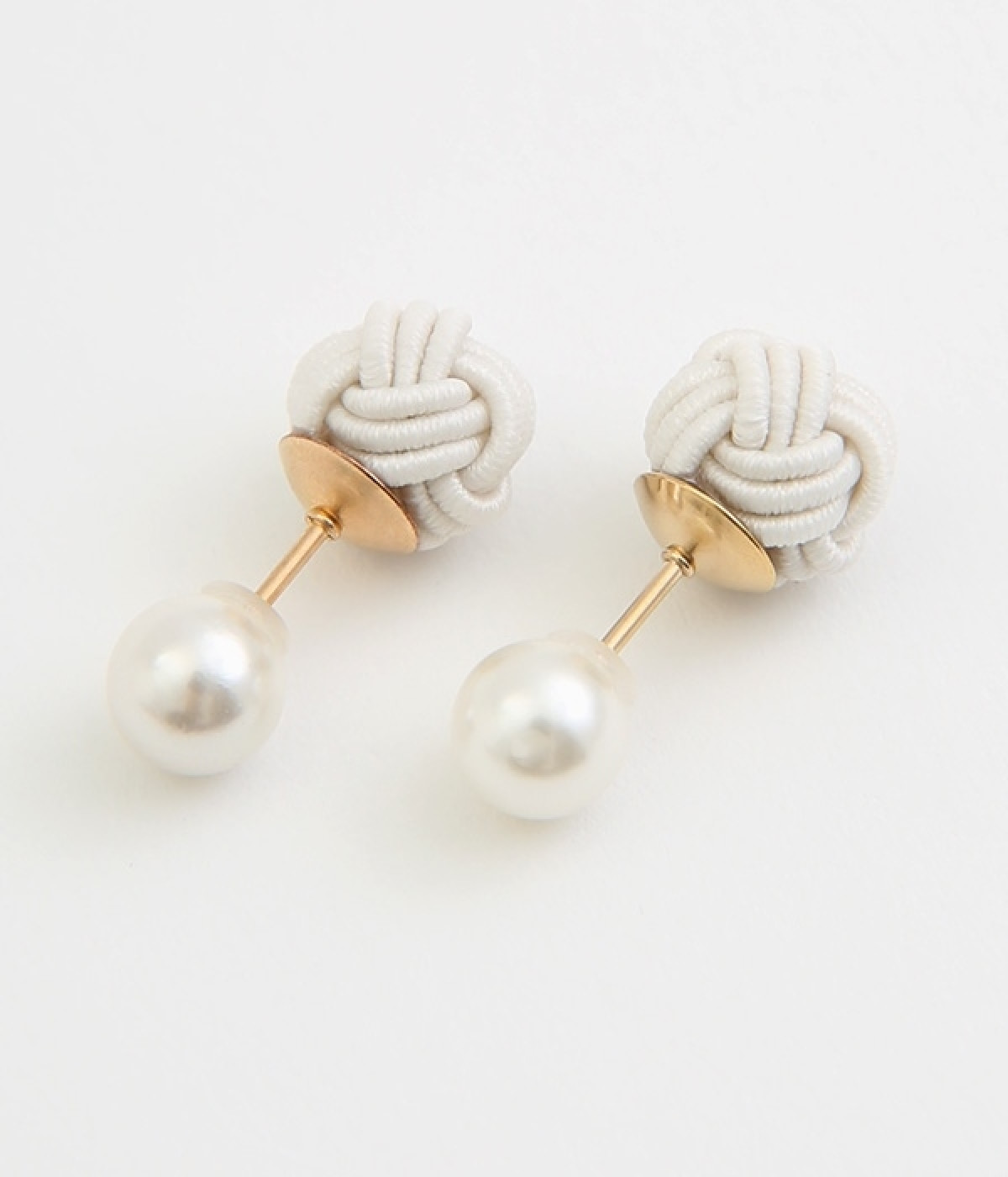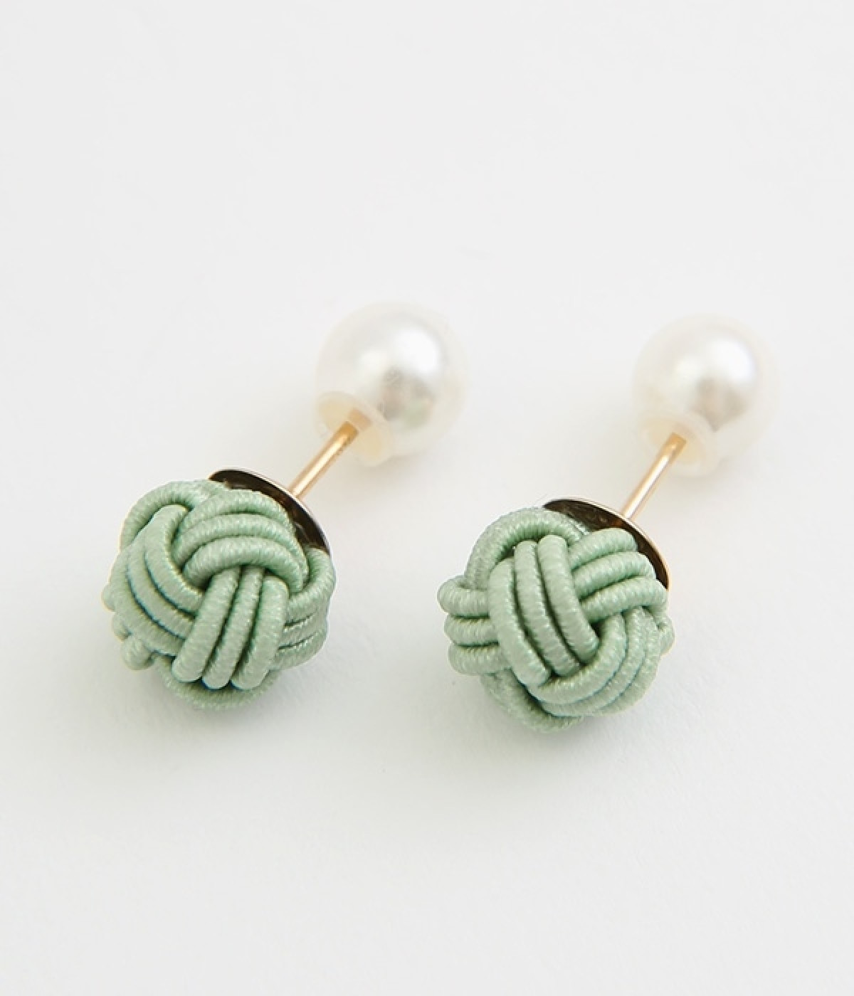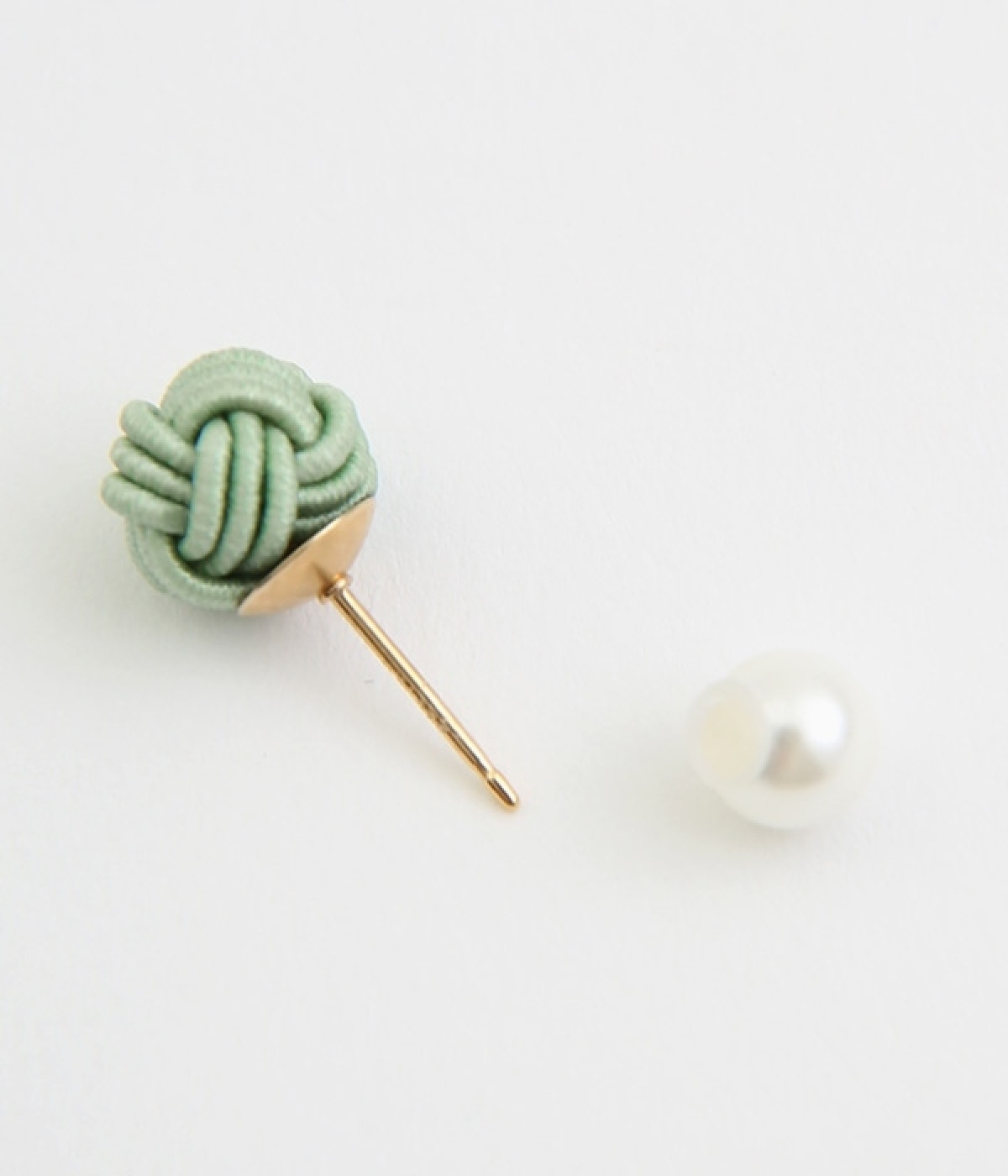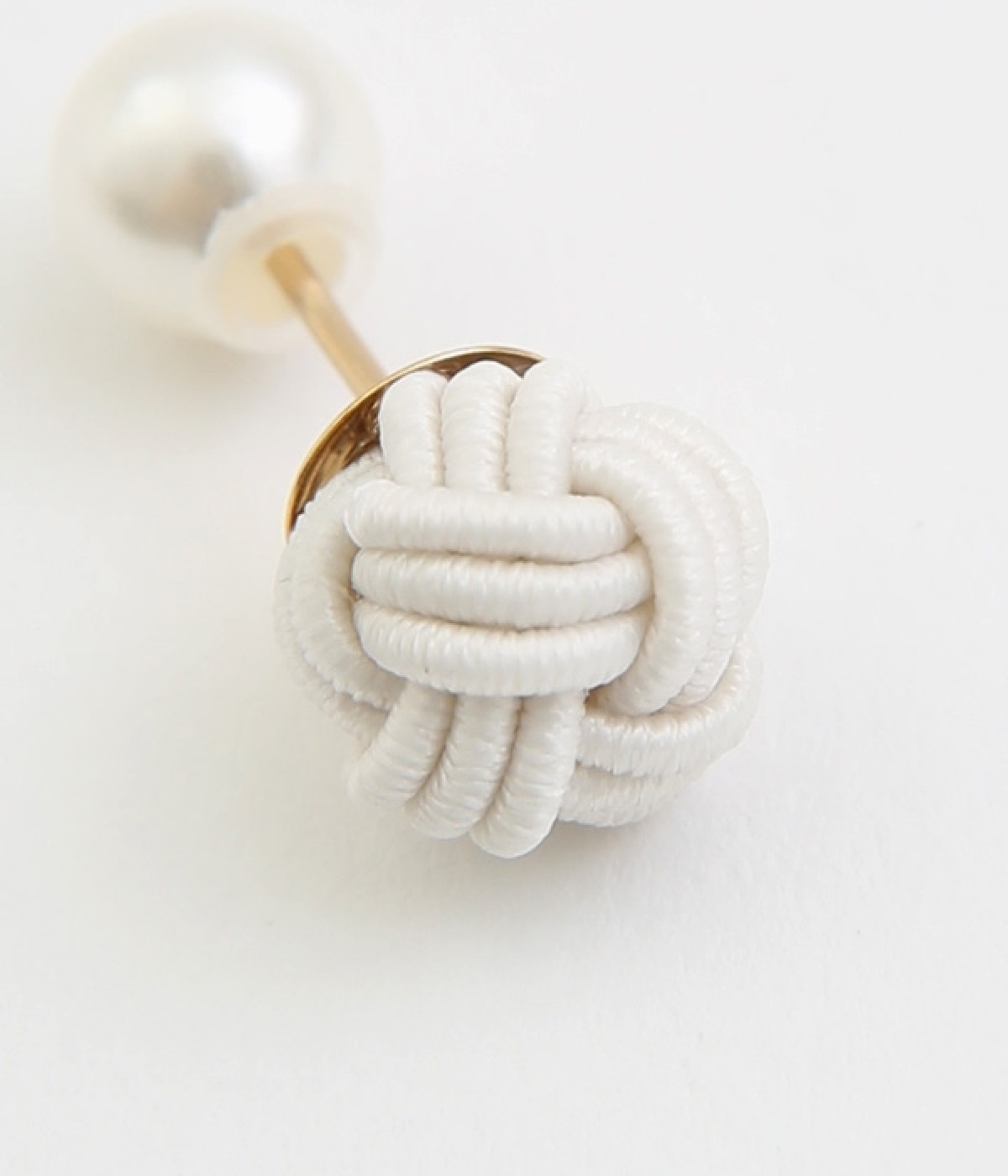 長野県飯田市に伝わる伝統工芸、飯田水引を用いた玉結びのピアス。水引には「人と人との縁を、心と心を結びあう」という意味があり、玉結びには「固く結ばれたままで」という願いが込められています。そんな大切な想いを宿すモチーフにパールを添えて、上品で趣深い一品に作り上げました。小ぶりなサイズ感で普段のスタイルにはもちろん、特別なシーンにもしっくりとなじみます。