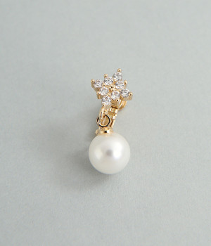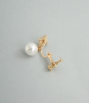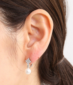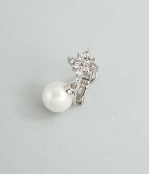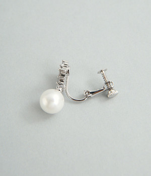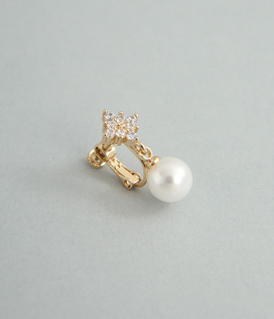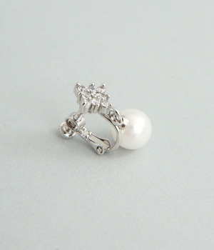 お花のようなひし形ストーンに8mmパールがぶら下がったイヤリングです。華奢な金具が上品かつ可愛らしさも感じさせる大人なデザイン。お呼ばれスタイルはもちろん、デイリースタイルにも合わせやすく、華やかさを添えてくれます。調節可能なネジバネ式は着脱しやすく、お肌に優しいニッケルフリーメッキ素材もうれしいポイントです。
