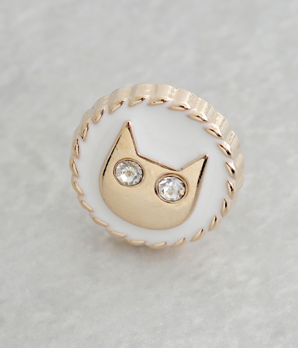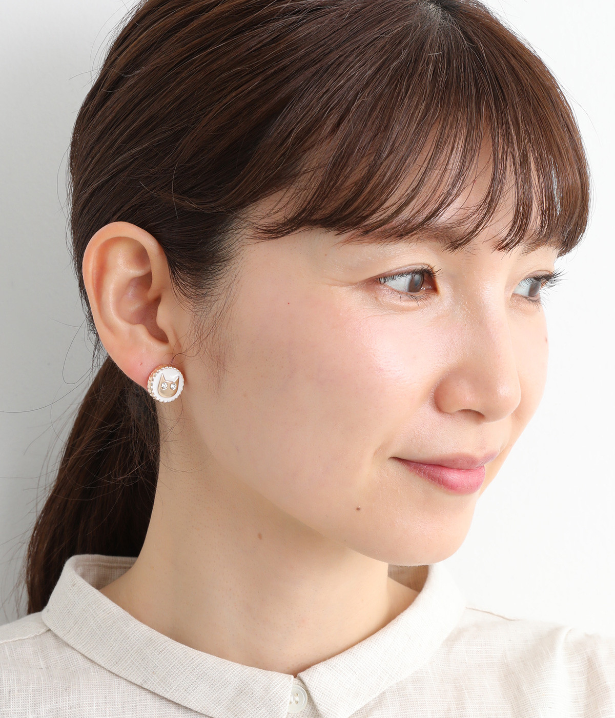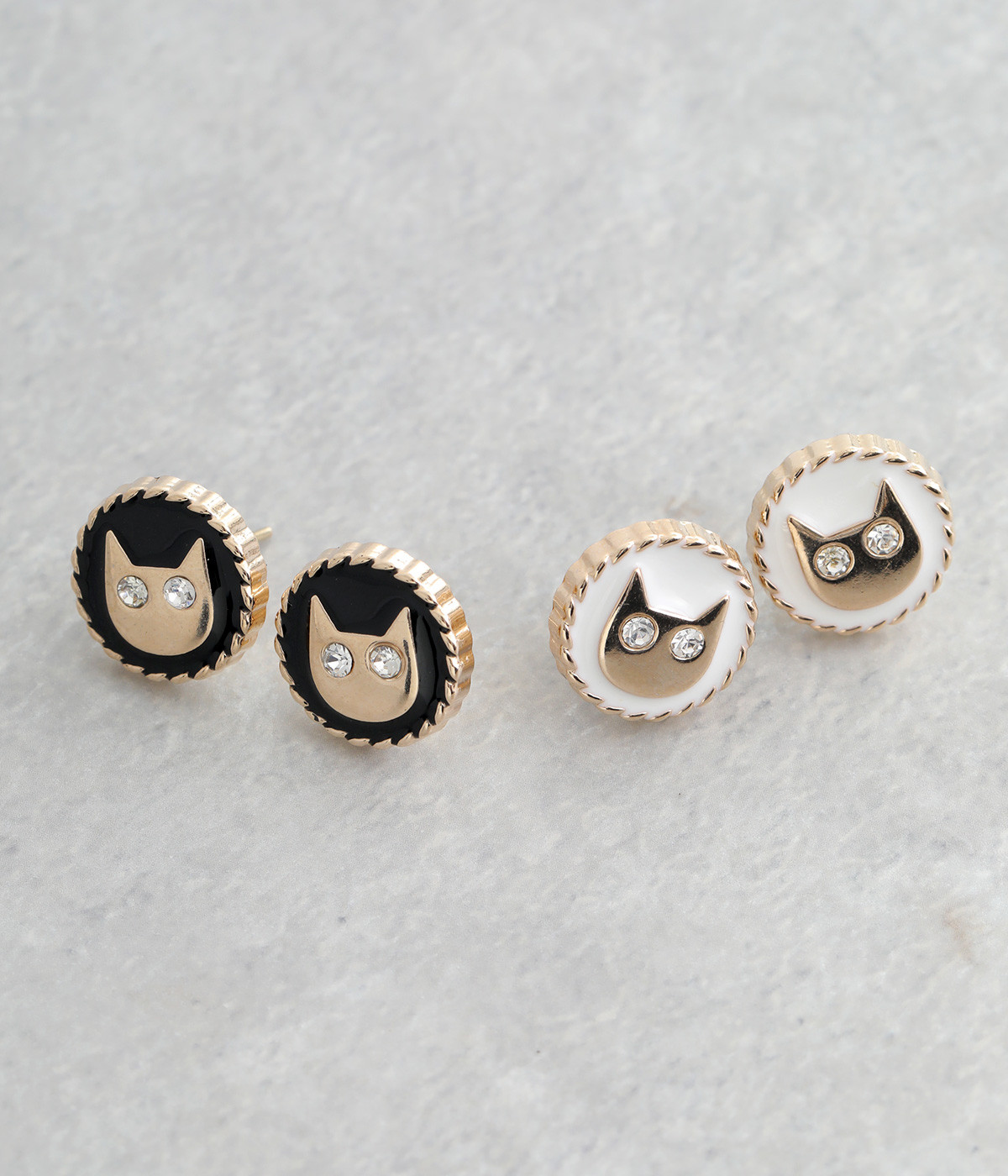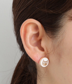 ストーンでできたネコの目がキラキラと輝いてアクセントになるピアスです。落ち着きのあるシックな色使いがアンティークな雰囲気。大きすぎないサイジングでかわいくなりすぎず、大人のコーディネートになじみます。