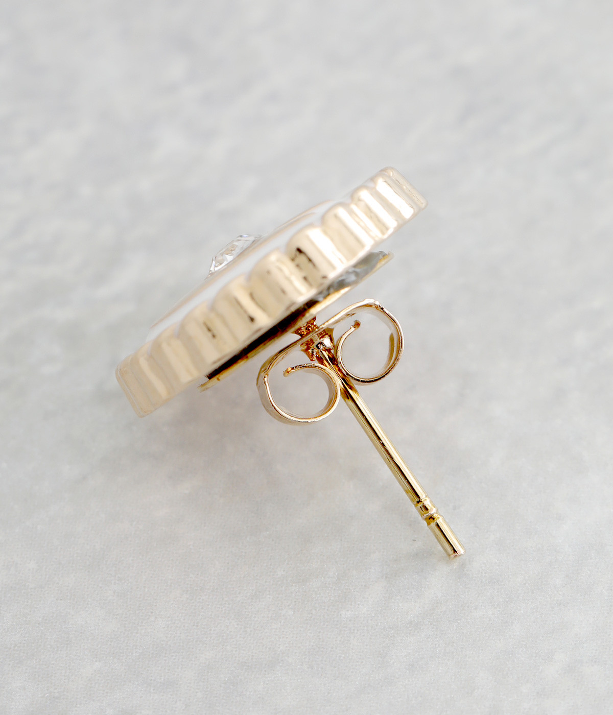 上品な輝きを放つ、メタルカラーをベースにしています。ポスト部分はさびにくく、比較的アレルギーを起こしにくいステンレスを使用。