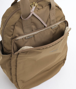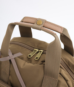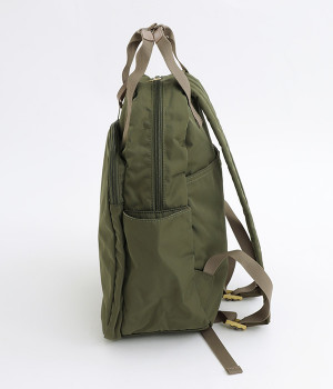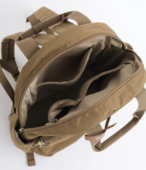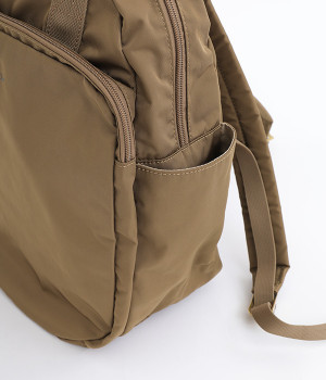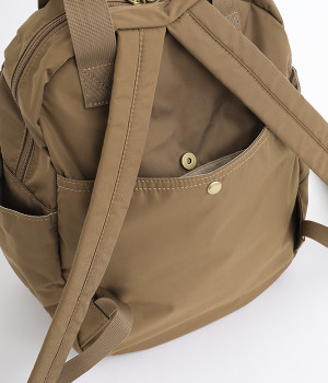 丸みを帯びたシルエットでオンオフ問わずに使いやすいリュックサック。しっかりとした手触りで微光沢のある上品なポリエステルツイル生地を使用しました。正面と左右だけでなく、背面にも深さのあるポケットを配置。A4がぴったり収まるやや小ぶりのサイズ感ですが、内外ポケットを充実させることで収納力をアップさせています。落ち着いた大人っぽいカラー展開もうれしいポイントです。