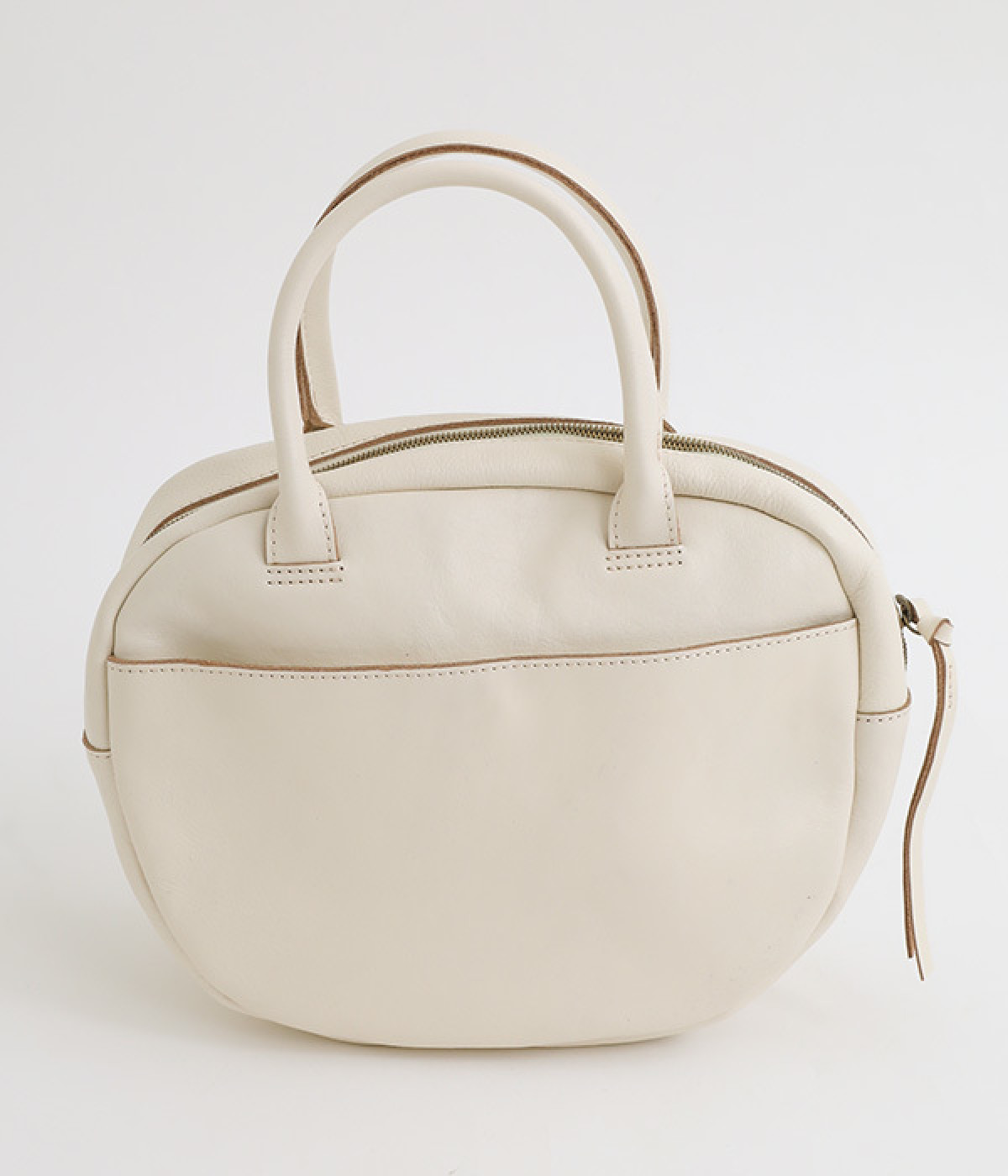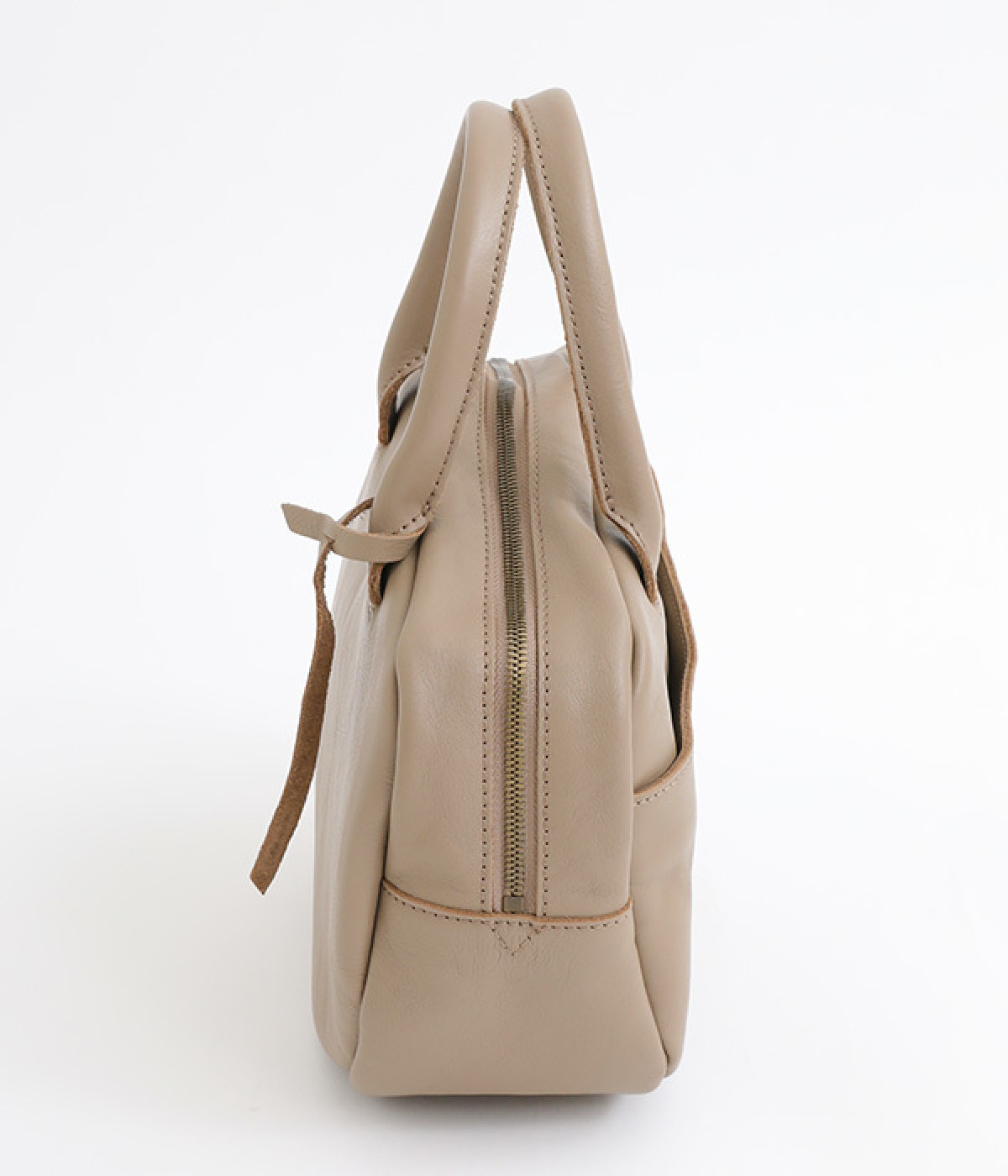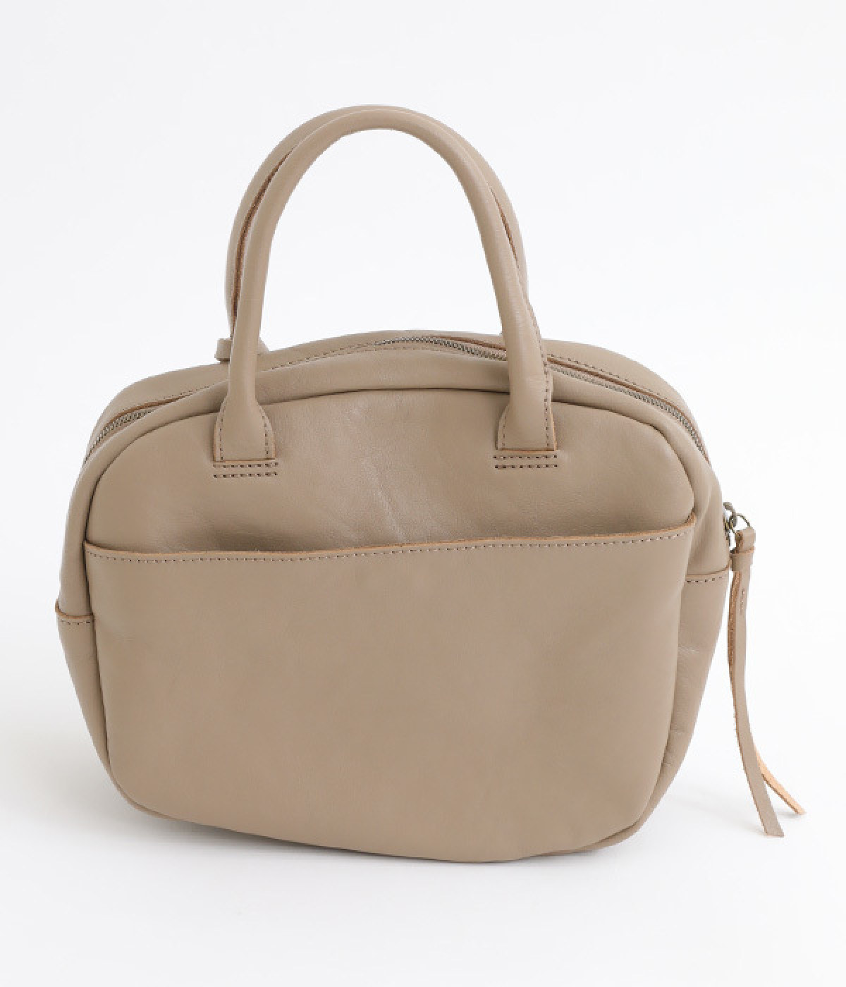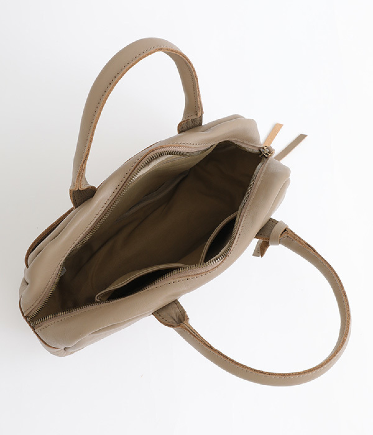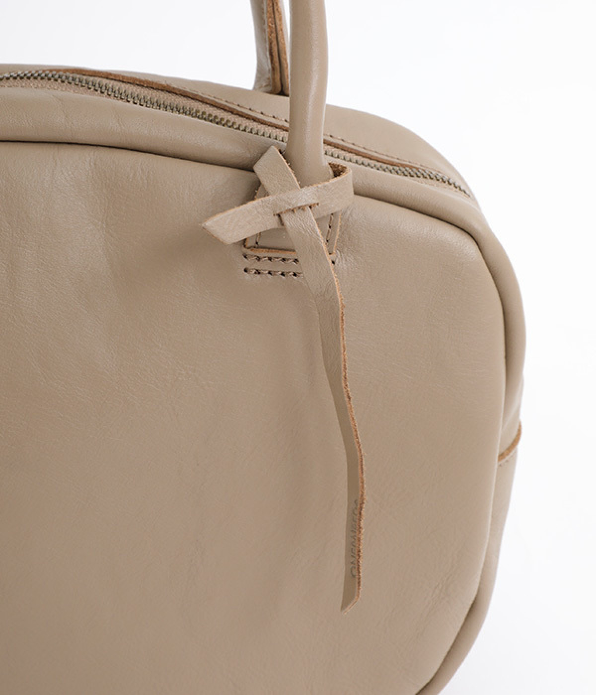 長めのレザー引手を添え、ファスナーの開閉がスムーズ
