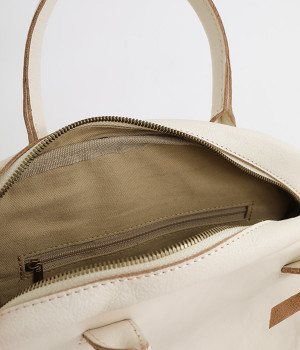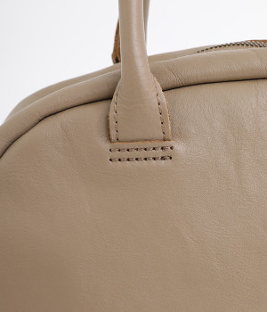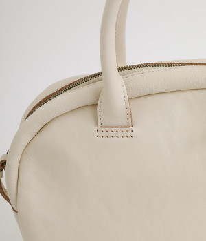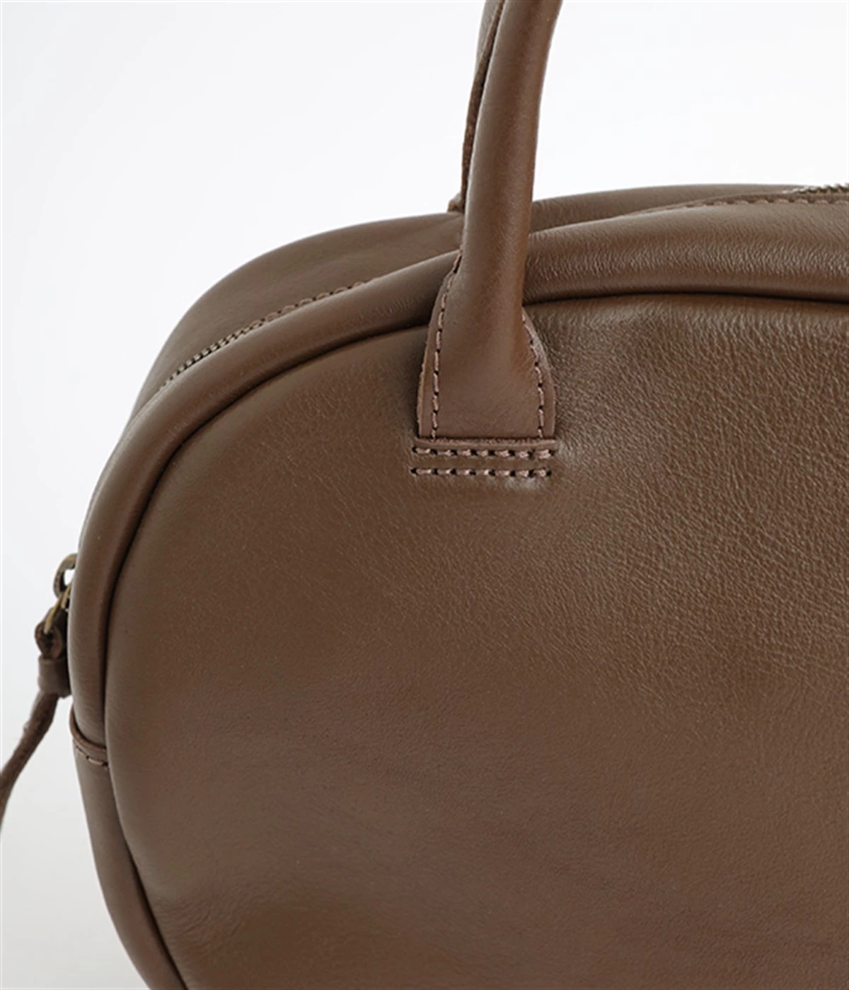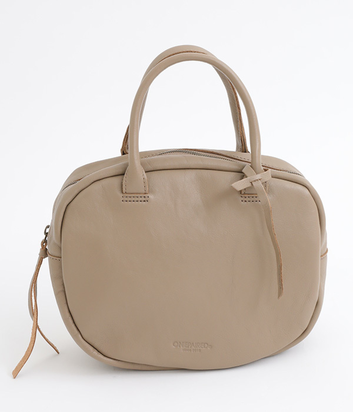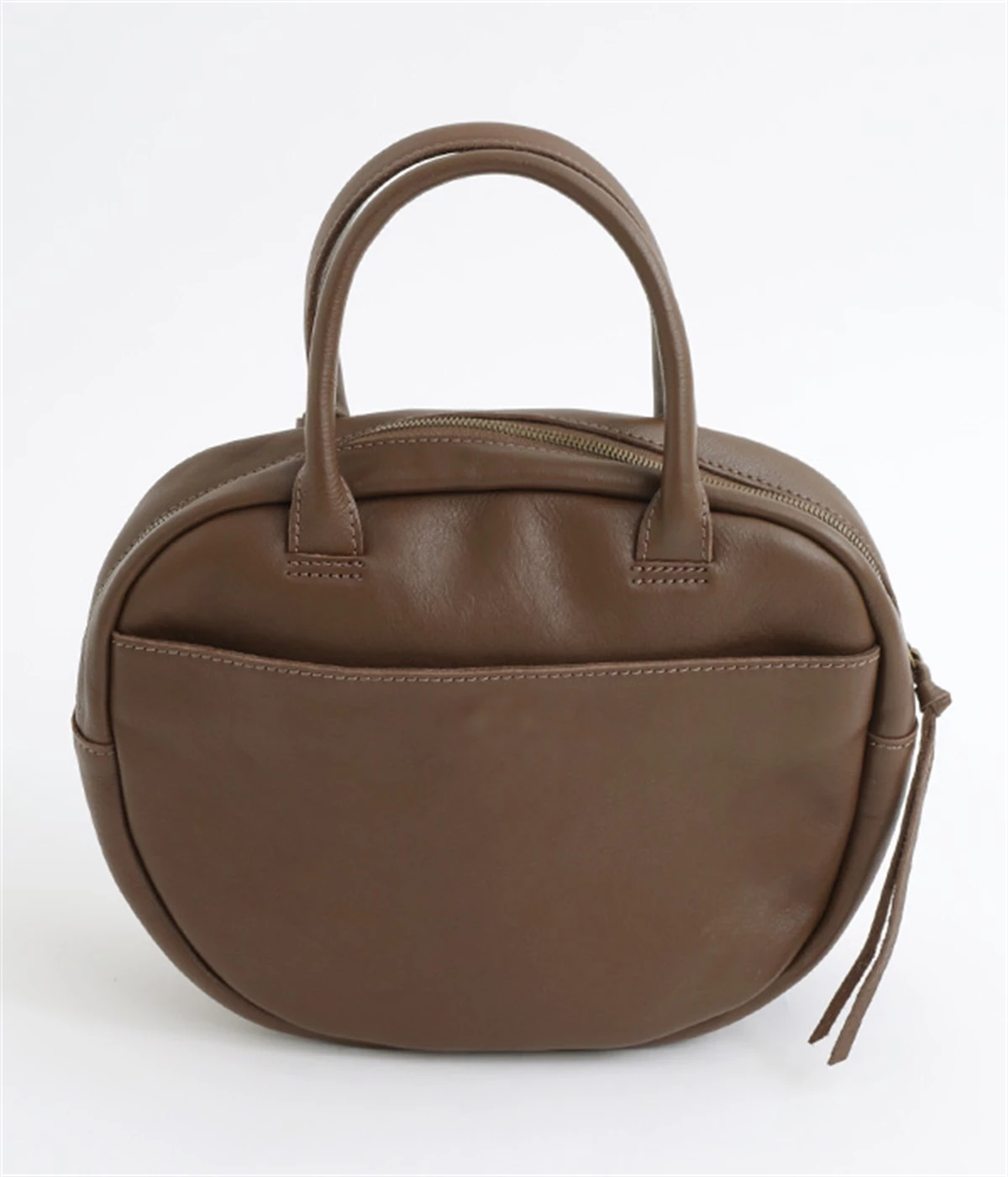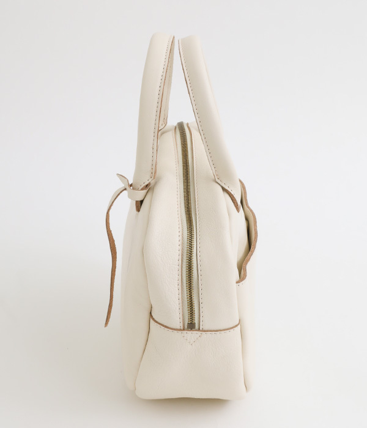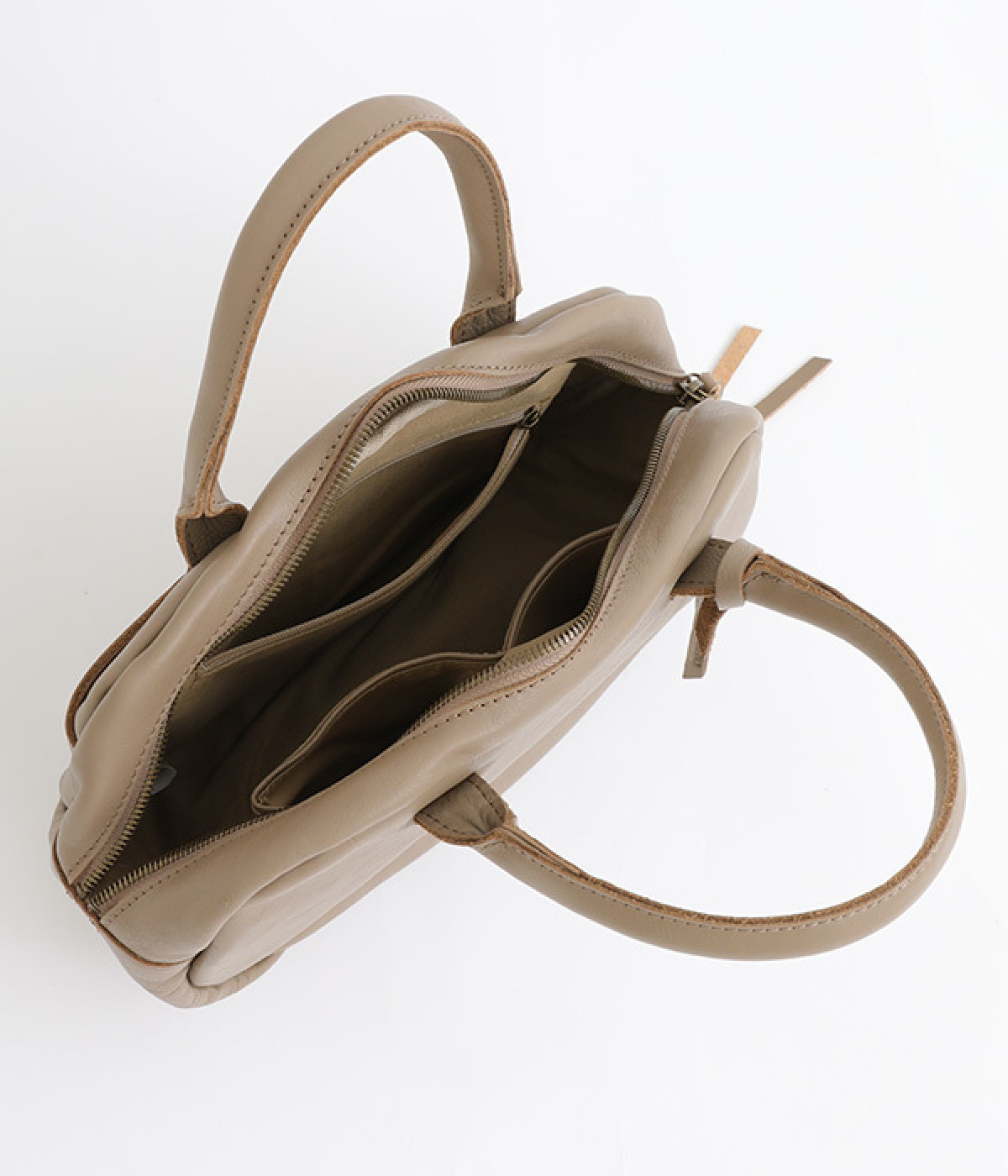 長めのレザー引手を添え、ファスナーの開閉がスムーズ