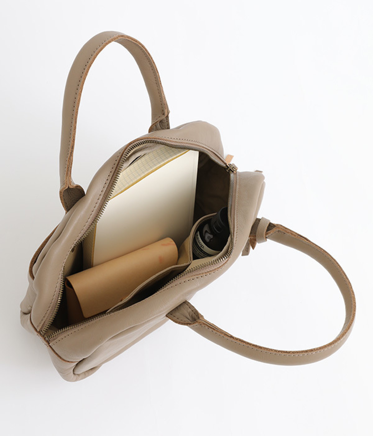 底マチを設け、必需品が十分に収まるサイズ