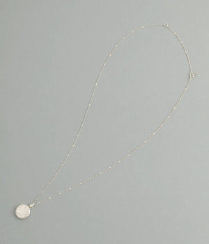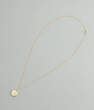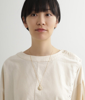 花彫りされたヨーロッパのヴィンテージロケットチャームを型取りした、メダルモチーフのネックレスです。モチーフのイメージに合わせてダイヤカットされた小さなメタルをあしらったステーションチェーンを使用。カジュアルにもナチュラルにもなじみ、デイリースタイルに合わせやすいアイテムです。