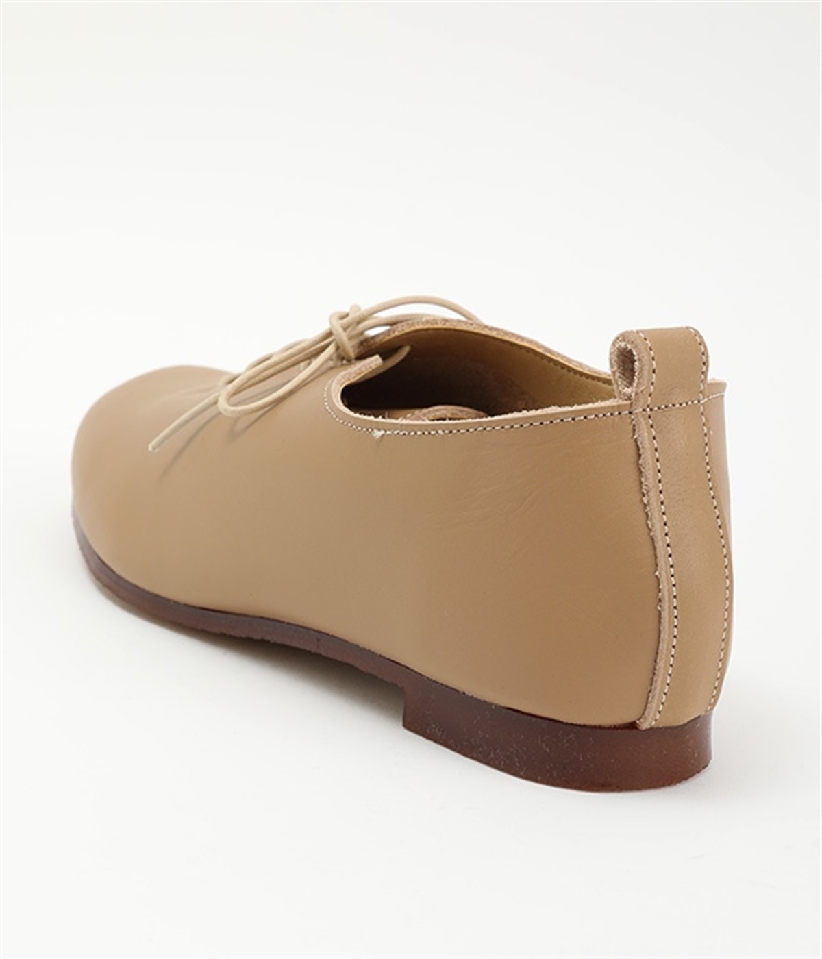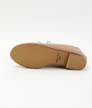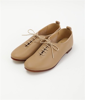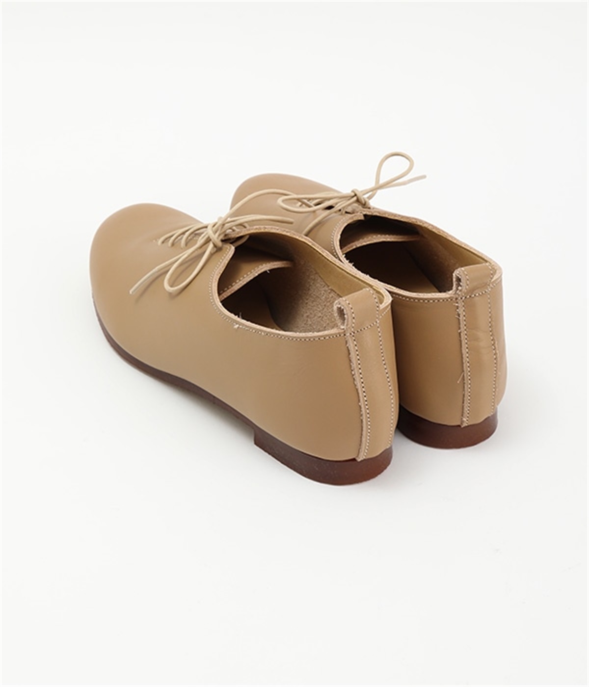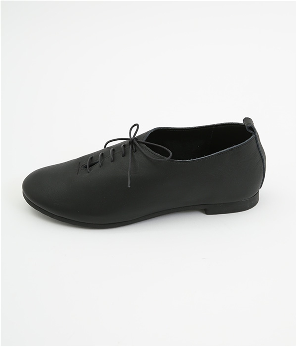 革一枚仕立てのフラットなデザインが魅力のレースアップシューズです。コーディネートを引き立てるベーシックなデザイン&色がポイント。季節を問わず使いやすく、足元が品よく決まります。靴紐は細めのものをセレクトして女性らしい華奢な印象に。中敷きはふかふかと厚さもあり、歩きやすさも抜群。丈夫で軽い日本製の部品を使用しています。