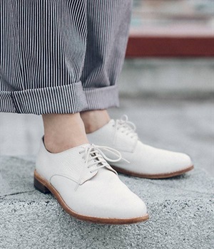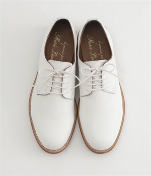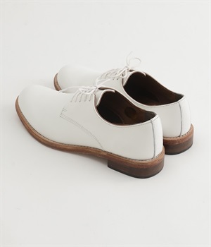アッパーにしっかりとした上質な牛革を使用したレースアップシューズ。アウトソールにもレザーを使い、通気性に優れた快適なはき心地を実現しました。定番使いできるシンプルでミニマムなデザインが魅力で、合わせるコーディネートを選ばず重宝しそう。はき続けるほどに柔らかく足になじむので、長くはいて自分なりの一足に仕上げたいアイテムです。