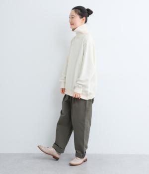 適度にボリュームを持たせながらも、タテラインを意識した脇切り替えのサイドパネルですっきりまとめました。タートルネックが首元までしっかりあたため、リブ仕様なので被りやすくなっています。ヒップにかかるロング丈もポイント。