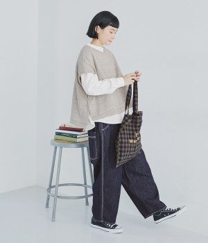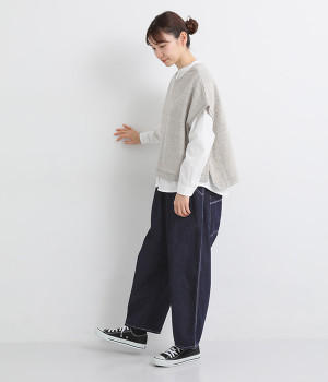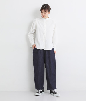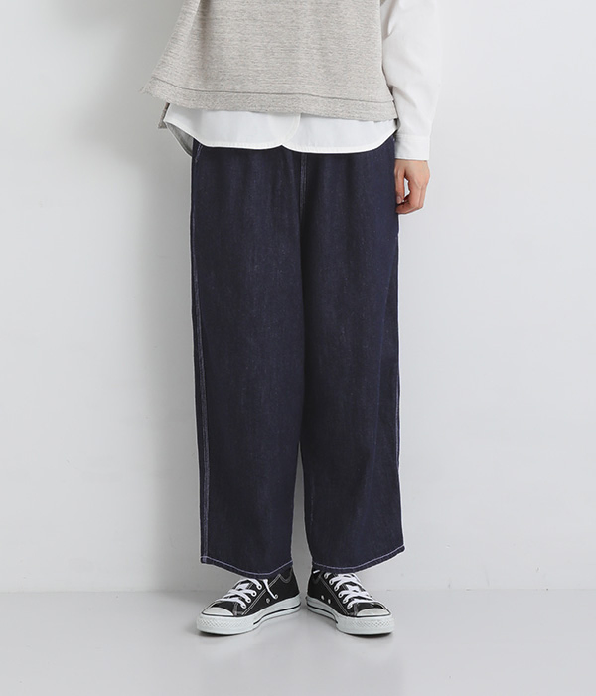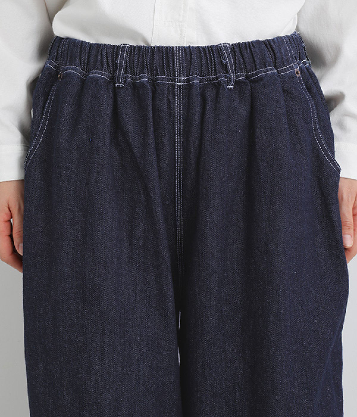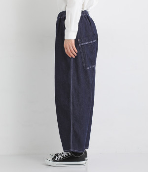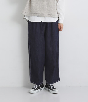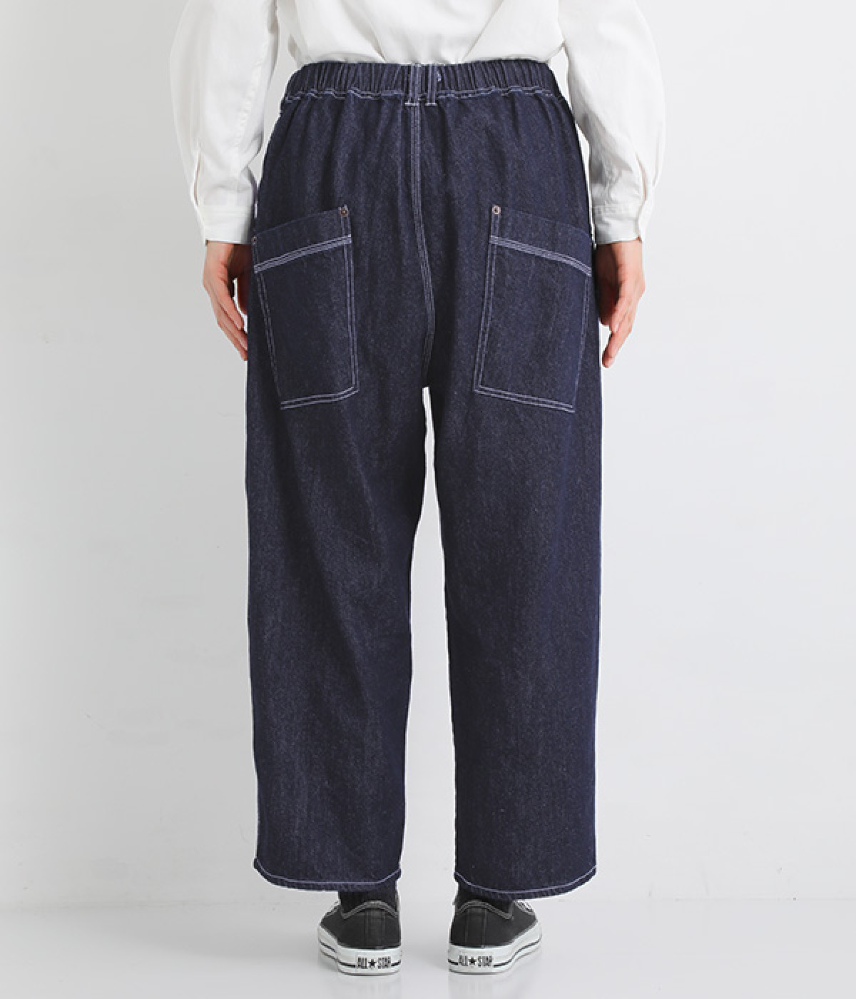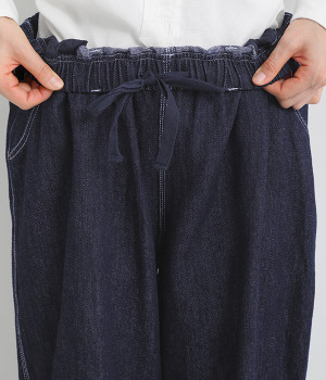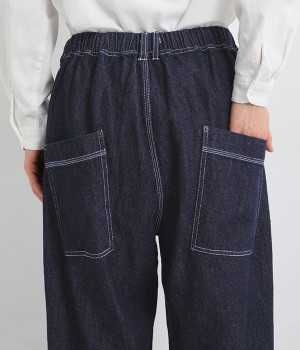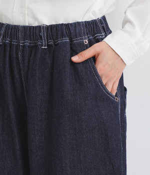コットンリネンデニム バックポケットマオパンツ(ダークインディゴ-ONESIZE)