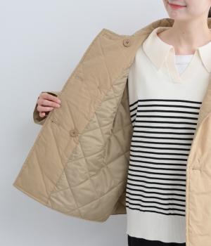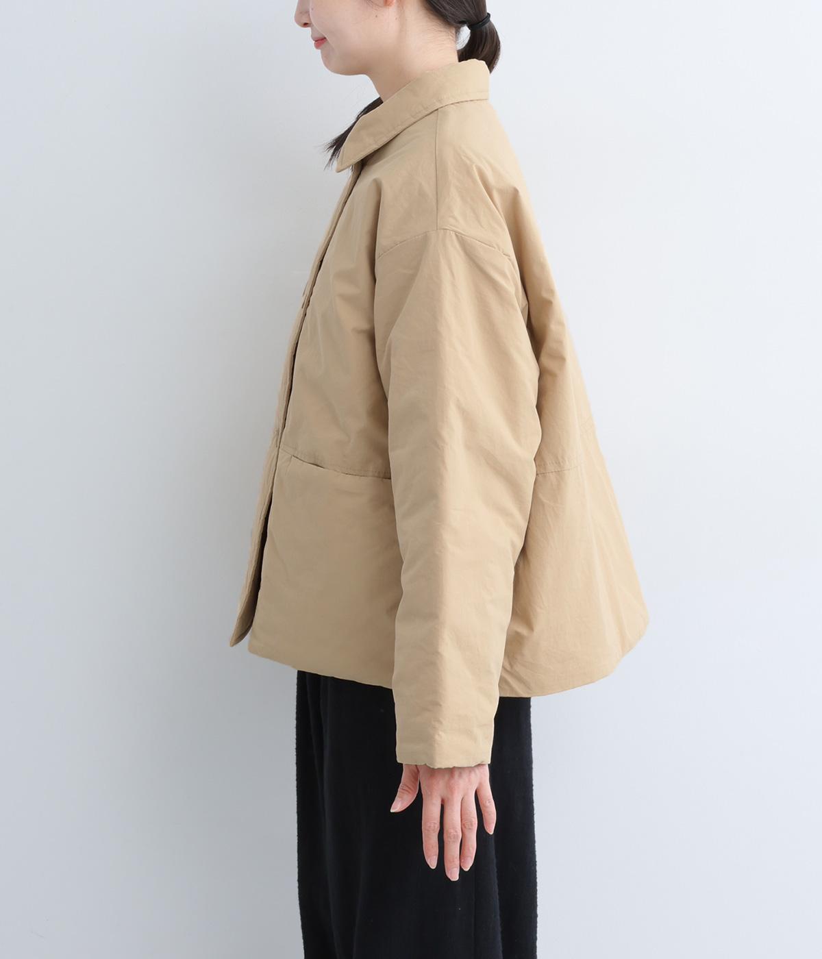 さらりとしたマットな質感で上品なムードを醸すコットン生地を使用しています。裏地には滑らかなポリエステルを使用し、軽くて保温性の高い中綿を入れました。