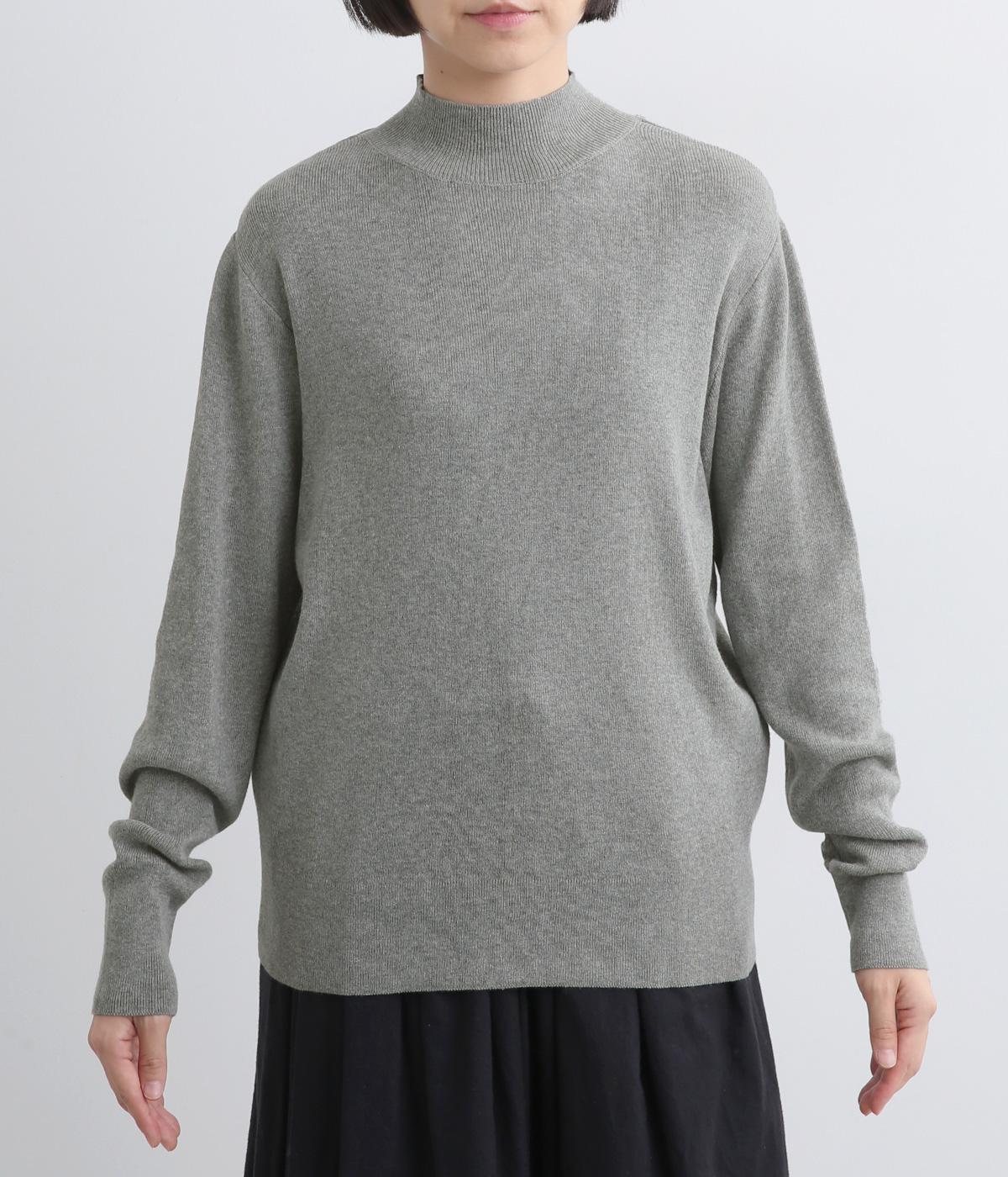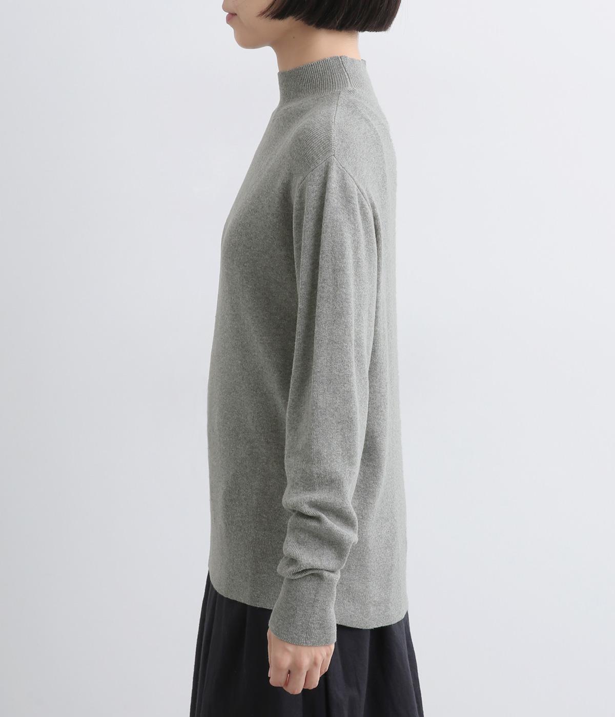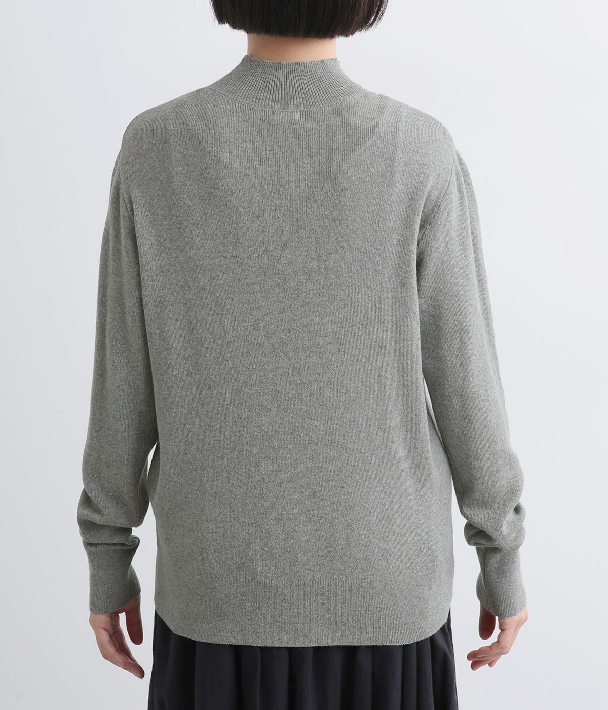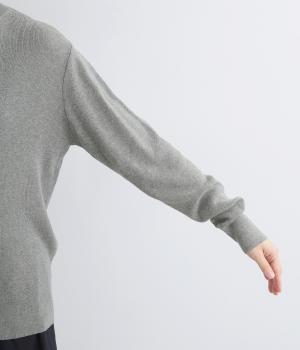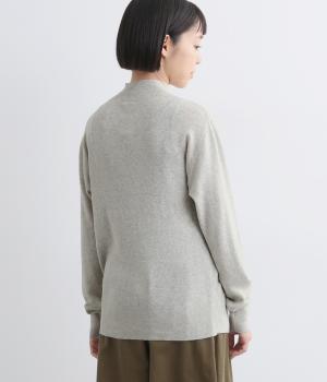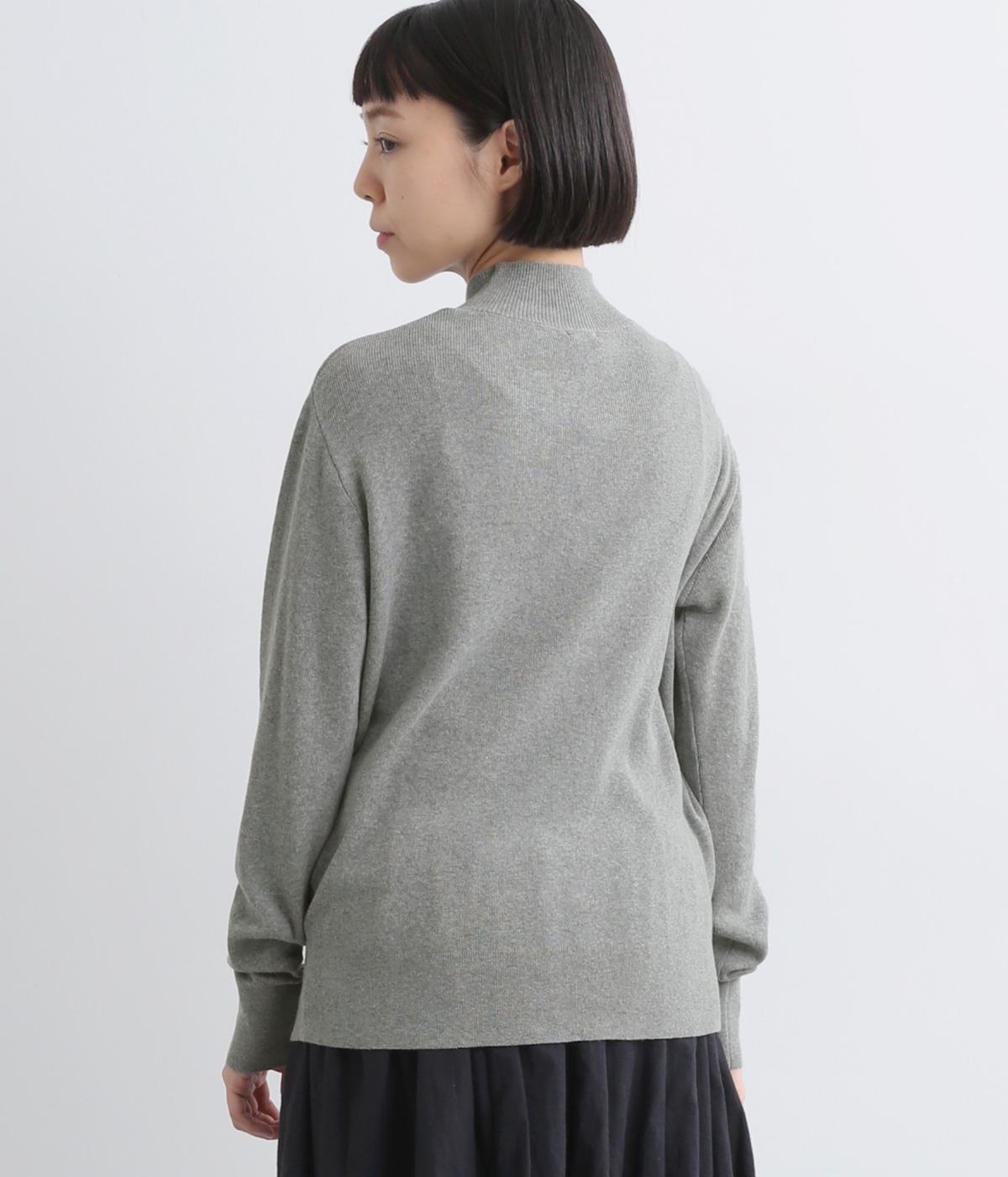 体にやさしくフィットする伸縮性抜群なプルオーバーは、着丈や袖丈をやや長めにしてニュアンスを持たせました。首元はすっきりとしたハイネックでスウェットなどのインナー使いにも◎。着まわし力が高く一枚持っていると重宝します。