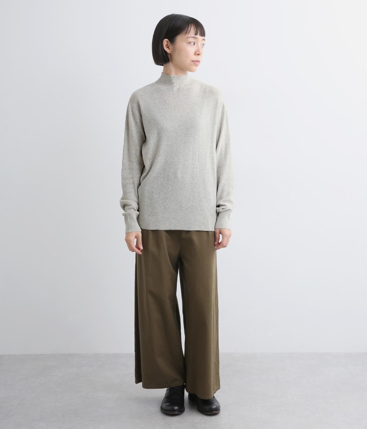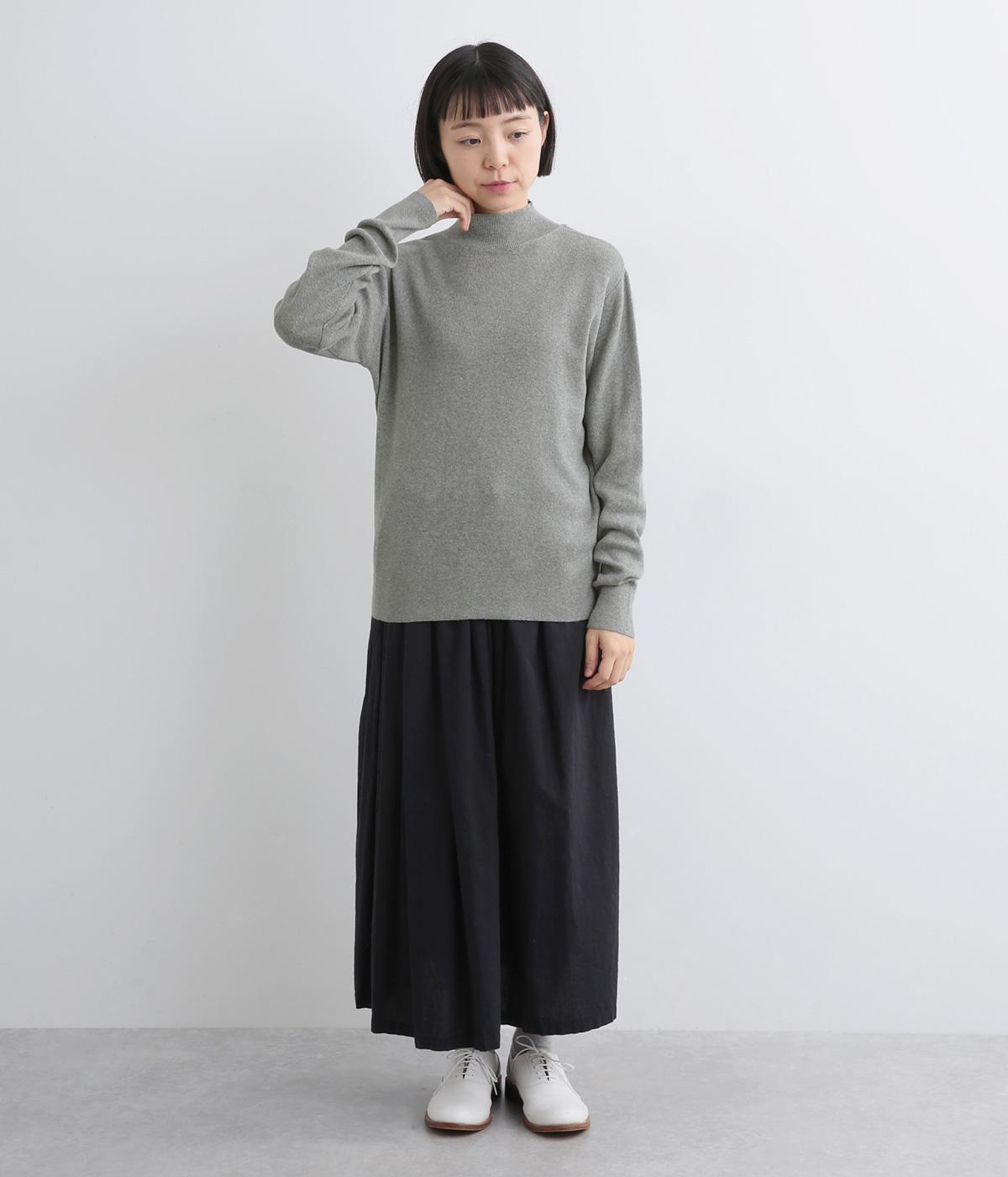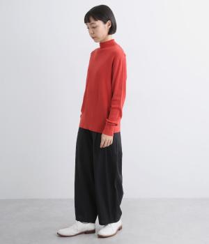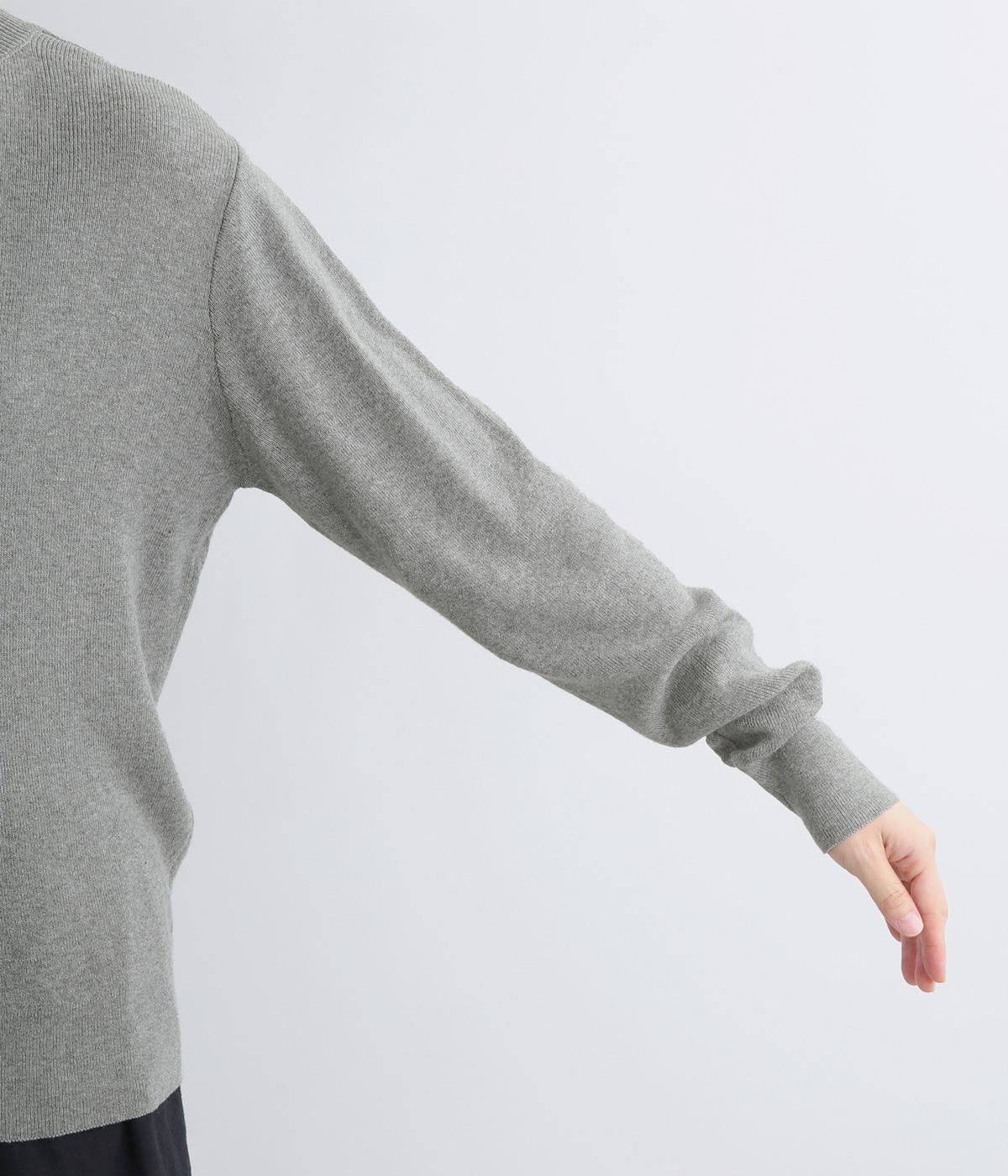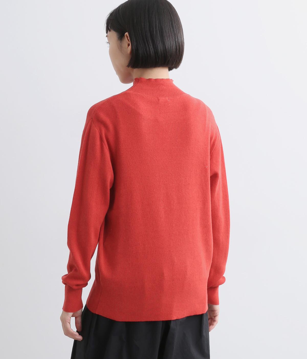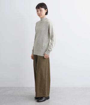 体にやさしくフィットする伸縮性抜群なプルオーバーは、着丈や袖丈をやや長めにしてニュアンスを持たせました。首元はすっきりとしたハイネックでスウェットなどのインナー使いにも◎。着まわし力が高く一枚持っていると重宝します。