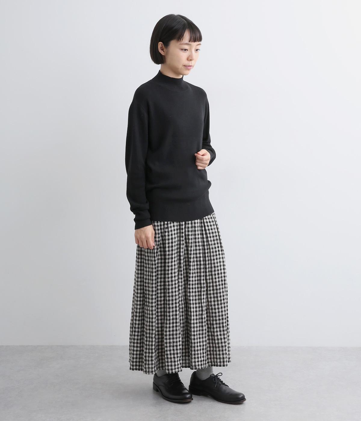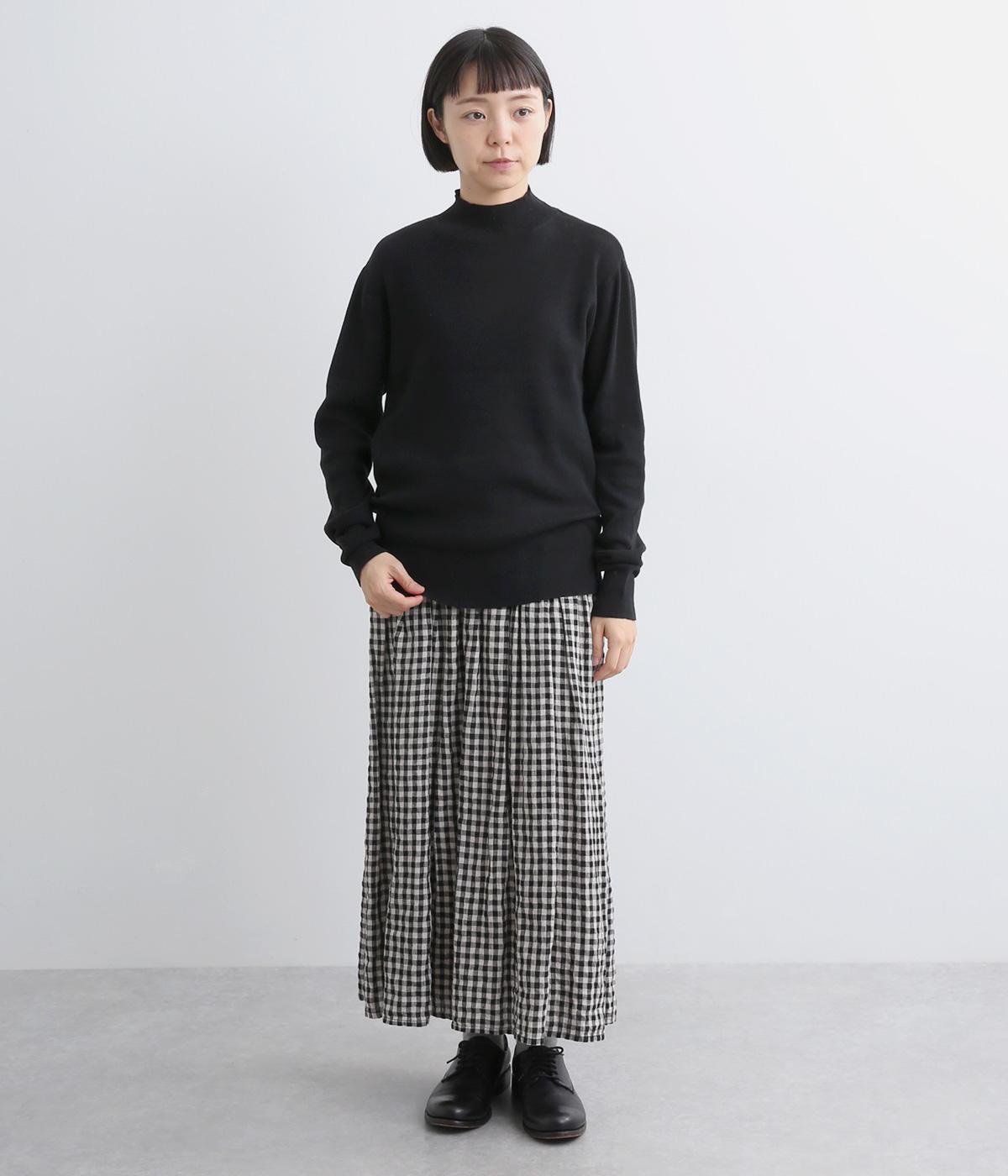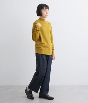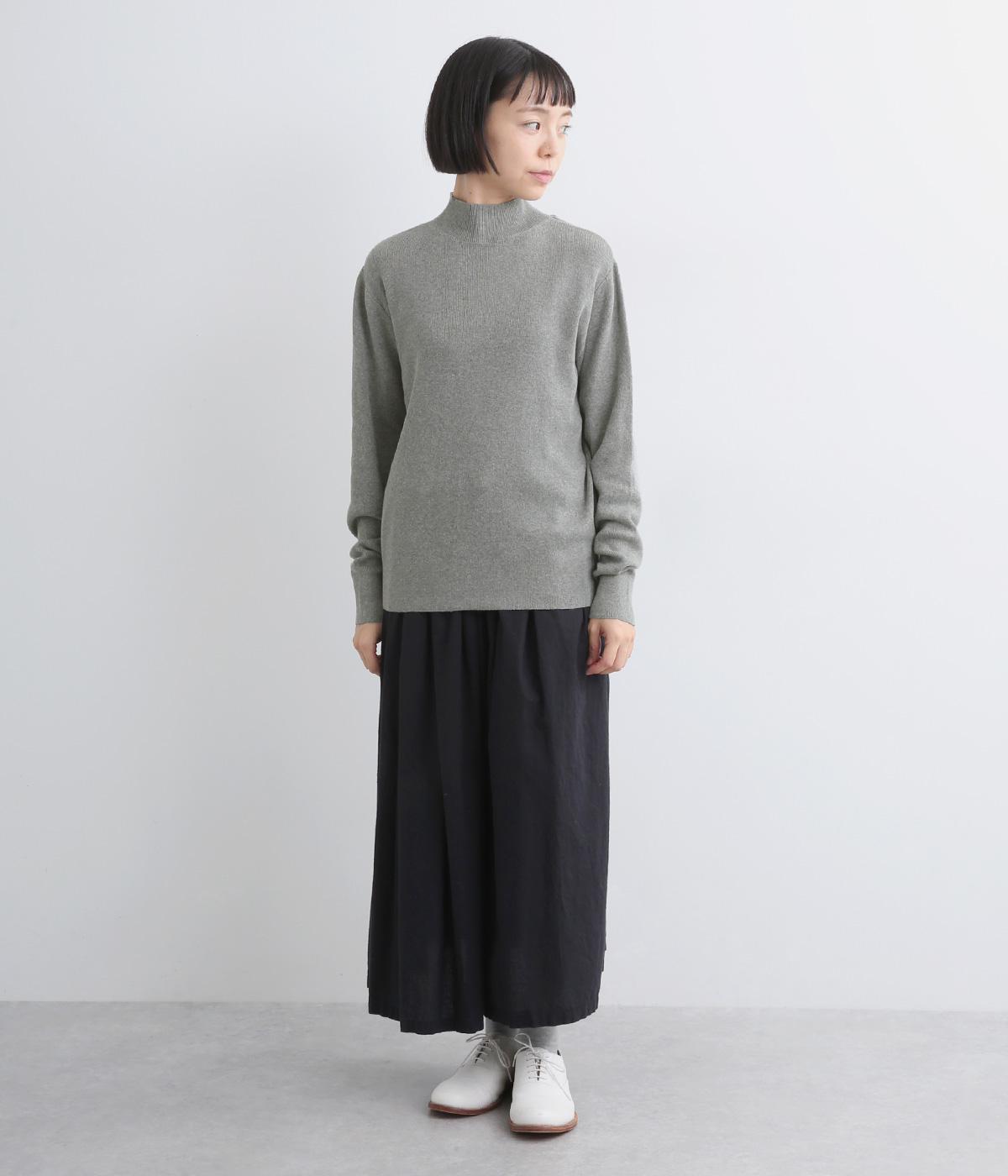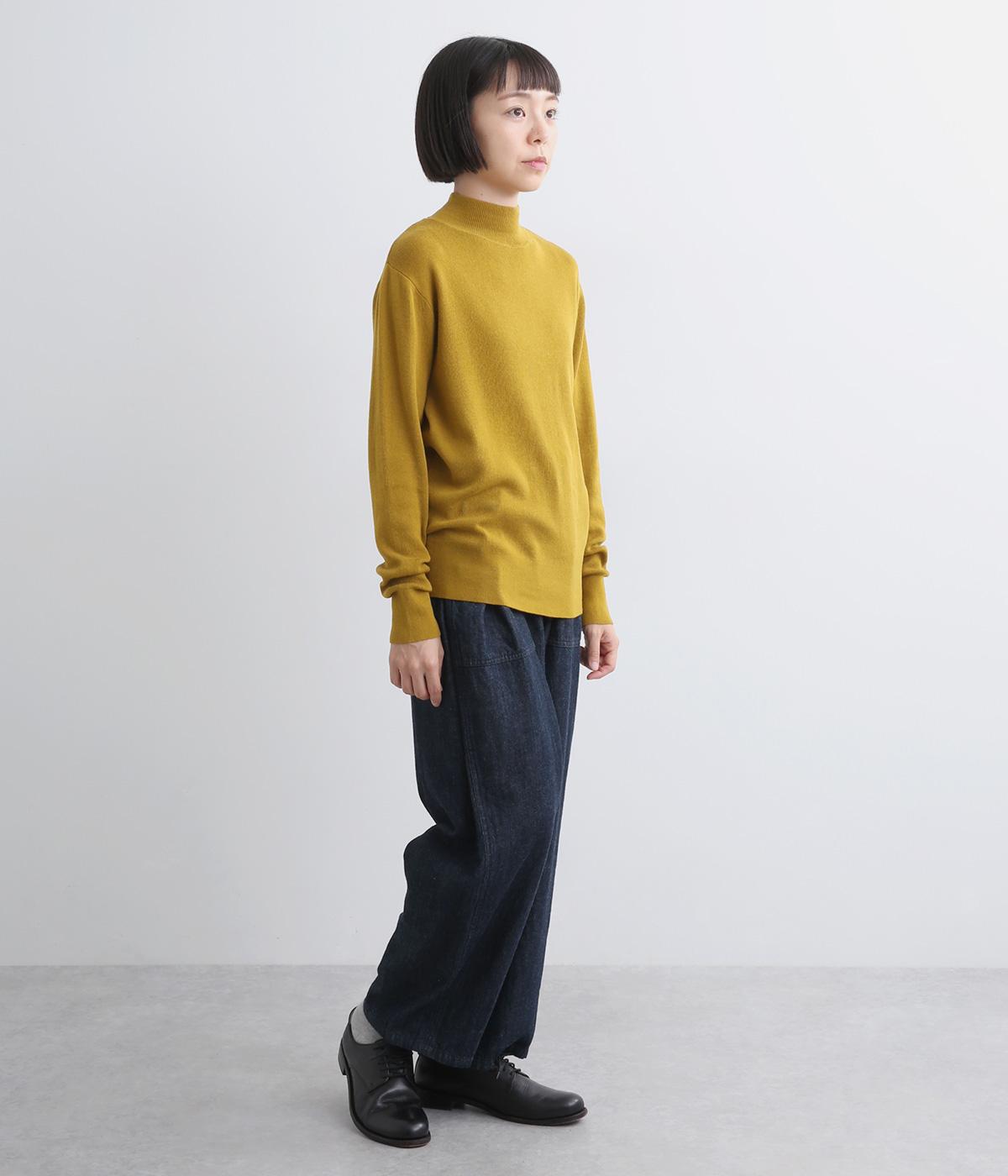 体にやさしくフィットする伸縮性抜群なプルオーバーは、着丈や袖丈をやや長めにしてニュアンスを持たせました。首元はすっきりとしたハイネックでスウェットなどのインナー使いにも◎。着まわし力が高く一枚持っていると重宝します。