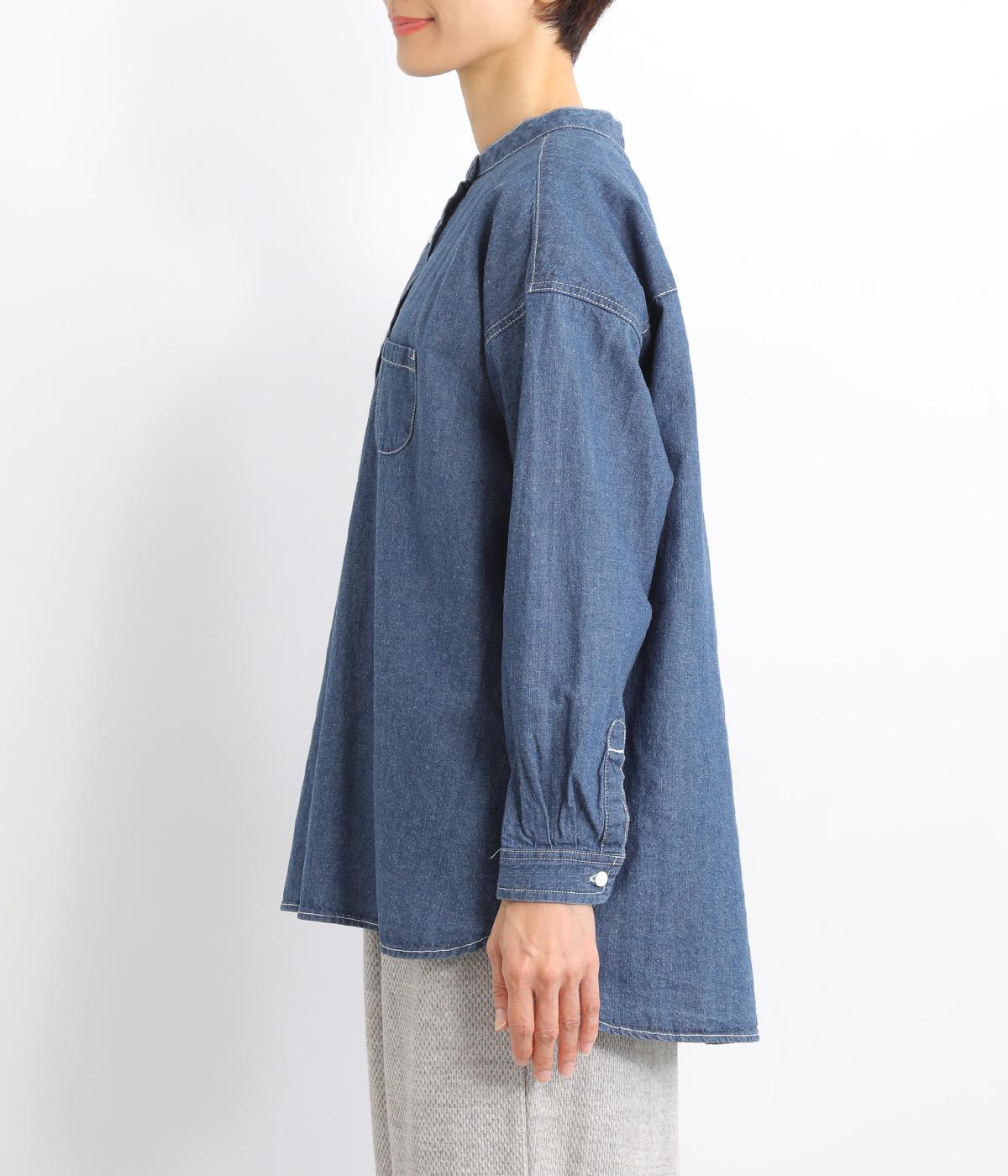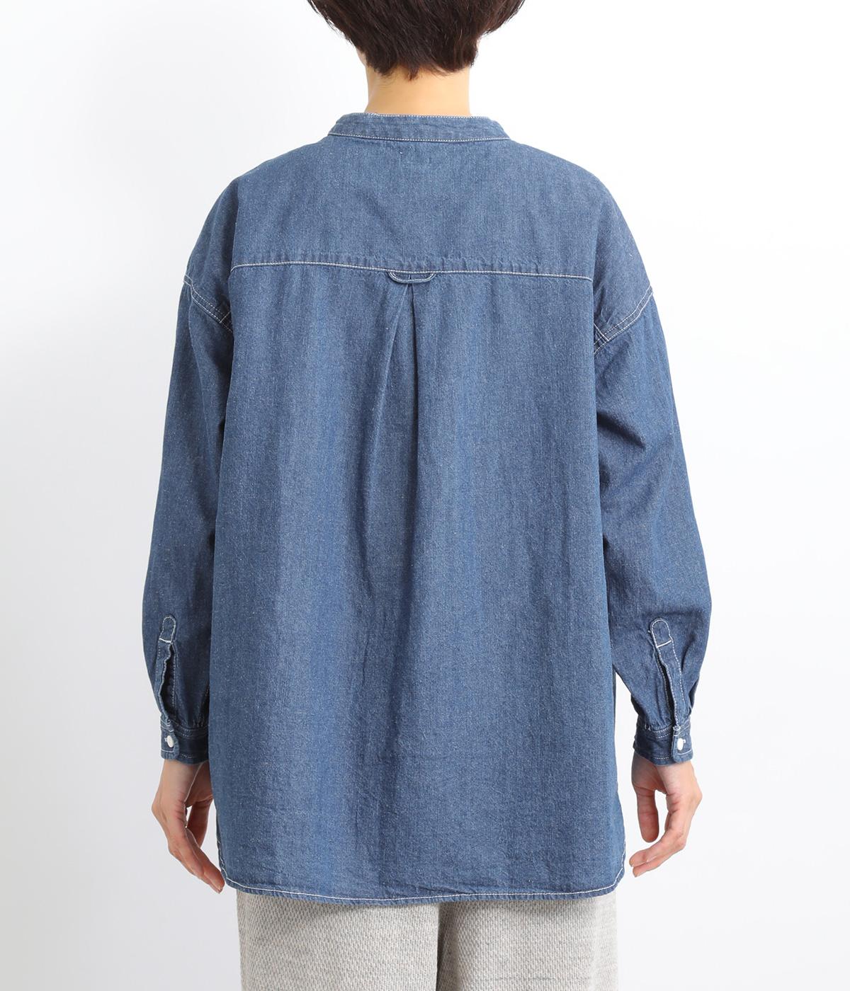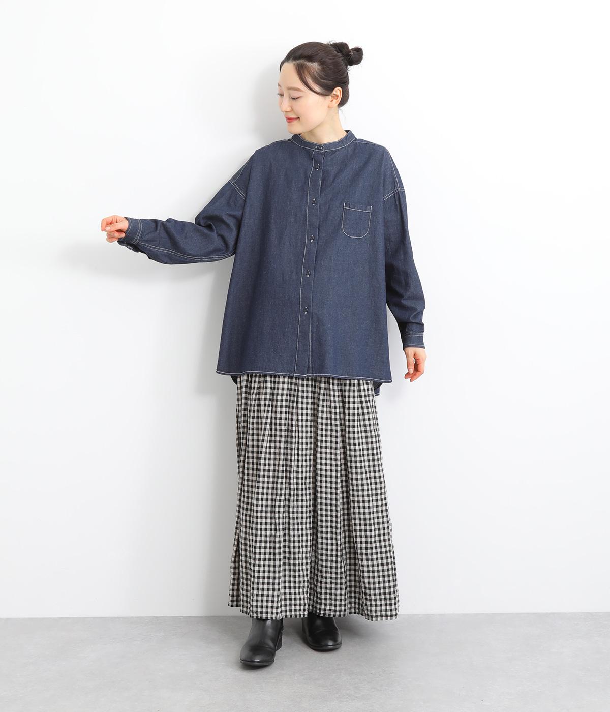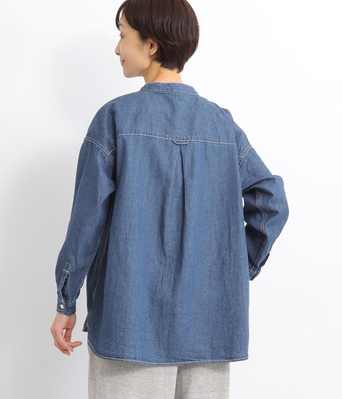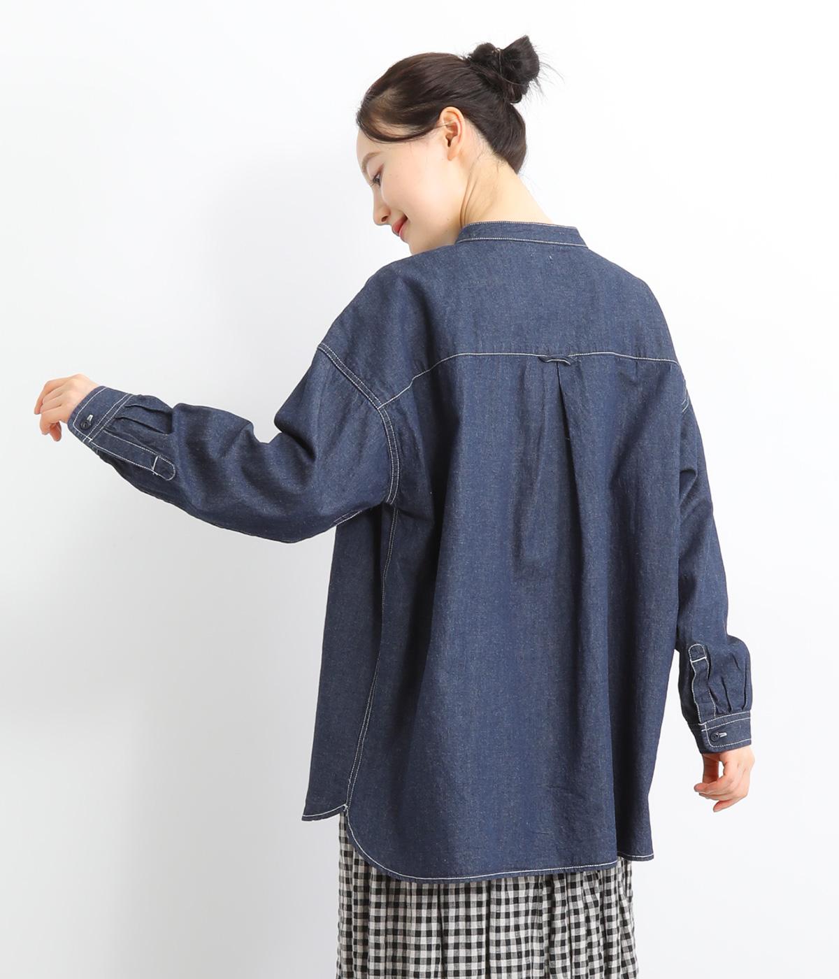 気になる腰まわりをカバーしつつ、パンツやレギンスとの相性も抜群なチュニック丈のデニムシャツ。白いステッチワークがカジュアルなムードを加速させます。左胸の丸みを帯びた小さなポケットが愛らしいポイントに。羽織りとしても活躍する便利なアイテムです。