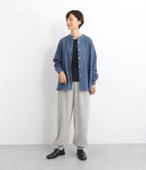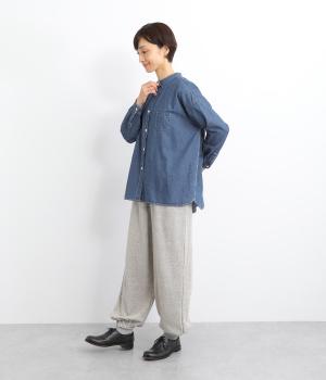 通気性が良く、軽やかな着心地を叶えるコットンとリネンのブレンド素材。適度なハリとやわらかさを両立したデニム生地は、着るほどに風合いが増していくのも魅力です。