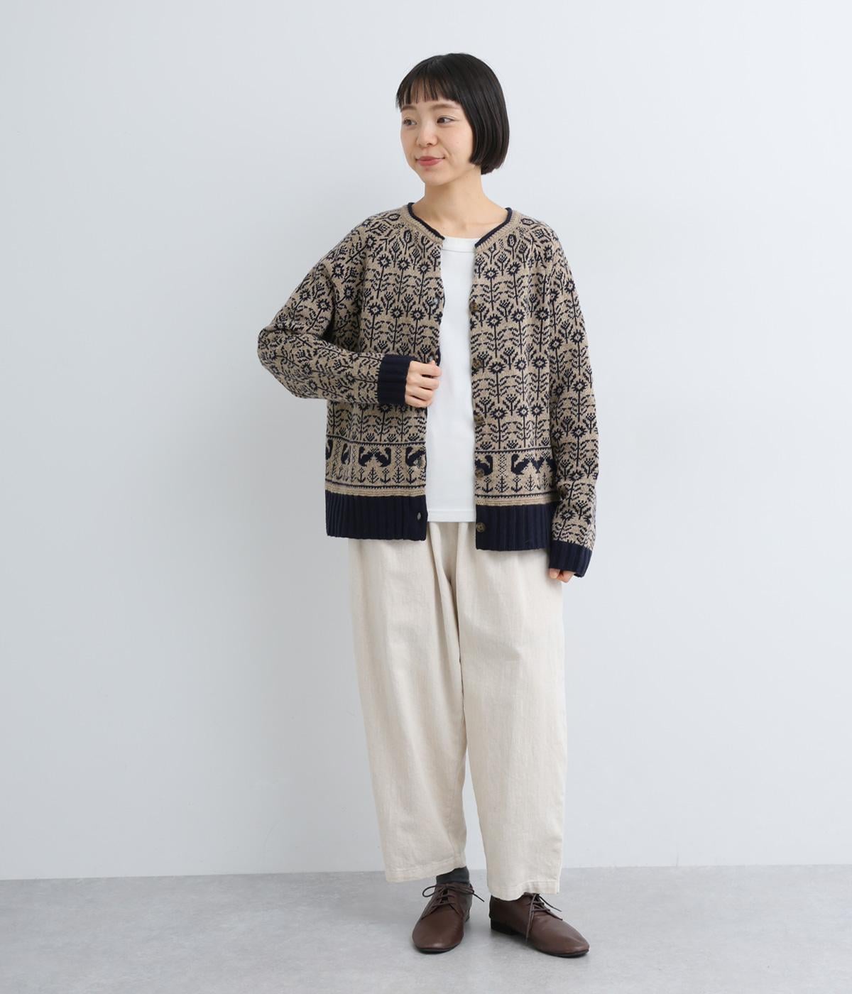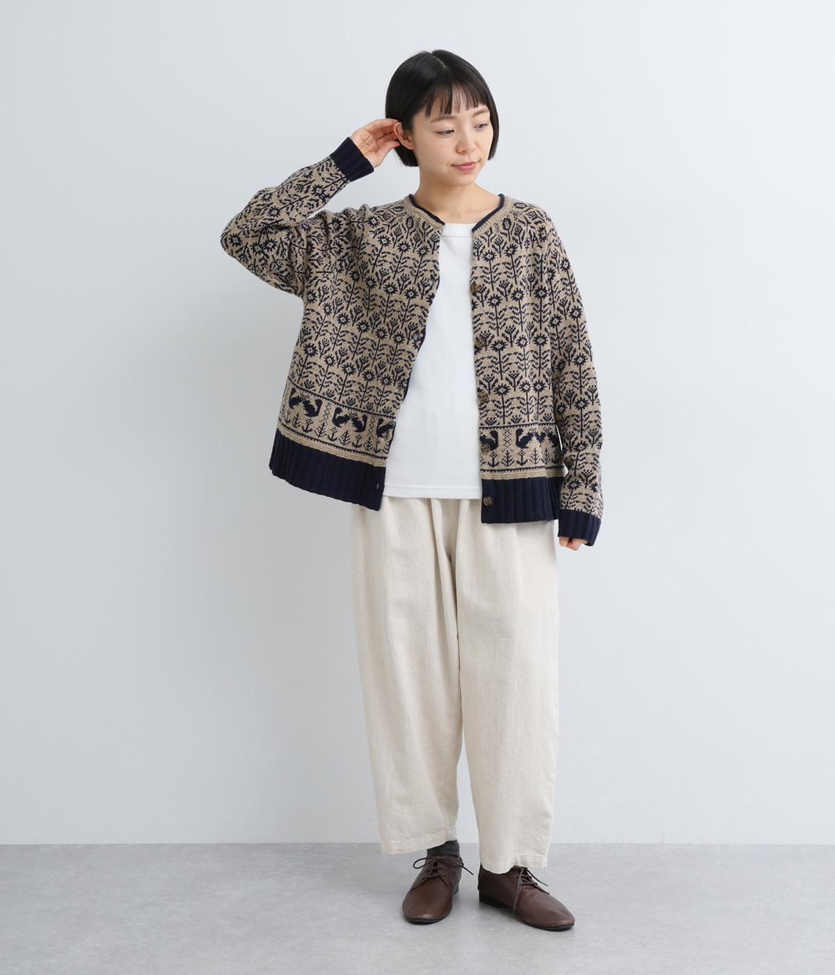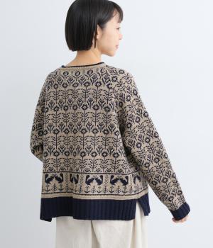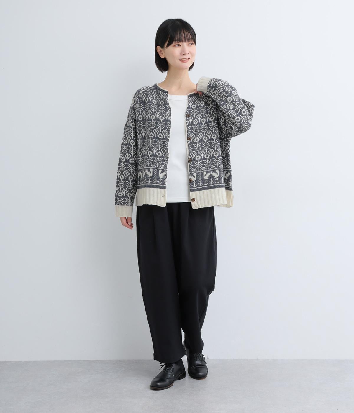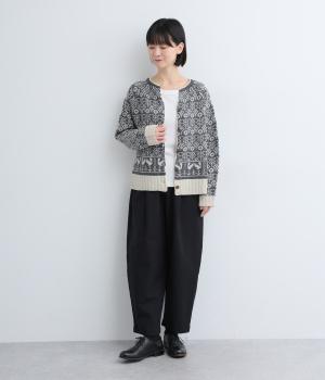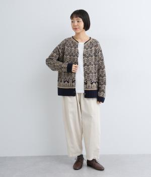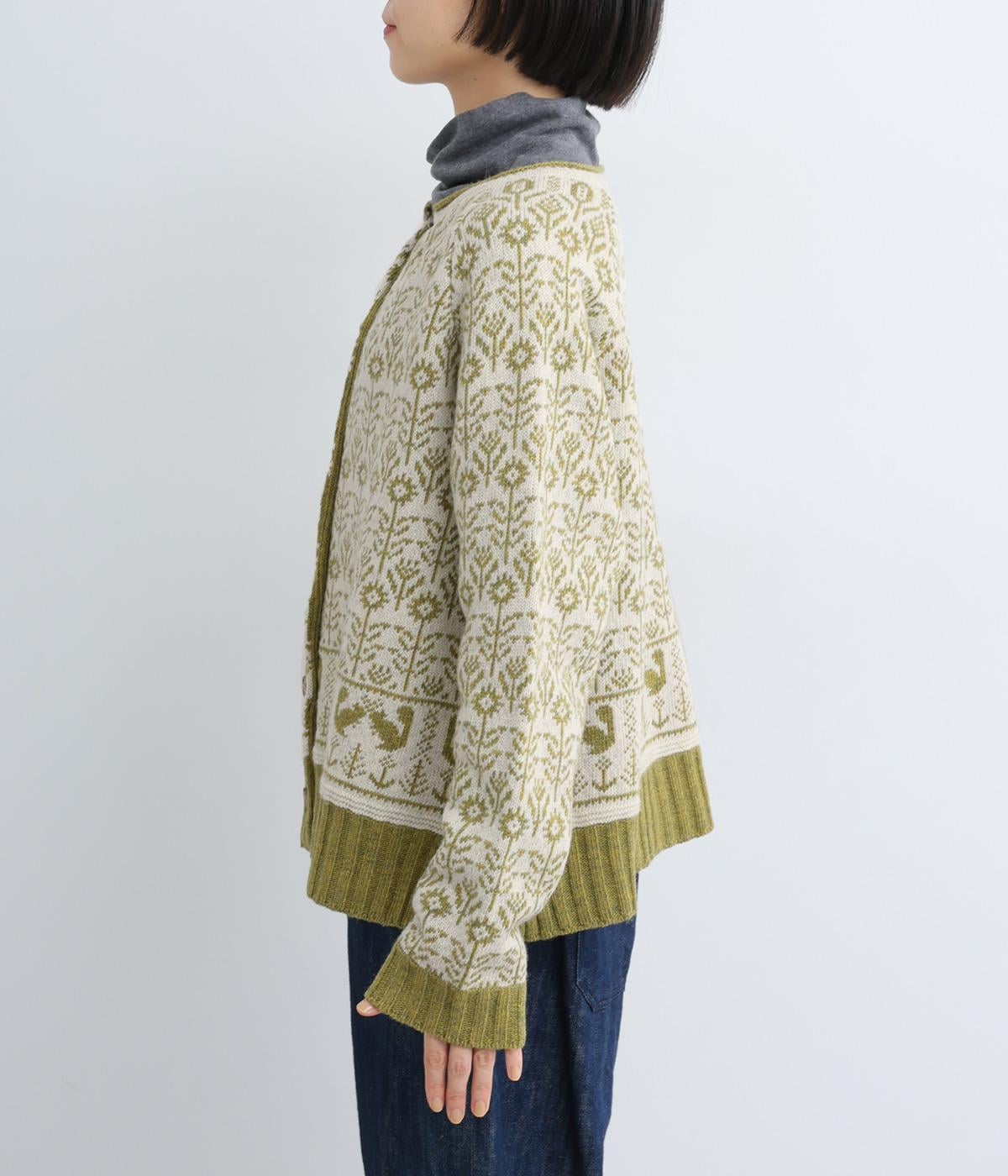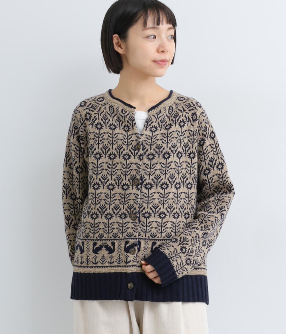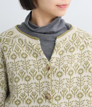 ラムナイロン FLOWERジャカードスキッパーカーディガン(オートミール-F)