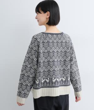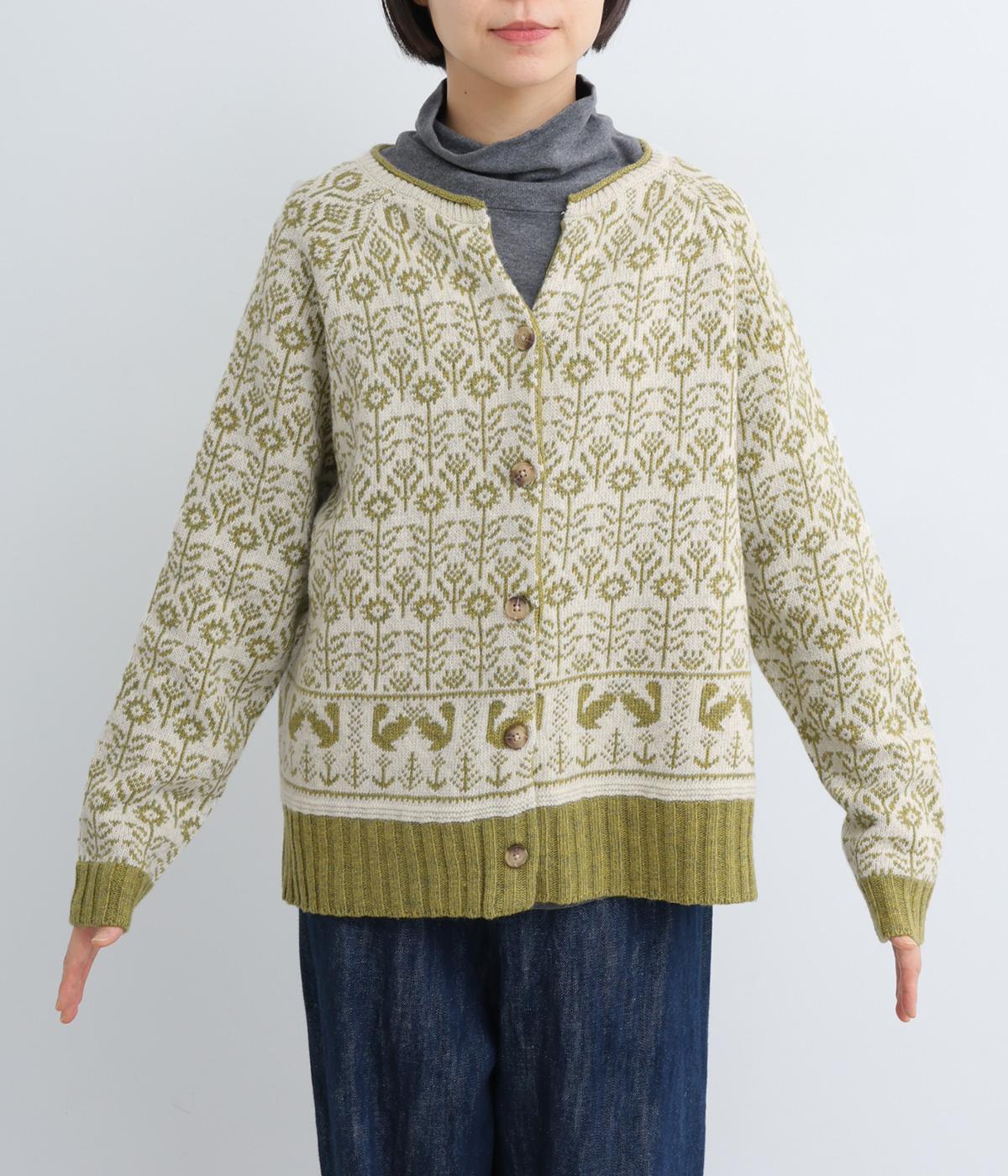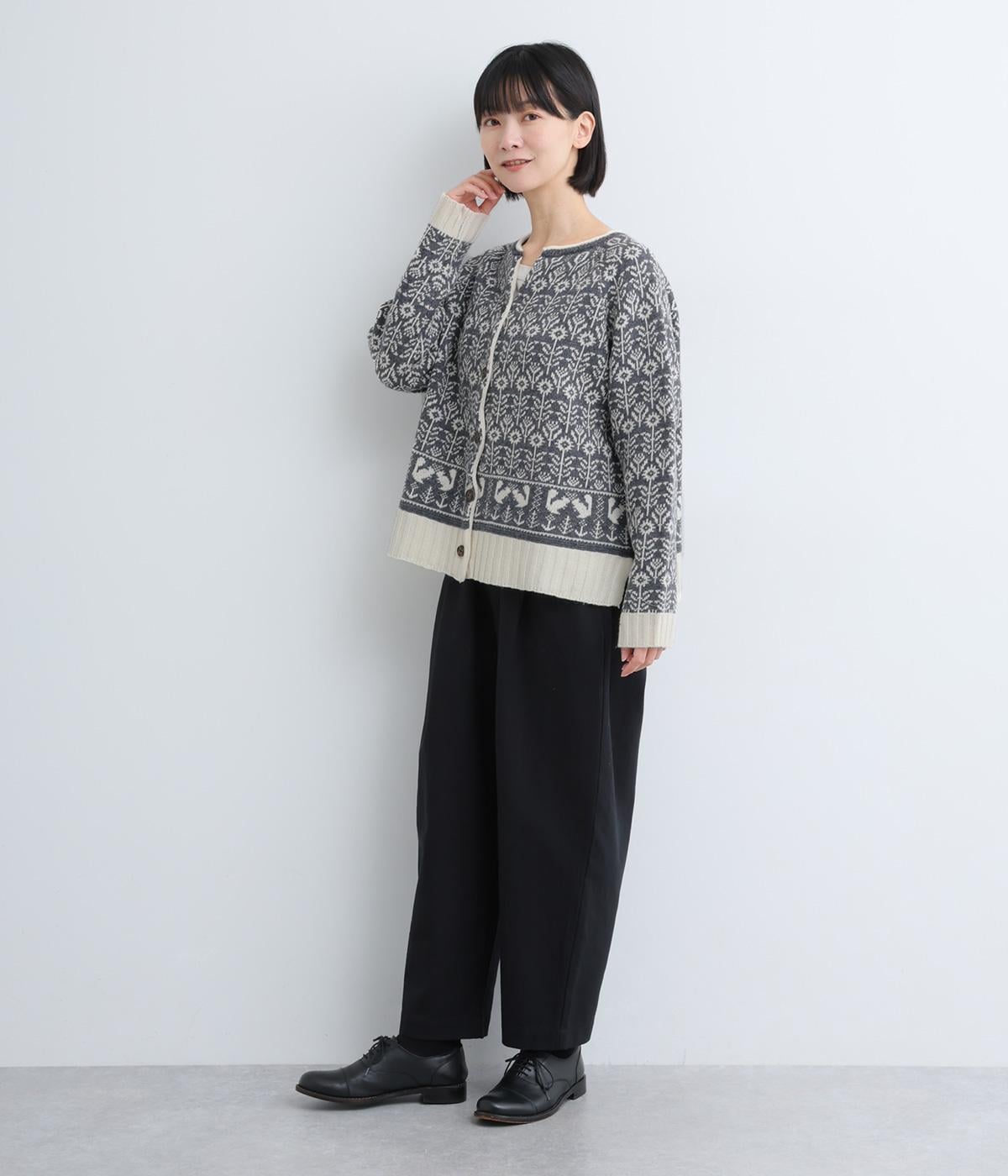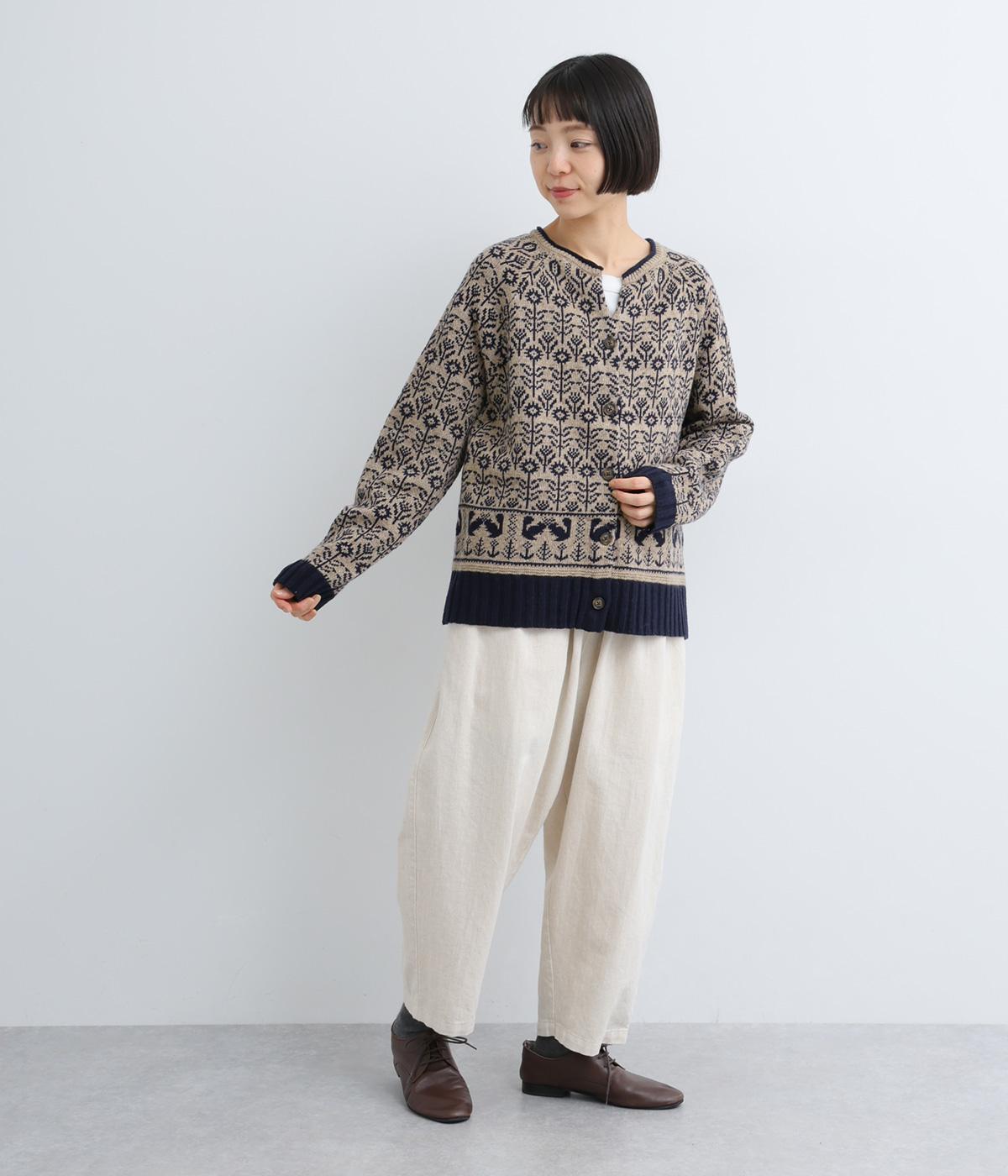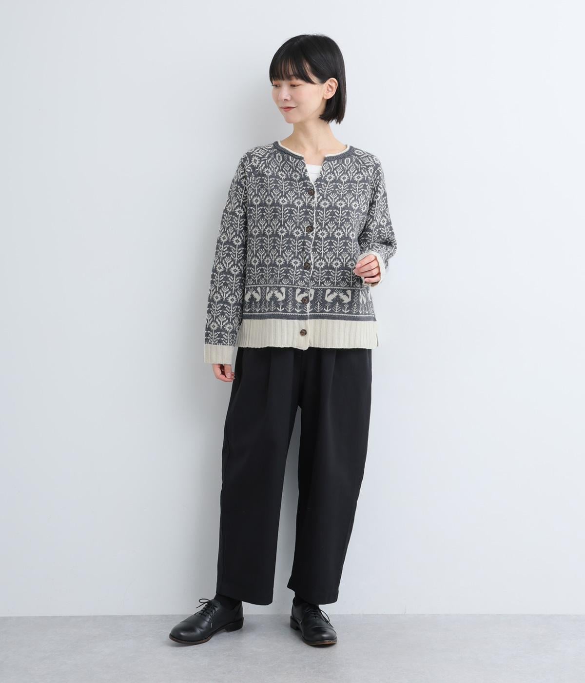 ラムナイロン FLOWERジャカードスキッパーカーディガン(オートミール-F)