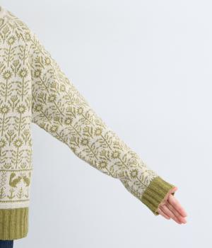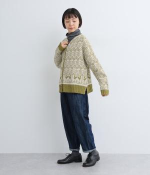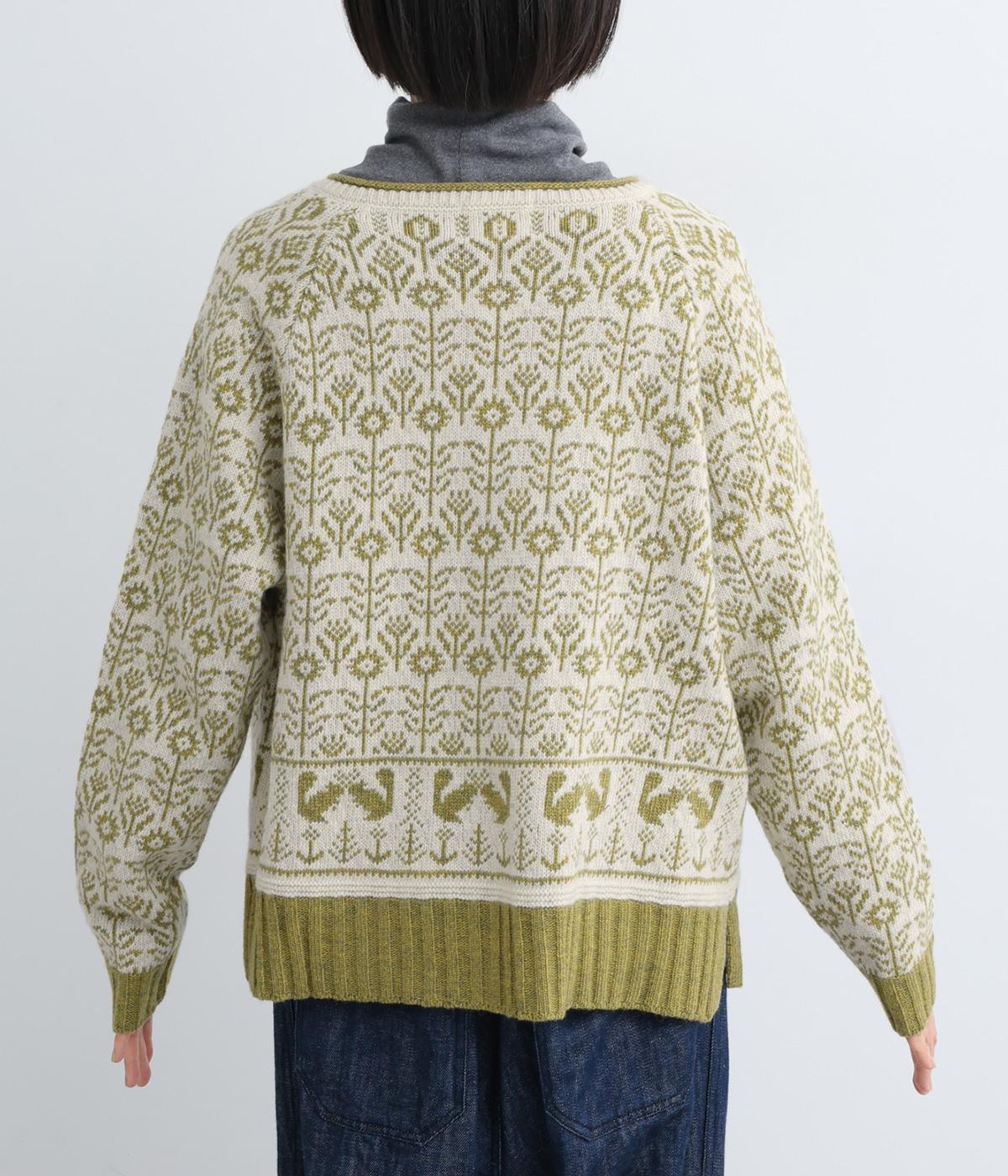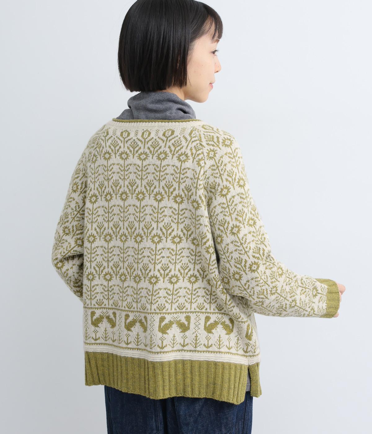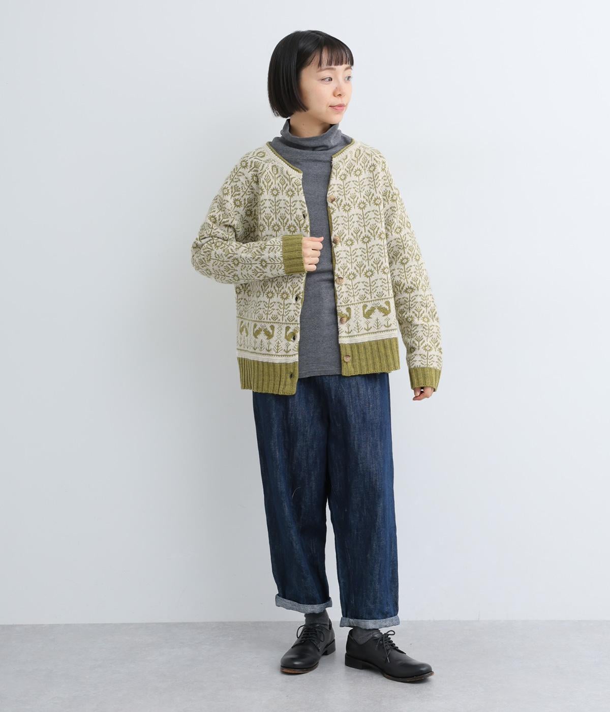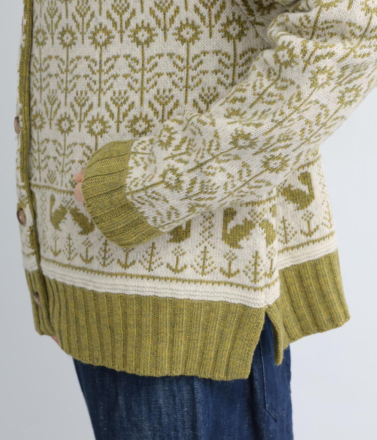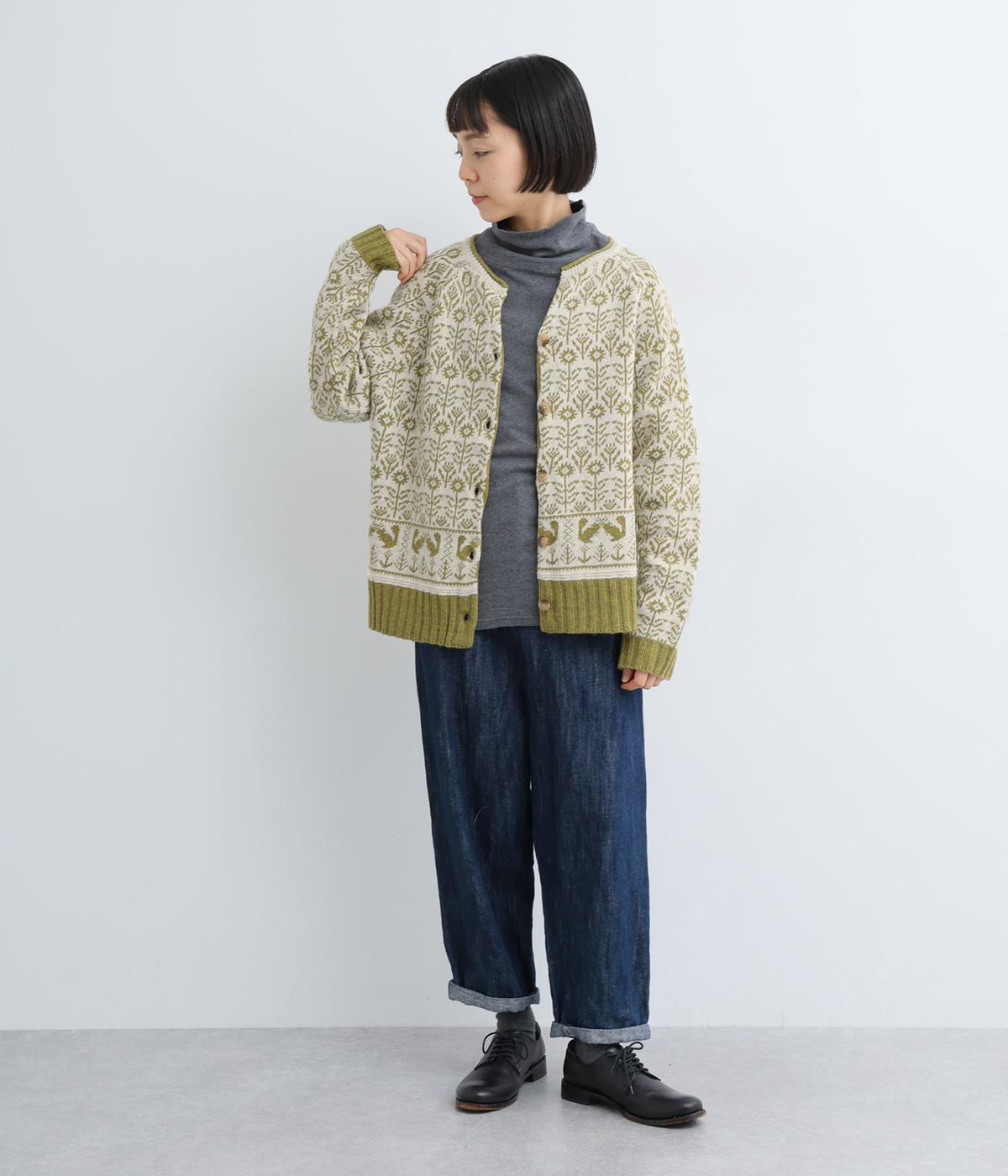 ラムナイロン FLOWERジャカードスキッパーカーディガン(オートミール-F)