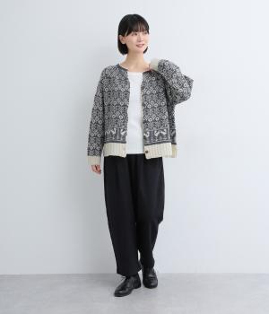 ラムナイロン FLOWERジャカードスキッパーカーディガン