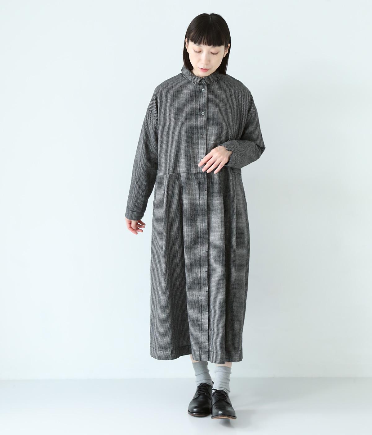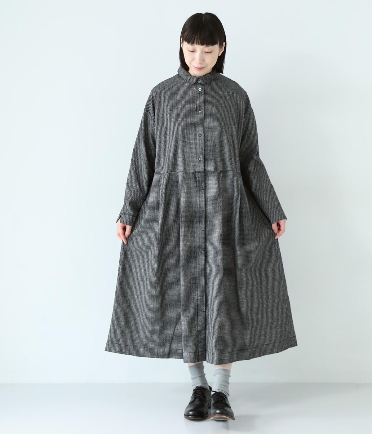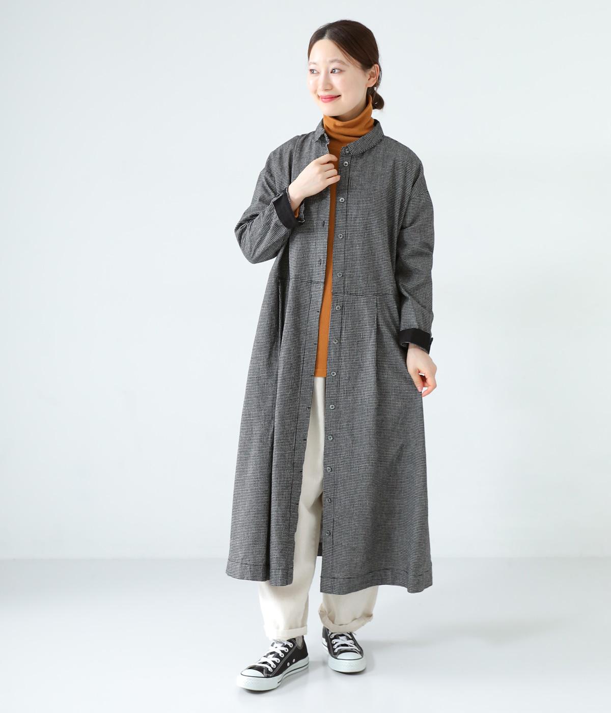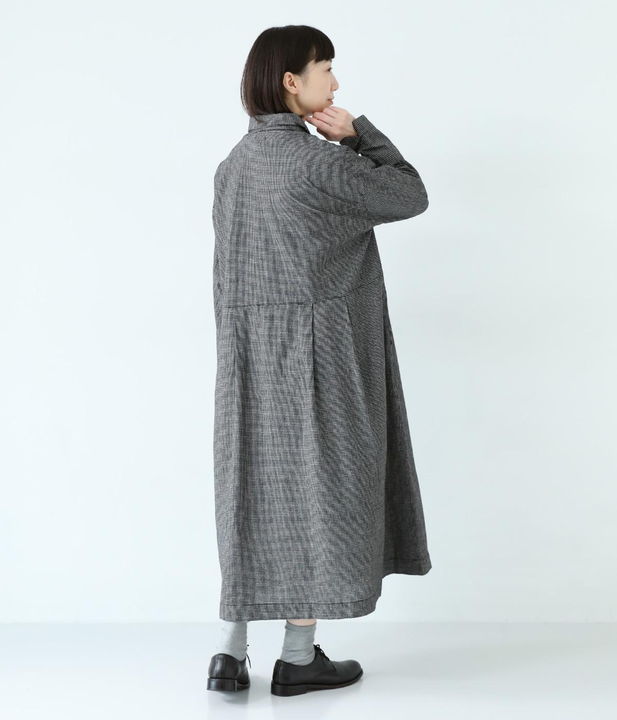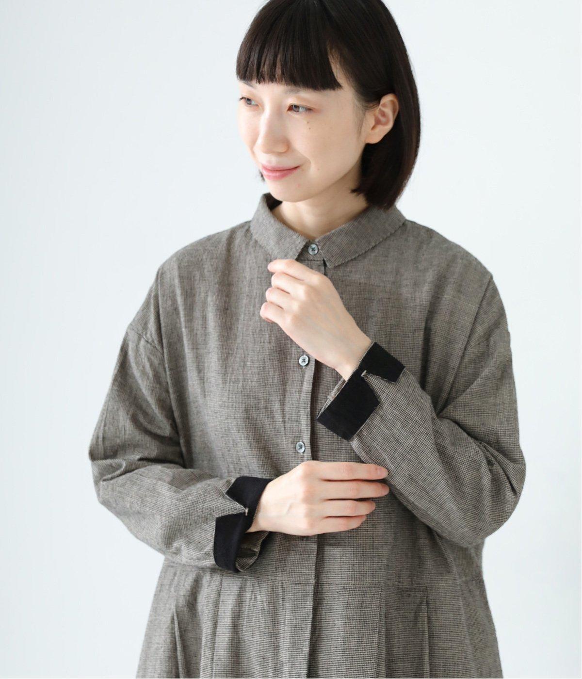 コットンリネン先染め切替シャツワンピース(マイクロチェック-F)